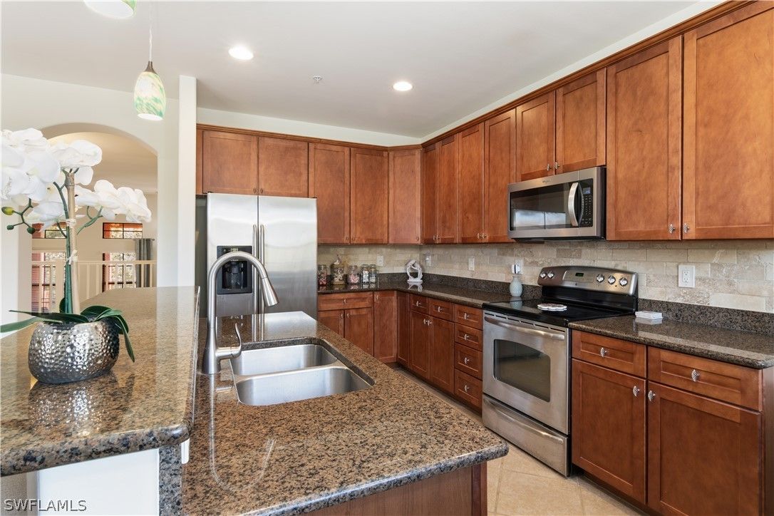 Step into a beautifully updated Santa Barbara townhome, fully furnished and styled with standout décor and finishes. Rarely available Santa Barbara model in Quad 5, the only Santa Barbara on the market in this quad. This expansive 2,008 sq. ft. residence, one of the community’s largest floor plans, features an open-concept layout connecting the family room, dining area and a sophisticated entertainer’s bar. Enjoy three generous bedrooms, 2.5 baths and covered lanais on both levels for true indoor-outdoor Florida living. The chef’s kitchen showcases newer stainless steel appliances, granite countertops, a modern tile backsplash and pool views. This home includes the largest oversized two-car garage in Ole Resort and steps directly out to Quad 5’s private pool and outdoor seating area reserved for Quad owners. Meticulously maintained with recent upgrades — new HVAC (2024), garage A/C (2024), dishwasher (2024), hot water heater (2024), dryer (2024), new carpet (2025), new tile accent wall in family room (2024) and a brand-new master bedroom mattress (2026). Sold fully furnished with like-new or never-used furniture and décor, truly move-in ready. This property is just a short distance to the vibrant Ole Resort Town Center, offering an array of resort-style amenities, including a stunning lagoon-style pool with waterfalls, a children’s pool, a café, pub, and bistro, as well as a movie theater, library, and a state-of-the-art fitness center. Sports enthusiasts will appreciate the basketball, bocce, pickleball, sand volleyball, and tennis courts available within the community. Nestled within the renowned Lely Resort, residents also have access to two public championship golf courses, scenic walking and running trails, serene lakes, and lush preserves. The HOA fees cover cable, internet, water, and full access to all Olé amenities, ensuring a stress-free, resort-style lifestyle. Experience the ultimate in luxury living in the heart of Naples, Florida! Ole Resort allows owners up to two pets, bring your furry friends to paradise!