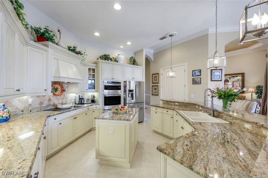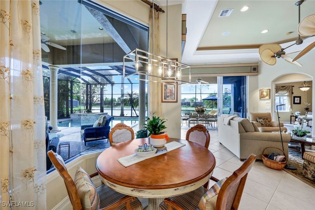 Indulge in unparalleled luxury at this stunning Ponte Vedra 900 Series model in Lely Resort's prestigious Majors neighborhood. This expansive residence boasts four bedrooms, a den, and four and a half bathrooms, perfectly designed for sophisticated living. Enjoy breathtaking western sunset views over a tranquil lake from your private pool and spa. A three-car garage, soaring vaulted ceilings with elegant tray details, and exquisite crown molding throughout showcase the attention to detail. Modern conveniences include Bosch and GE Profile appliances, just three years old, alongside Venetian blinds, faux painting, and multiple recessed sliders that seamlessly blend indoor and outdoor living. Lush landscaping, including five majestic Royal Palms, and practical features like French drains enhance the property's appeal. A Players Club membership, bypassing the waitlist, grants access to world-class amenities. Don't miss the opportunity to experience resort-style living at its finest! Lely Resort - Majors - Ponte Vedra 900 Series Model - Four (4) Bedroom plus Den - Four and one half (4.5) bathrooms - with Pool and Spa western sunset exposure - 3 Car Garage - Vaulted and Tray Ceilings - Crown Modeling Throughout - Venetian Blinds - Faux painting - Appliances three (3) years old (Bosch Dishwasher - GE Profile Oven / Range with Hood, Microwave, LG Washer, Dryer, warming tray and wine cooler - Samsung Refrigerator / Freezer - Multiple Recessed Sliders - Lush landscaping with Five(5) Royal Palms - French Drains - Pull Down Stairs in garage - Exit exterior door in garage - Long Lake Views - The Players Club membership (avoid the waiting list) -