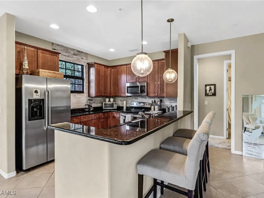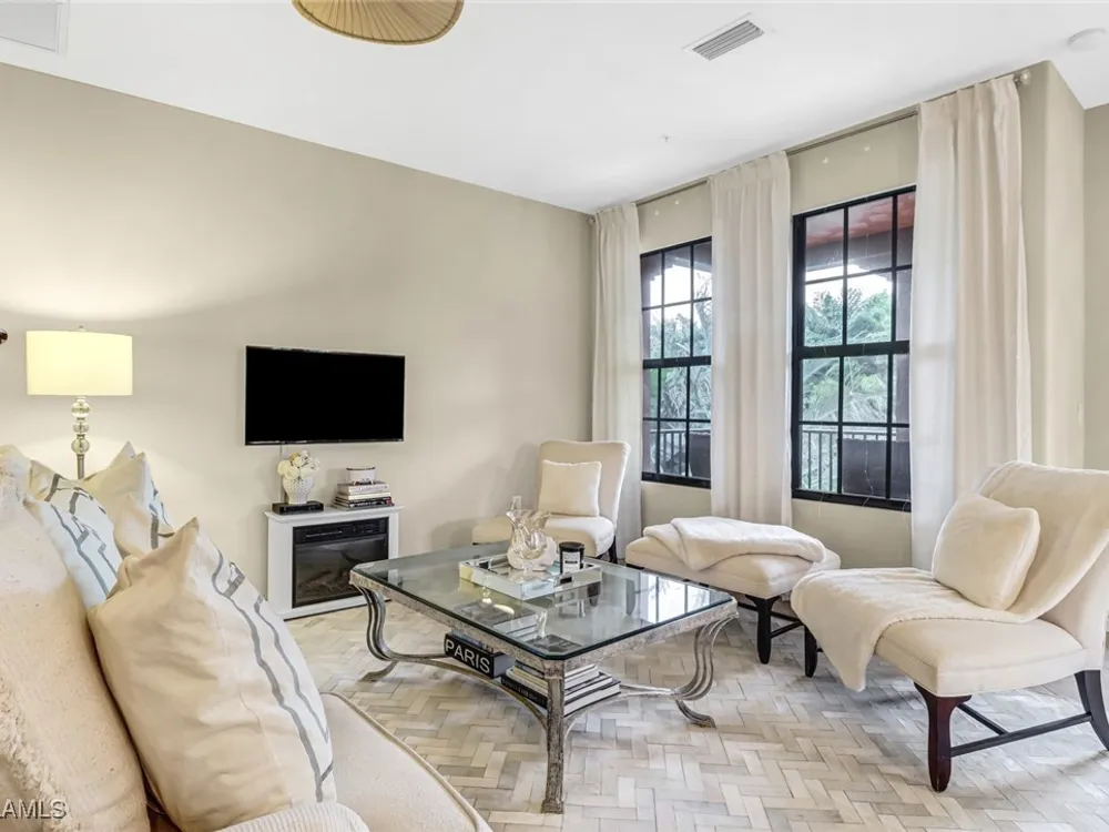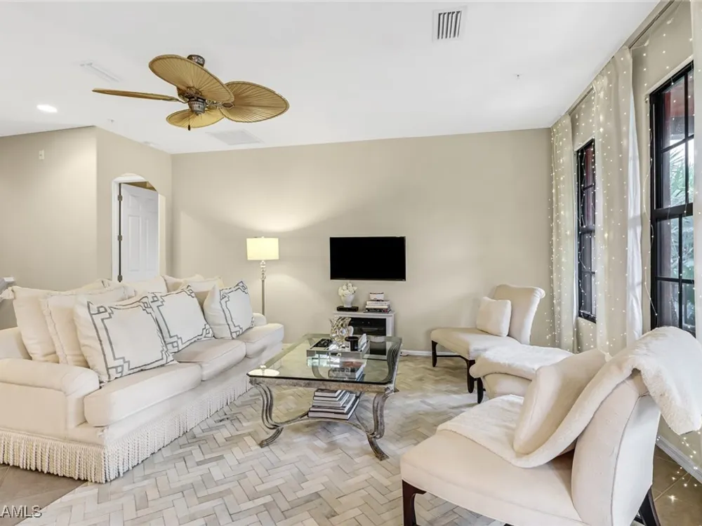 OWNER FINANCING - PRICED TO SELL -This Popular Two Bedroom, Two Bath, 1,500 Sq. Ft. 2nd Floor END Unit on a QUAD with PRIVATE pool for the quad only! This San Benito Model Comes mostly furnished and Offers a Wide-Open Great Room Floor Plan, a Spacious Kitchen with Granite Counter Tops, Stainless Steel Appliances and Breakfast Bar, Lots of Natural Light in Every Room, a Cozy Lanai, two Romeo & Juliet balconies with French doors, updated marble tile backsplash, an Attached One Car Garage and Its Own Community Pool! Unit is private and you only have view of foliage and landscaping. Meticulously maintained unit! Lely Resort is a Unique Community Offering Mediterranean Architecture, Lush Green Space and Quaint Walkways All Leading to the Village Center Featuring the Village Bistro, Movie Theatre, Fitness Center, Coffee and Ice Cream Shop, a Tropical Waterfall Swimming Pool, Tennis Courts, Volley Ball, Basketball & Bocce. Lely Resort is a Sought-After Destination in Naples with Three Championship Golf Courses, and On-Site Dining Located 20 Minutes to Downtown Naples and 20 Minutes to Marco Island!