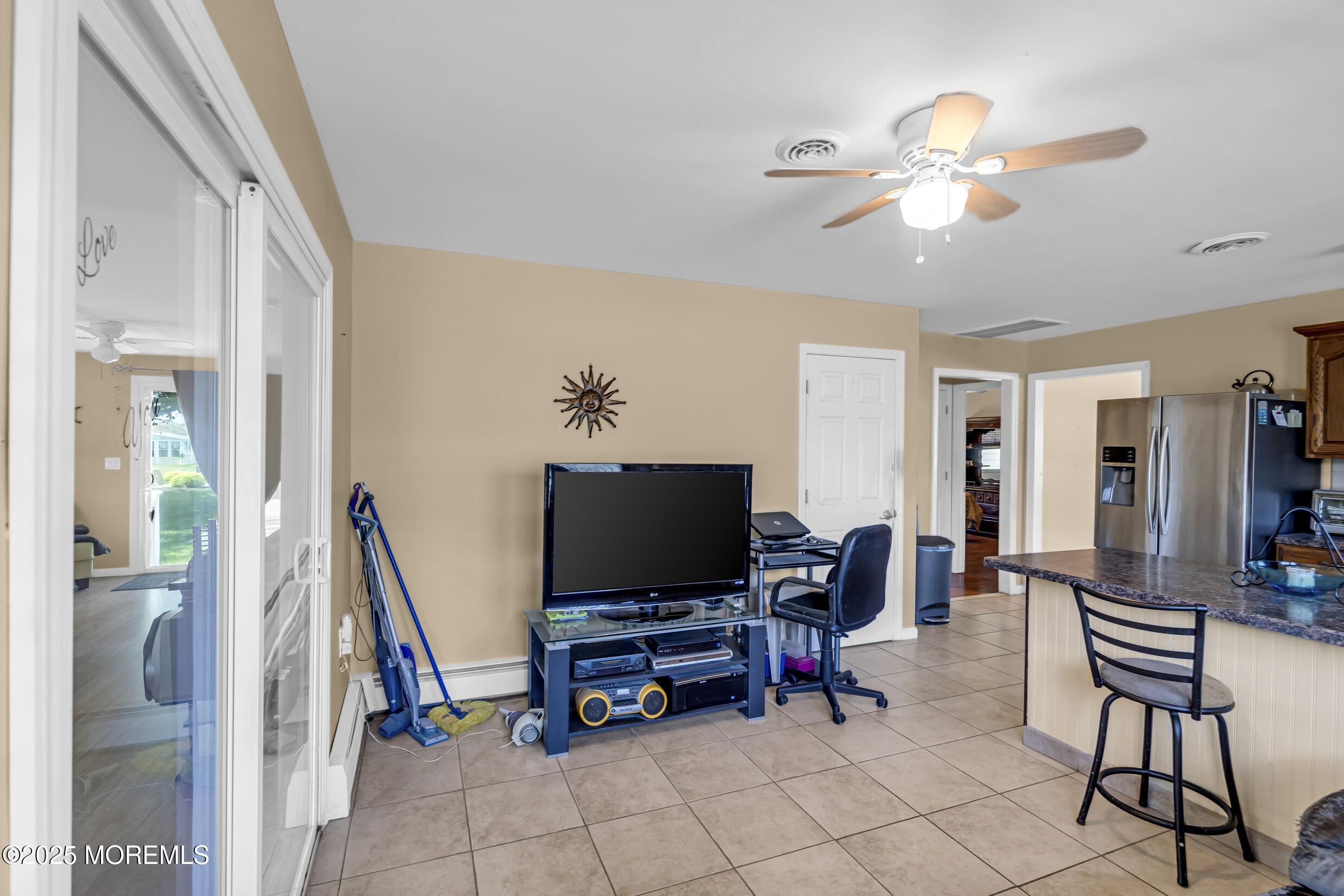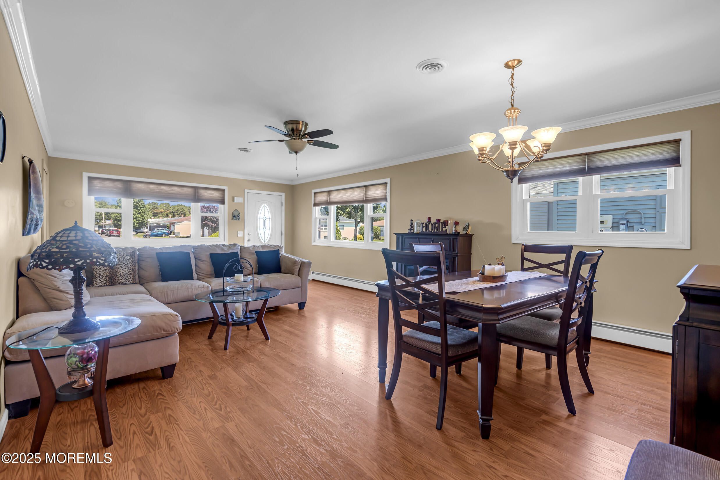 Welcome to Holiday City Carefree, a 55+ active adult community at the Jersey Shore. If you need more space, this is for you. This Lakeview model features an addition with a split system heat/AC unit & storage closet, built level to the house for year long enjoyment. The home was updated in 2009 & 2013. Features laminate flooring, crown moldings, updated windows, A tube light provides extra light in the bathroom. Guest Bath features full tub and glass shower doors. Primary bedroom ensuite features walk-in shower. Cabinet filled Kitchen has convenient peninsula and food storage pantry. Newer garage door. Multi-use den adjacent to the kitchen. Come take a look and enjoy your new home at the Shore, convenient to GSP for points north and south. AS IS sale