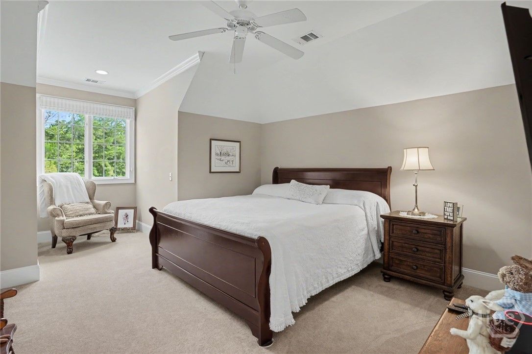 Beautifully renovated patio home in desirable Oakridge. Perfectly situated on a quiet Cul-de-sac overlooking a tranquil lagoon. This 3 BR,3.5 Bath home features a main level primary suite with his and her closets and a flex space ideal for an office, crafts room or a sitting area. Upstairs, two bedrooms each with their own full bath. Improvements include updated kitchen with new appliances, opening of entryway from kitchen to living room, new landscaping, new roof and much more. Large walk -in attic for ample storage, walk to Oakridge restaurants and fitness center and just a short distance from gate for easy access.