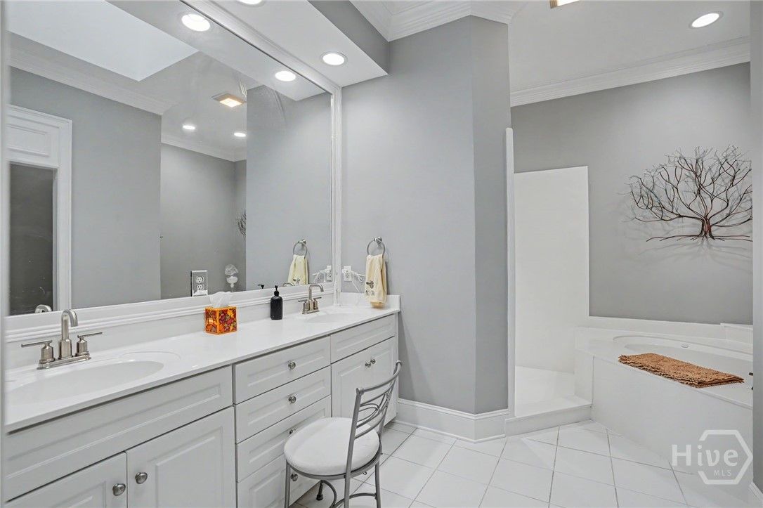 - Attic, Built-in Features, Breakfast Area, Ceiling Fan(s), Double Vanity, Entrance Foyer, Fireplace, Garden Tub/Roman Tub, High Ceilings, Main Level Primary, Pantry, Recessed Lighting, Skylights, Separate Shower, Programmable Thermostat