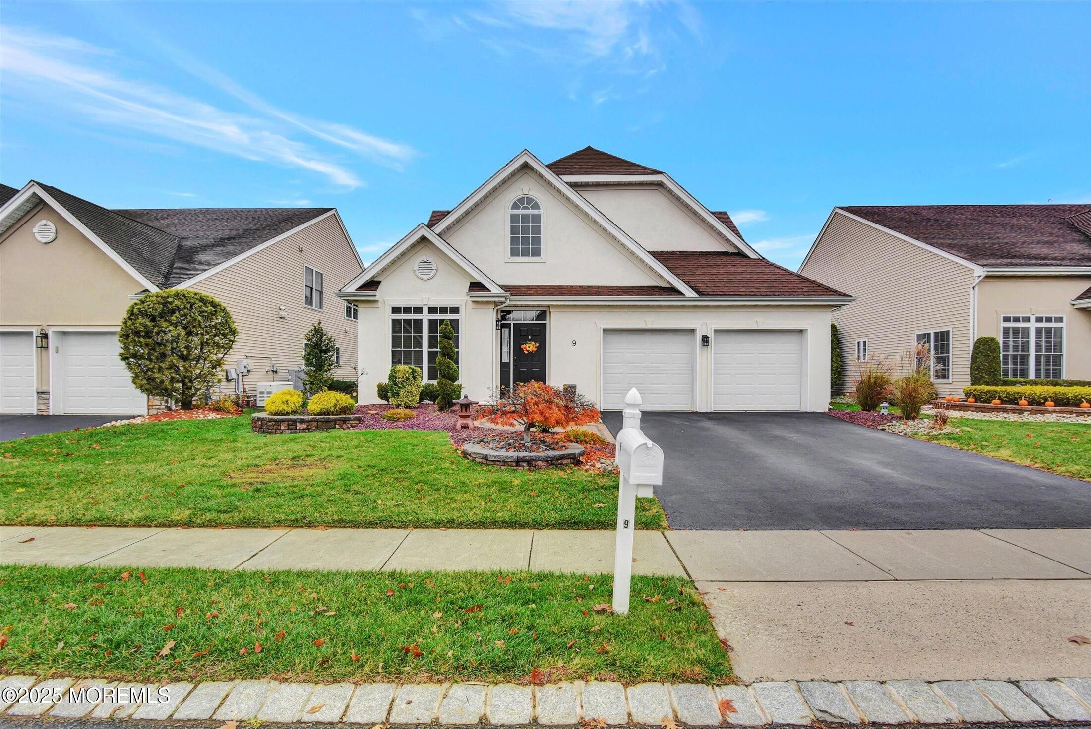 Welcome to 9 Crawford Road in Village Grande. The perfect home for anyone who appreciates the charm and comfort of a small, intimate adult community. Here, life feels calmer, friendlier, and warmer. Step inside this immaculate Brighton model. A formal living and dining room welcome you with a bright, open layout that's ideal for gatherings and effortless entertaining. The kitchen is open to a dramatic two story family room; a gas fireplace brings a gentle glow, the perfect way to unwind at the end of the day. 3 spacious bedrooms, a den, and 3 full bathrooms, second level offers flexibility for every lifestyle. Click more! The upper level creates its own private retreat with a loft sitting area, bedroom, and full bath, making it perfect for guests or a peaceful getaway within your own home. Updates add value and peace of mind, including a newer AC, new HVAC, and a new hot water heater wonderful upgrades that allow you to move in with confidence. Village Grande welcomes adult children over the age of 19. Amenities tailored for easy, low-maintenance living: a fitness center, clubhouse, card and billiards rooms, library, outdoor pool, and putting green. You get everything you need in a community that feels personal, welcoming, and never overwhelming. If you're searching for a home where comfort, simplicity, and warmth come together, 9 Crawford Road delivers the lifestyle you've been hoping for.