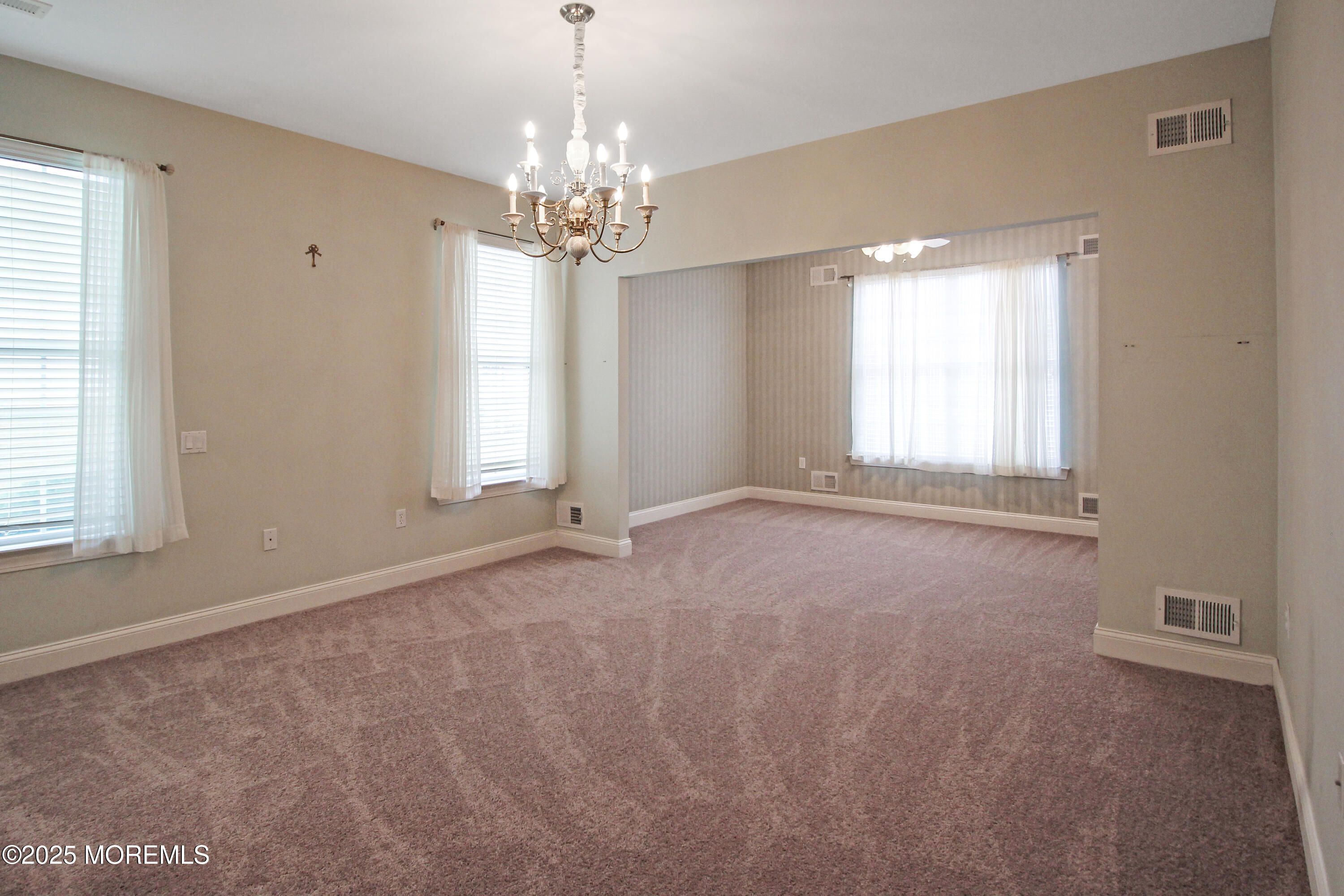 Welcome to the desirable 55+ community of Country Walk in Whiting! This expanded Auburn model offers 2 bedrooms, 2 bathrooms, and a spacious 2-car garage with a double-wide driveway. The home features a large living room and an open-concept design that seamlessly connects the living, dining, and kitchen areas. The kitchen is equipped with a breakfast counter and pantry, while engineered hardwood floors flow through the den, living room, dining room, and kitchen. Both bedrooms have brand-new carpet, with the primary suite boasting a sitting room for added comfort. Enjoy the bright and airy 3-season room that opens to a backyard patio, perfect for relaxing or entertaining. Additional highlights include natural gas for forced hot air heat and hot water, plus access to an active clubhouse with an inground pool, tennis, and bocce ball. Conveniently located just 10 miles from Exit 80 on the Garden State Parkway, this home is minutes from shopping and shore activities, offering the perfect blend of comfort and lifestyle.
