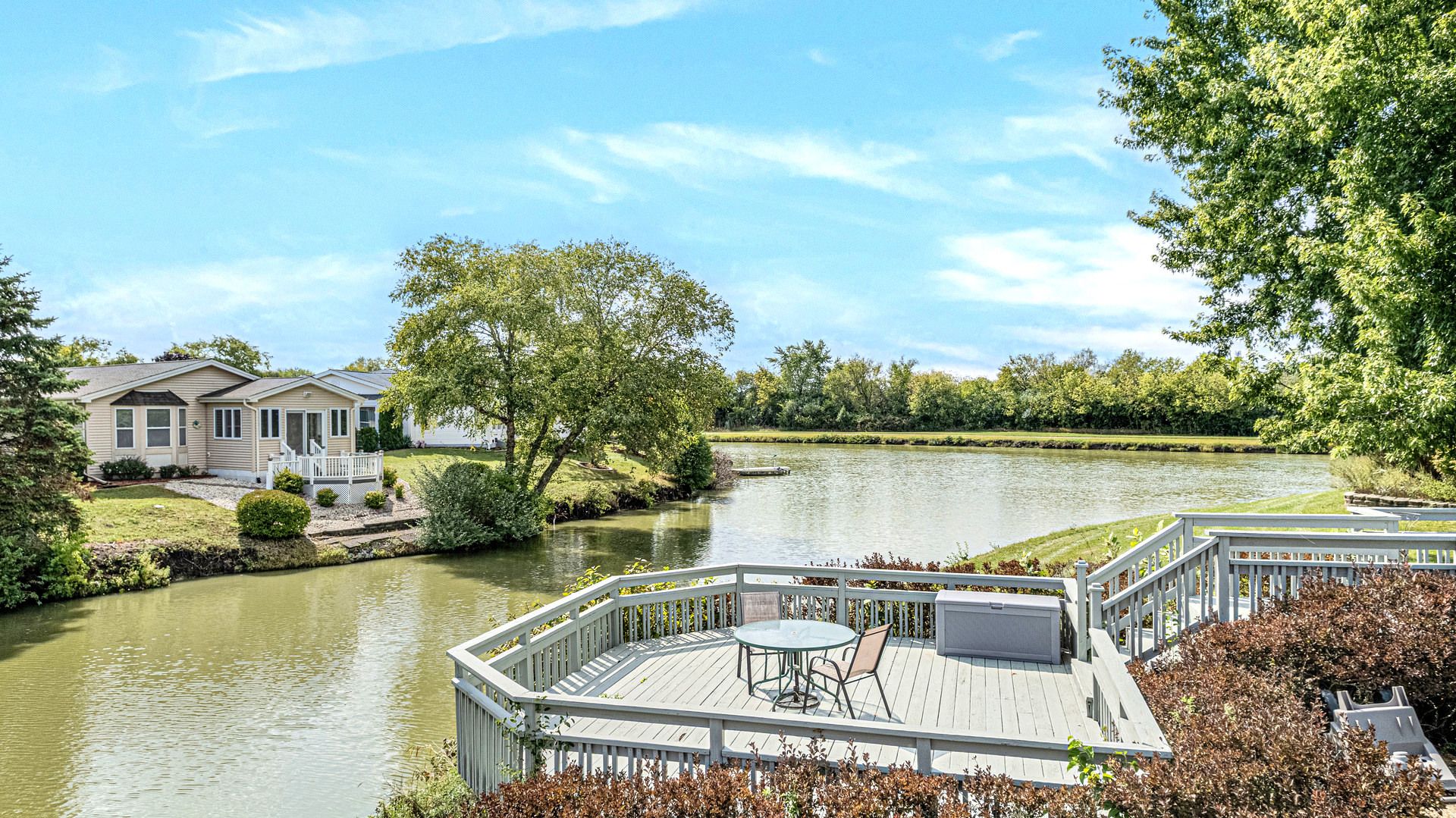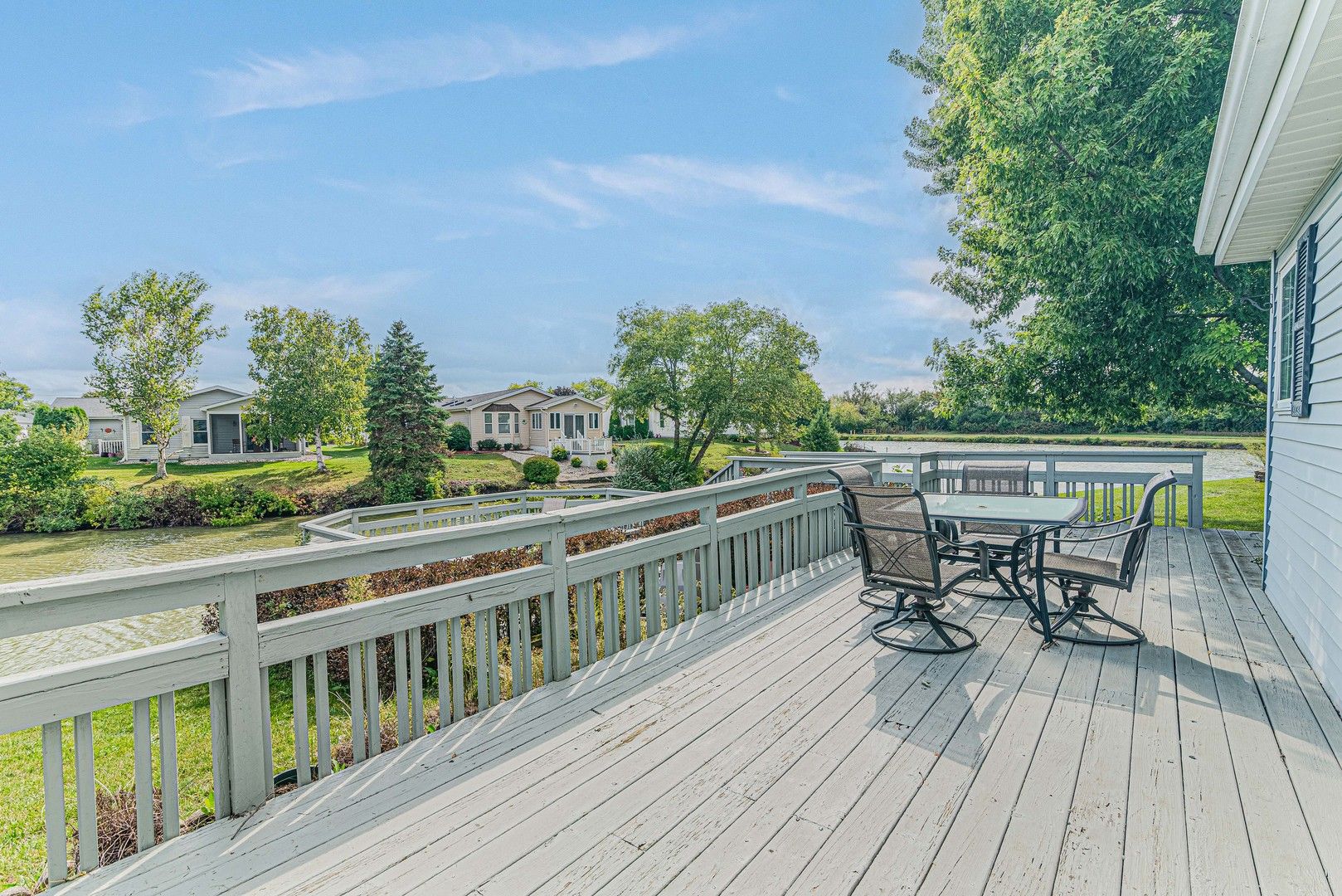 Welcome to Saddlebrook Farms, an inviting 55+ community in Grayslake offering low-maintenance, single-level living. Enjoy stunning lake views from almost every window in this open-concept home! Huge front porch welcomes you - enter to a large living/dining area. To the left you'll find a bedroom, study/office, full bath with skylight and sumptuous Primary suite! Primary suite offers a large bathroom with walk in shower, walk in closet and skylight. Bedroom area has a bay window with lake views! To the right is an open kitchen, sitting area, island and enclosed porch. Laundry room has a slop sink, window overlooking your beautiful deck and again those lake views! Access the multi tiered deck from the porch, or laundry room for stunning sunsets and relaxation. There is a 2 car garage and beautiful landscaping. You will love all the amenities at Saddlebrook Farms in addition to a convenient location, there is a fitness center, miles of walking trails, bocceball courts, community center, fish stocked lakes, horseshoe pits, resident run Victory Garden and planned social events. Come see what Saddlebrook Farms has to offer the active adult. This is where comfort, connection, and carefree living come together. You'll love it here!