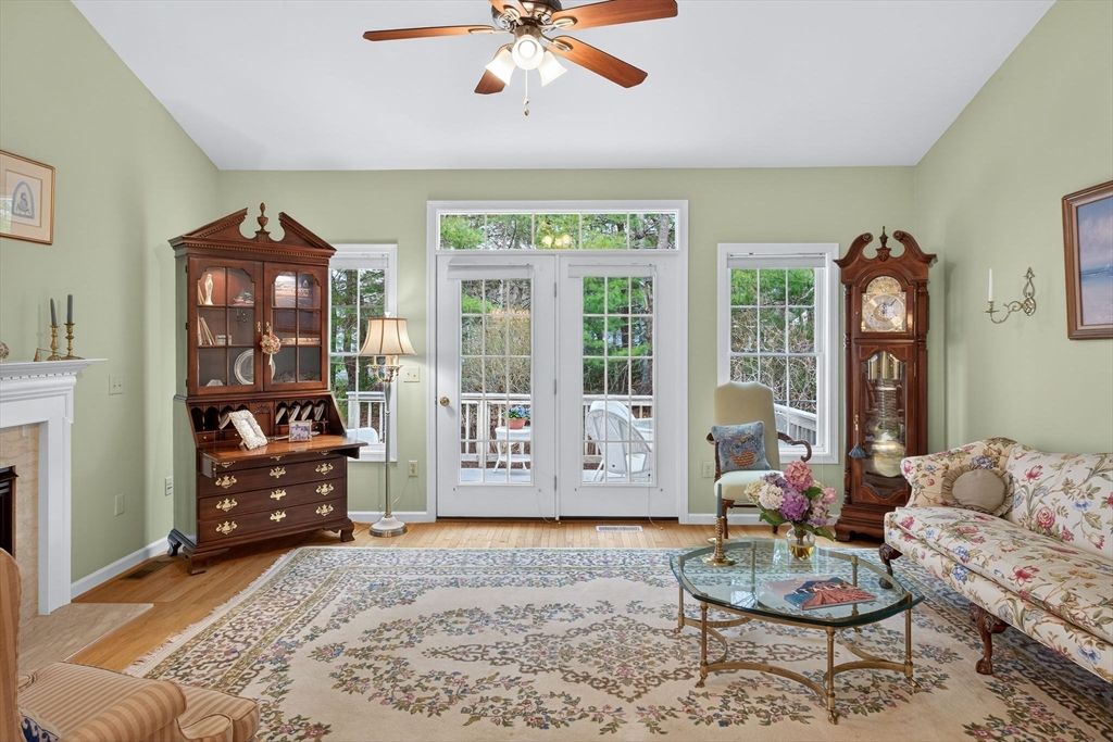 Picture Perfect! An opportunity to own the highly sought-after Brookshire floor plan in the Great Island 55+ community in The Pinehills. This spacious and thoughtfully designed home features 3 bedrooms and 3 full bathrooms, each arranged to provide a sense of personal retreat and privacy. The open-concept layout allows the kitchen to flow seamlessly into the dining and living areas, all while offering a scenic wooded view. Enjoy easy living with a deck overlooking a lush green lawn, perfect for entertaining or quiet mornings with coffee. The professionally landscaped grounds add to its charm and curb appeal. Newer appliances & a guest bedroom/den with an additional full bath on the first floor. Expansive loft and 3rd bedroom with a full bath on 2nd floor. First floor laundry room. Enjoy access to two exclusive clubhouses; The Overlook Clubhouse: indoor swimming pool, pickleball and tennis courts, bocce and a wide variety of activities and classes & The Stonebridge Club. Come & enjoy!