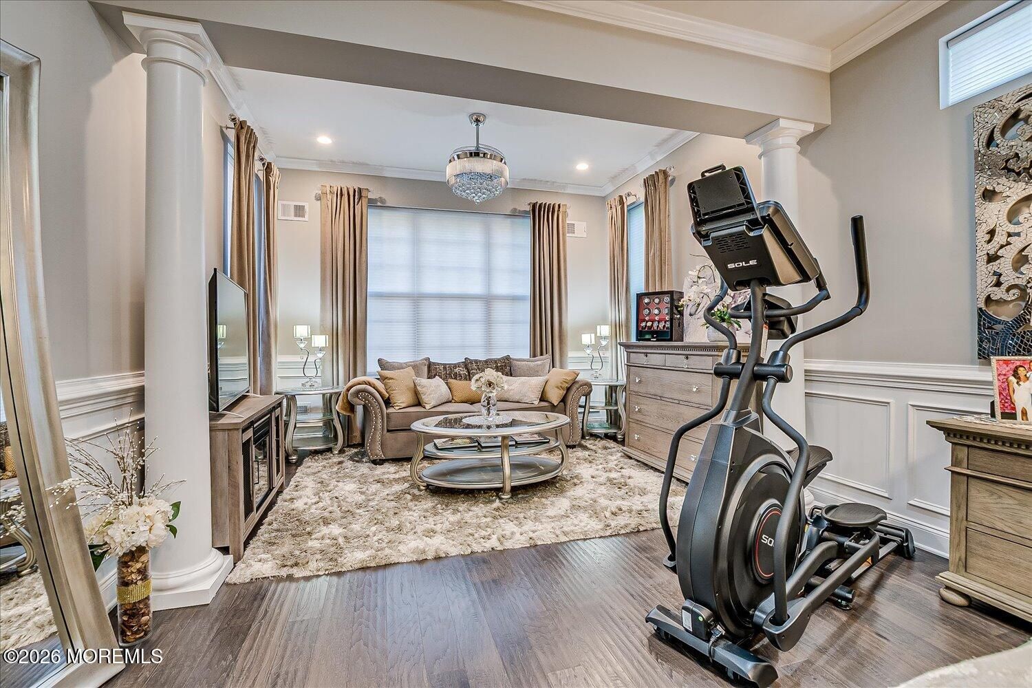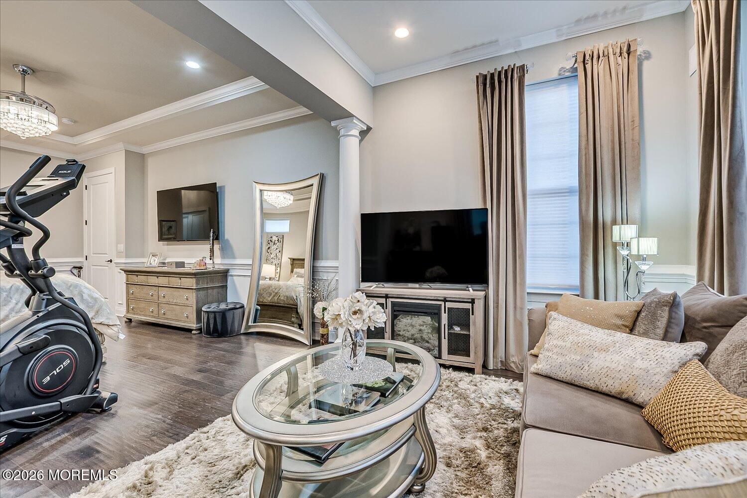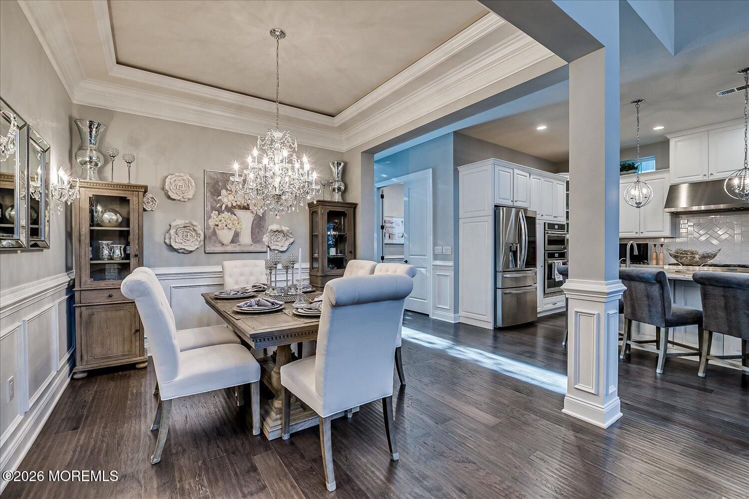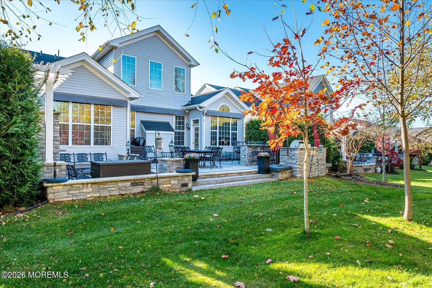 A standout in Freehold's premier adult community, Regency at Freehold, this residence is one of the finest you'll find, offering a rare blend of style, privacy, and modern comfort. Nestled on a premium lot backing to tranquil woods, the home delivers a peaceful retreat w/ upscale finishes and thoughtful design. Step inside and be wowed by the open-concept, where a beautiful kitchen flows seamlessly into a spacious family room -- ideal for entertaining and everyday living. Enjoy year-round sunshine in the inviting sunroom, which opens to a private outdoor oasis. Whether you're hosting or savoring quiet mornings, this home delivers resort-style living in a vibrant, amenity-rich community. Don't miss your chance to experience one of Regency at Freehold's finest offerings. With four bedrooms and three full bathrooms, this home doesn't compromise convenience or style. Every detail has been meticulously curated to reflect the best in contemporary living. Upgrades include: Premium Toll Brother's lot Generac ''Whole-House'' generator Extended garage with epoxy floor Expanded primary bedroom Expanded kitchen Additional sunroom Upgraded Toll Brother's molding trim package w/ custom tray ceilings Hardwood floors throughout Upgraded front landscaping and retaining walls Custom outdoor living space with two fire features and outdoor kitchen