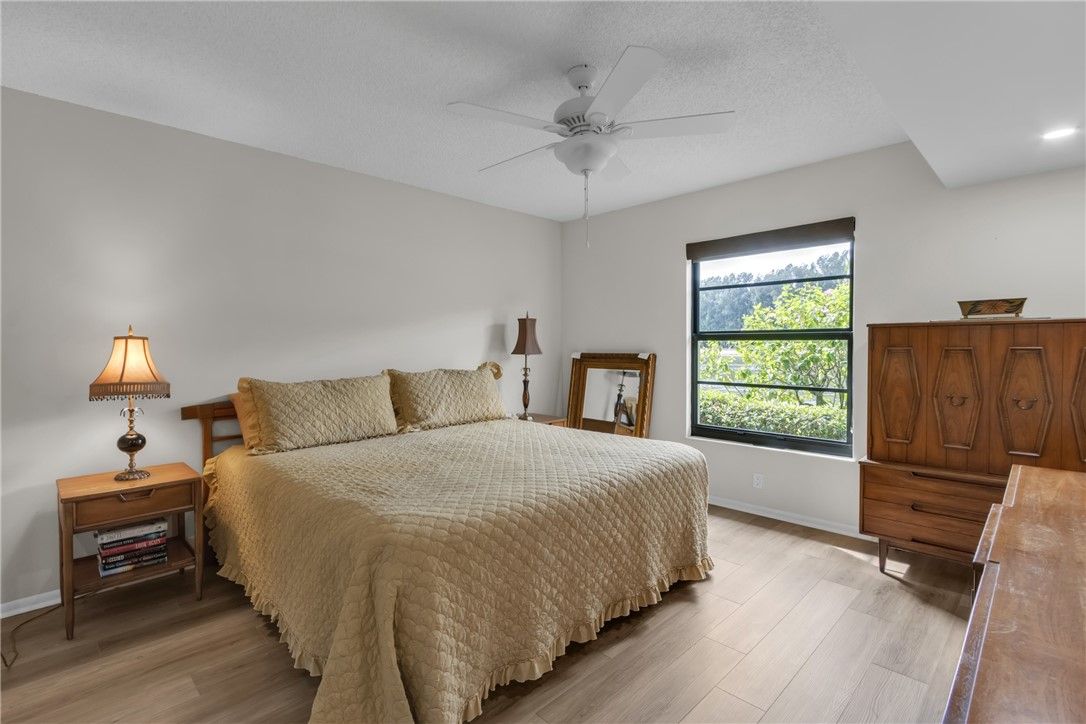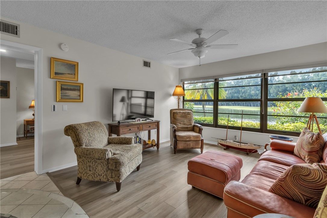 ONLY-FIRST FLOOR 1bed/1ba condo at Vista Plantation! Boasts upgraded kitchen, doors, paint, toilet, plank floors & more—NO carpet! Enjoy a spa-like experience w/ added walk-in shower & open bath layout-thoughtfully redesigned by removing adjoining toilet wall to maximize space! Spacious bedroom w/HUGE walk-in closet, plus storage/linen closets. Unwind in evenings taking in peaceful lake & golf course views w/ sunset skies. Partially furnished. Newer washer/dryer in-unit, impact windows & assigned covered parking. Enjoy clubhouse/heated pools/pickleball & more! Near shopping/dining/beach!