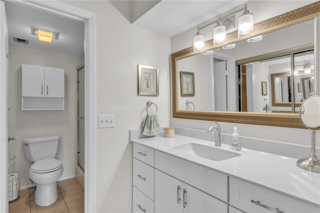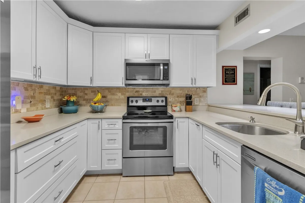 Pure luxury is calling your name! This partially furnished dreamy gem boasts a captivating fully remodeled expanded kitchen! Sleek quartz counters, stainless steel appliances, tile backsplash, added oversized pantry + a super lazy Susan-a chef's kiss! Most desired 2BD/2BA floor plan boasts extra sunlight from an addt'l kitchen window! W/ oversized tile floors, washer/dryer in-unit, impact windows & covered parking-comfort is key! Enjoy a HUGE walk-in closet & a walk-in shower in the primary suite. Both bathrooms updated! Located near clubhouse/heated pools/driving range/pickleball. A must-see!