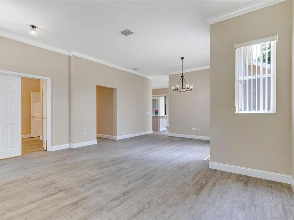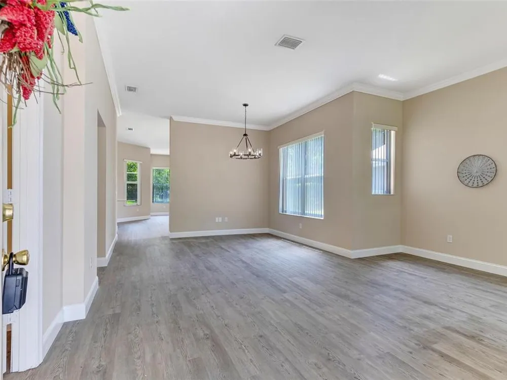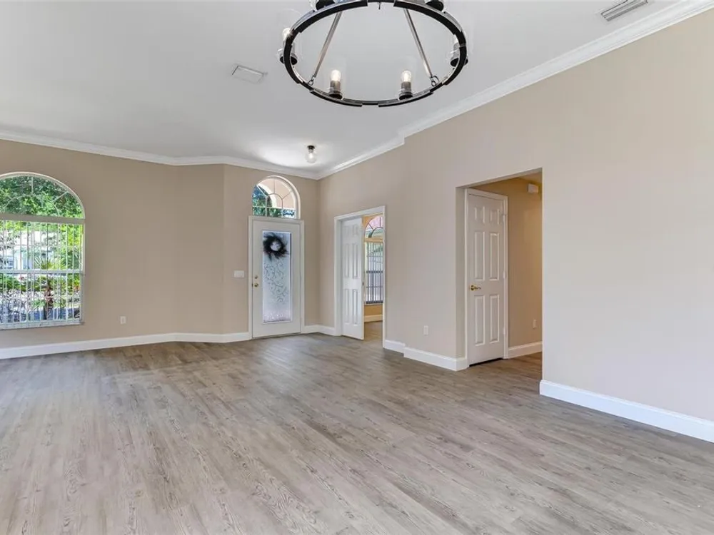 - Ceiling Fan(s), Crown Molding, High Ceilings, Living/Dining Room, Open Floorplan, Thermostat, Walk-In Closet(s), Window Treatments