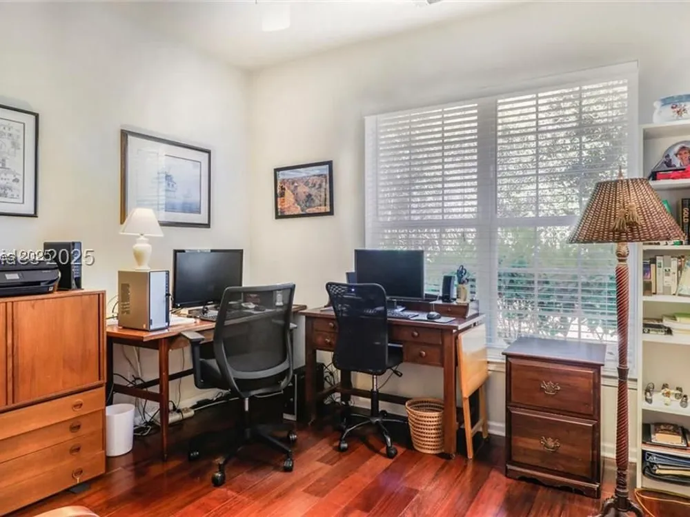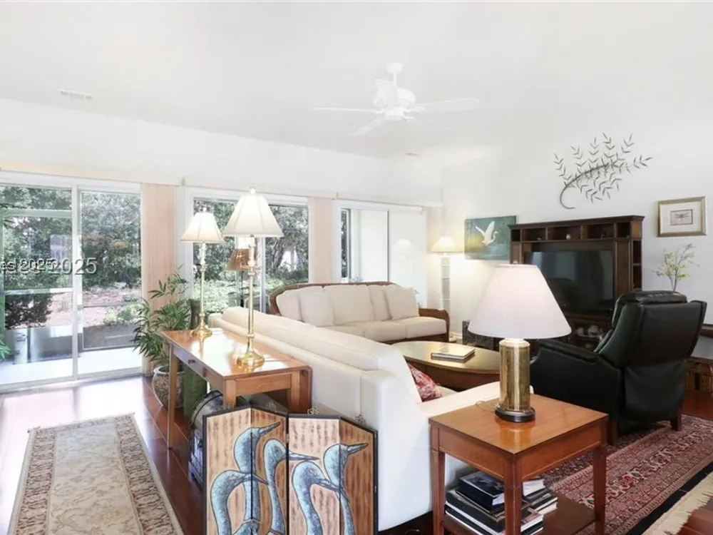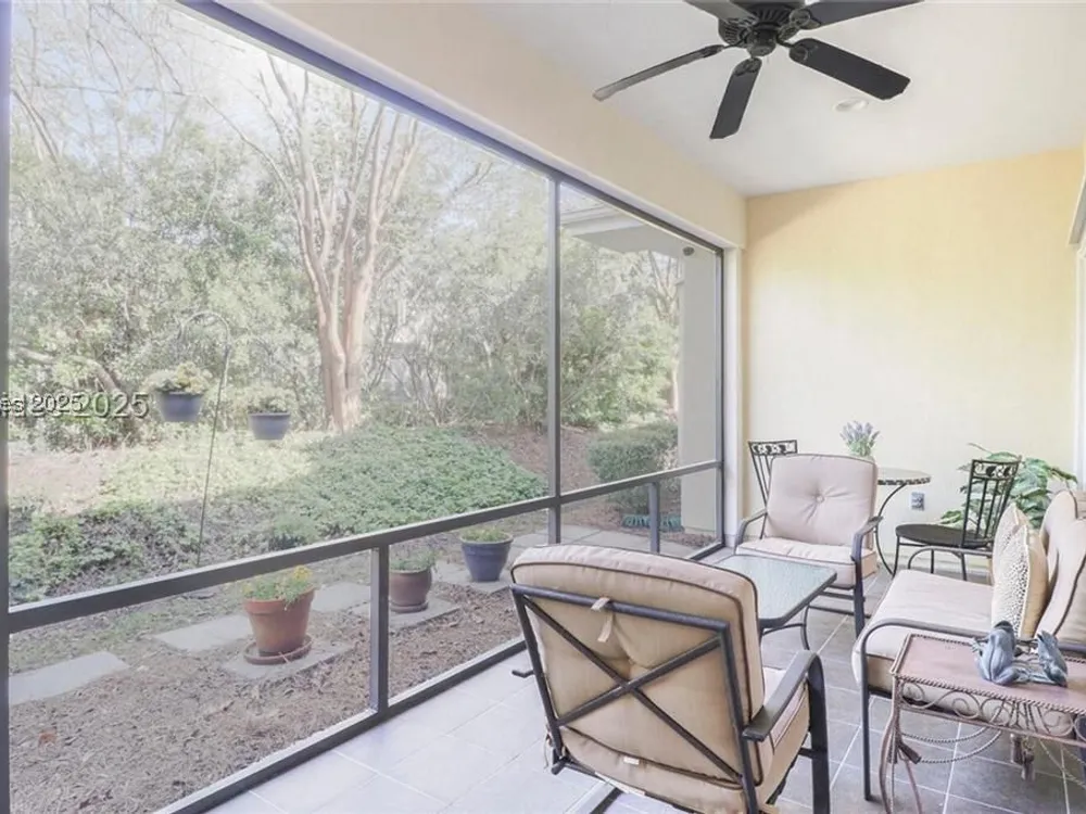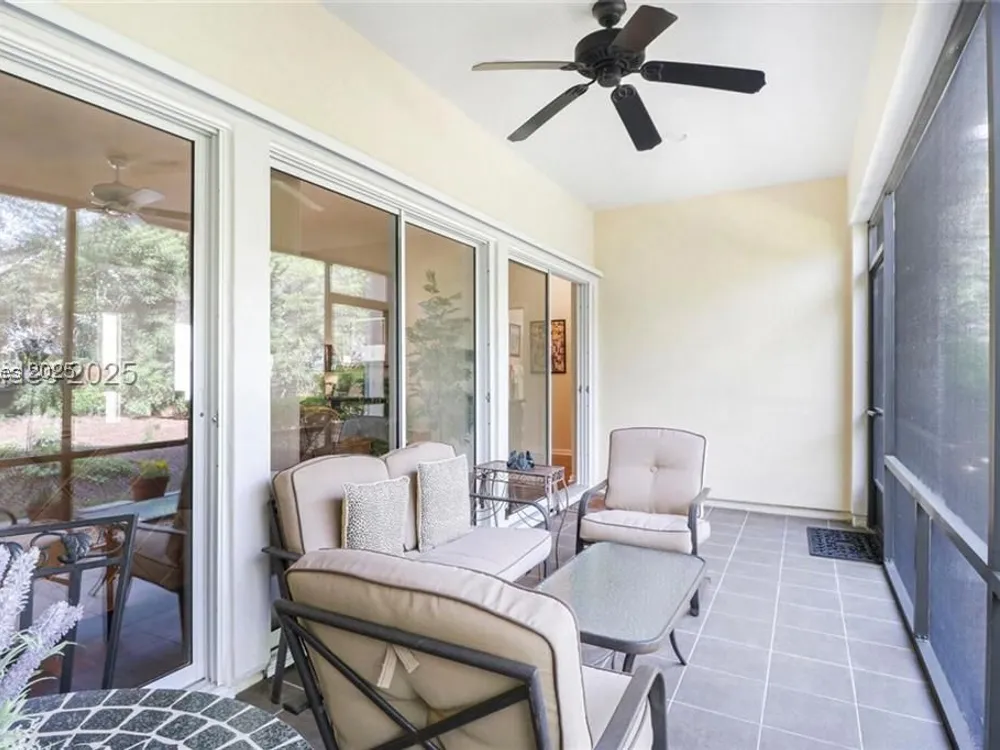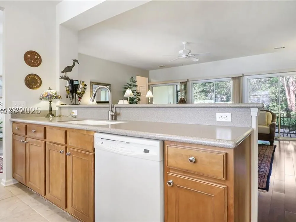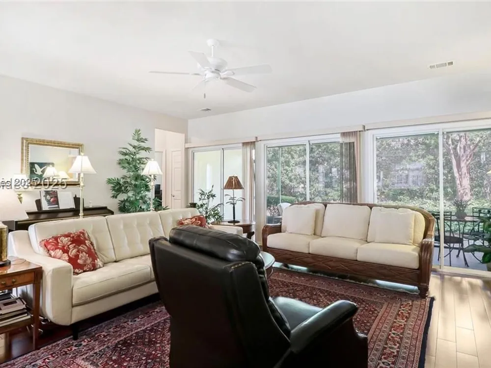 Discover resort-style living at its best in this lovingly maintained Starling model villa, perfectly situated for maximum privacy within Sun City Hilton Head. This spacious home offers a versatile floor plan with three bedrooms plus a formal dining room that can easily flex into a den or office. The huge eat-in kitchen is a dream, featuring a breakfast bar, a large island, and some newer appliances. The open floor plan is perfect for entertaining and daily living. Beautiful wood floors extend through the main living areas. The private owner's suite is a true retreat, complete with a charming bay window and a well-appointed bathroom featuring both a soaking tub and a separate shower. A very private screened porch offers a tranquil space to relax and enjoy your peaceful surroundings. Enjoy peace of mind with a new HVAC system (2023) and water heater (2022). This low-maintenance lifestyle is further enhanced by an inclusive regime fee that covers landscaping, exterior insurance, irrigation water, a termite bond, roof replacement, and exterior painting/washing. This fabulous location puts you close to Town Square, the community gates, amenities, shops, restaurants, doctors, and more. As part of Beaufort County, you'll also benefit from lower property taxes. With everything thoughtfully taken care of, you can focus on enjoying the vibrant, resort-style living that Sun City is known for. Don't miss this opportunity to own a piece of Lowcountry paradise!