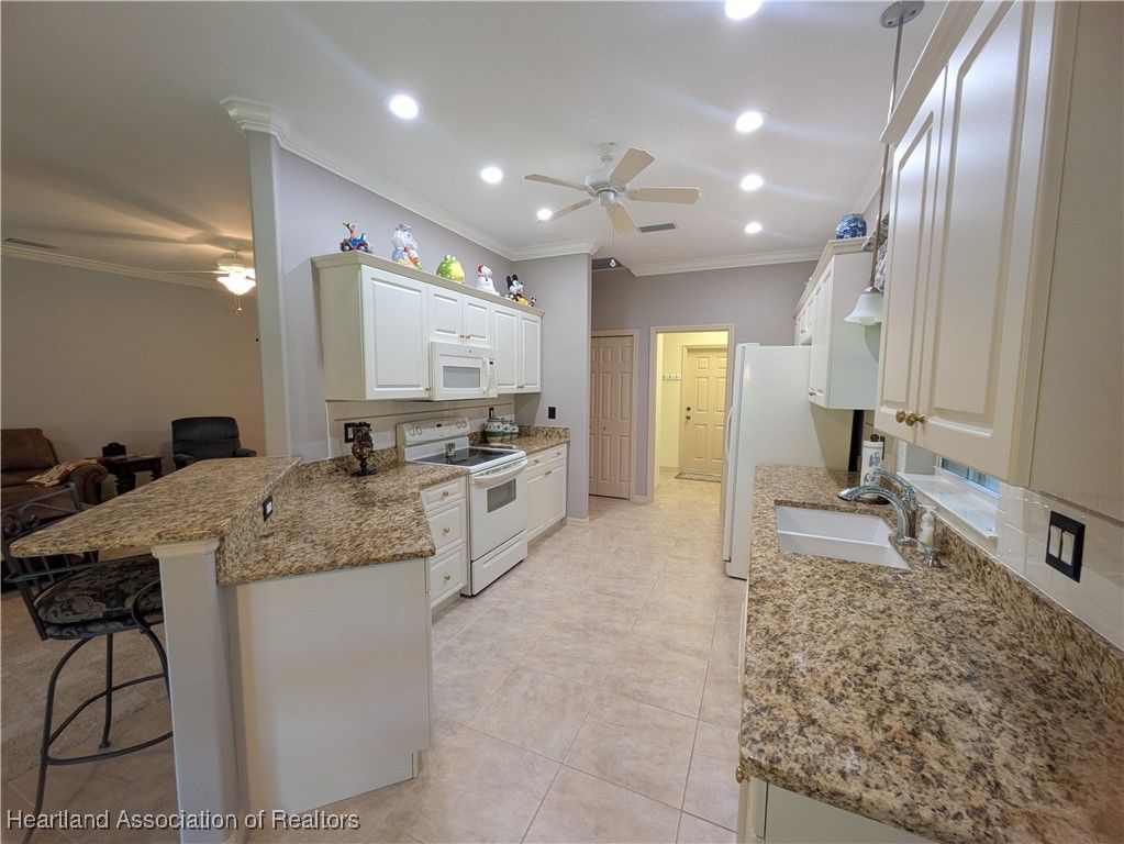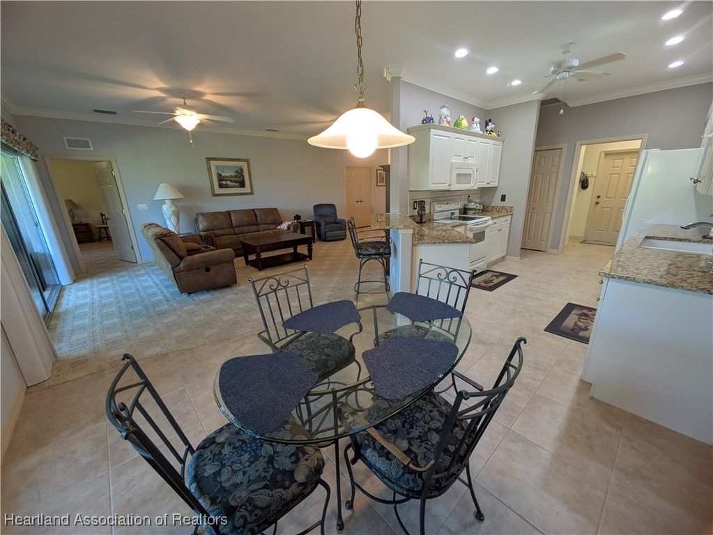 EXTRA, CLEARED BUILDABLE LOT INCLUDED! You'll be impressed at how spacious this lovely, 3 bedroom, 2 bathroom home is. Boasting just over 2,100 sq. ft. of living area with high ceiling, crown molding, a nice open floorplan and partially furnished. Beautiful kitchen highlighted by granite countertops, breakfast bar, loads of cabinets, roomy pantry, recessed lighting and cozy breakfast nook. Grand, inviting living room with dining area and access to large family room. Master bedroom features double walk-in closets, built-in ironing board and a spa-like ensuite adorned with cultured marble including separate vanities, corner tub, walk-in shower and linen closet. Your family or guests can enjoy the added privacy of the pocket doors leading to guest bedroom with bay window and guest bathroom with cultured marble vanity and tile shower with tub. Through double doors is the 3rd bedroom, which could be also be a nice space for an office, hobby room or den. Sizeable laundry room with ample cabinets, granite countertops, washer and dryer included. The pride in ownership is noticeable in the eye-catching curb appeal, pristine landscaping, concrete curbing and concrete sidewalk leading to paver patio. Roomy 2 car garage with cabinets, sink, worktable and extra refrigerator included. Other great updates include 2022 roof, 2017 AC, accordion hurricane shutters plus irrigation for house and vacant lot. Located in the gated, lakeside, 55+ community of Tomoka Heights where you can enjoy a refreshing dip in the community pool, soak in the views of Lake Henry at the community dock and play bocci ball or at the tennis courts, pickleball courts and shuffle board courts. Lake Henry also has access to Lake June. Set in the town of Lake Placid known as the "Caladium Capital of the world" and home of the Caladium Festival. Less than 4 miles from Downtown where you can enjoy a variety of local shops & restaurants.