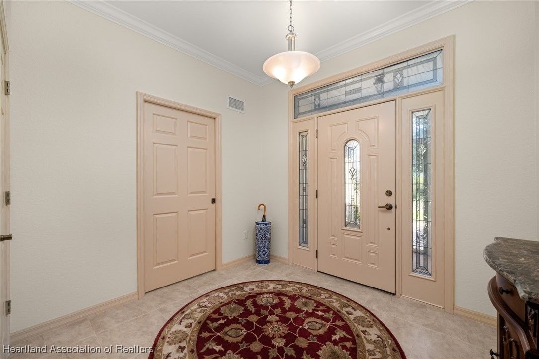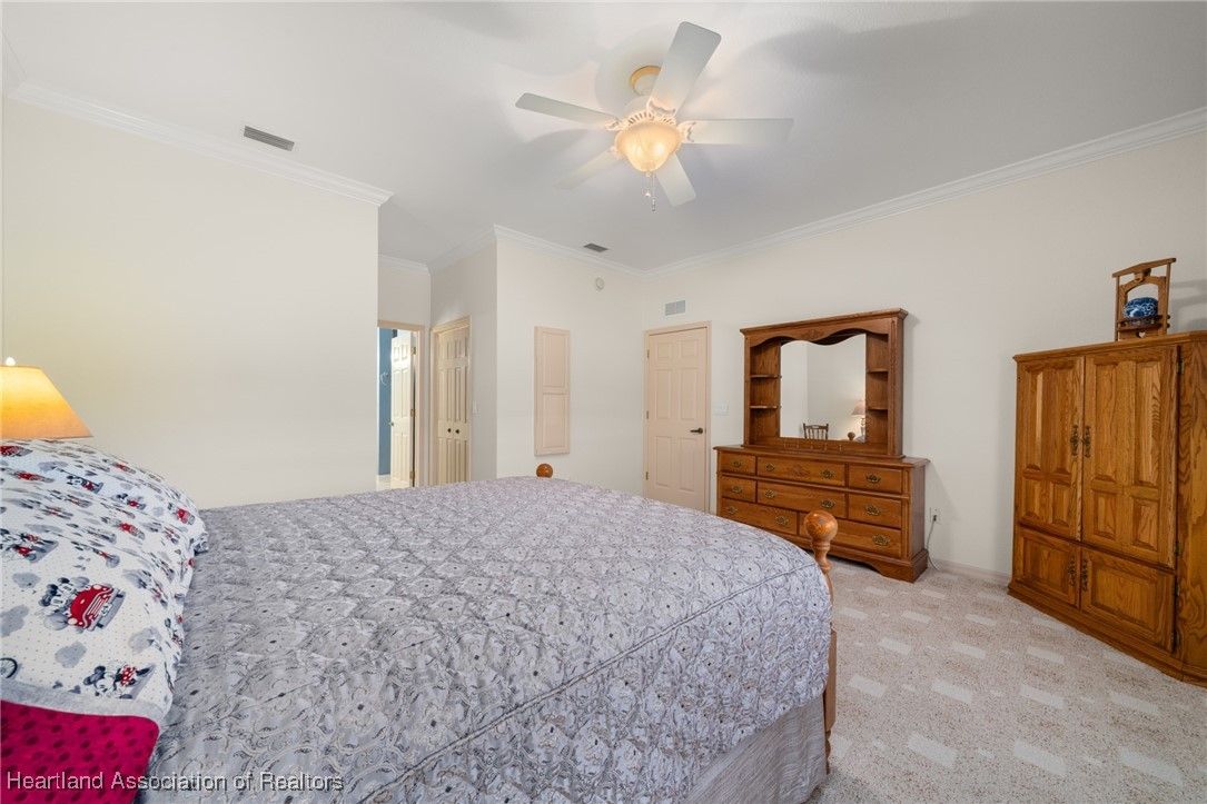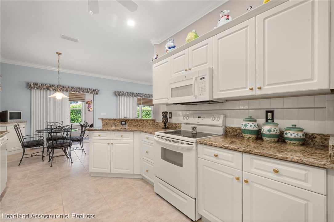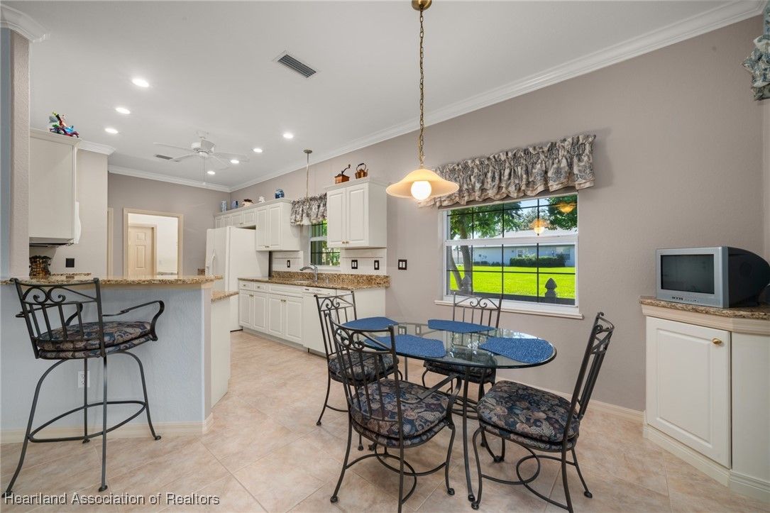 EXTRA, CLEARED BUILDABLE LOT INCLUDED! You'll be impressed at how spacious this lovely, 3 bedroom, 2 bathroom home is. Boasting just over 2,100 sq. ft. of living area with high ceiling, crown molding, a nice open floorplan and partially furnished. Beautiful kitchen highlighted by granite countertops, breakfast bar, loads of cabinets, roomy pantry, recessed lighting and cozy breakfast nook. Grand, inviting living room with dining area and access to large family room. Master bedroom features double walk-in closets, built-in ironing board and a spa-like ensuite adorned with cultured marble including separate vanities, corner tub, walk-in shower and linen closet. Your family or guests can enjoy the added privacy of the pocket doors leading to guest bedroom with bay window and guest bathroom with cultured marble vanity and tile shower with tub. Through double doors is the 3rd bedroom, which could be also be a nice space for an office, hobby room or den. Sizeable laundry room with ample cabinets, granite countertops, washer and dryer included. The pride in ownership is noticeable in the eye-catching curb appeal, pristine landscaping, concrete curbing and concrete sidewalk leading to paver patio. Roomy 2 car garage with cabinets, sink, worktable and extra refrigerator included. Other great updates include 2022 roof, 2017 AC, accordion hurricane shutters plus irrigation for house and vacant lot. Located in the gated, lakeside, 55+ community of Tomoka Heights where you can enjoy a refreshing dip in the community pool, soak in the views of Lake Henry at the community dock and play bocci ball or at the tennis courts, pickleball courts and shuffle board courts. Lake Henry also has access to Lake June. Set in the town of Lake Placid known as the "Caladium Capital of the world" and home of the Caladium Festival. Less than 4 miles from Downtown where you can enjoy a variety of local shops & restaurants. HOA fee covers use of amenities and maintenance of common areas.