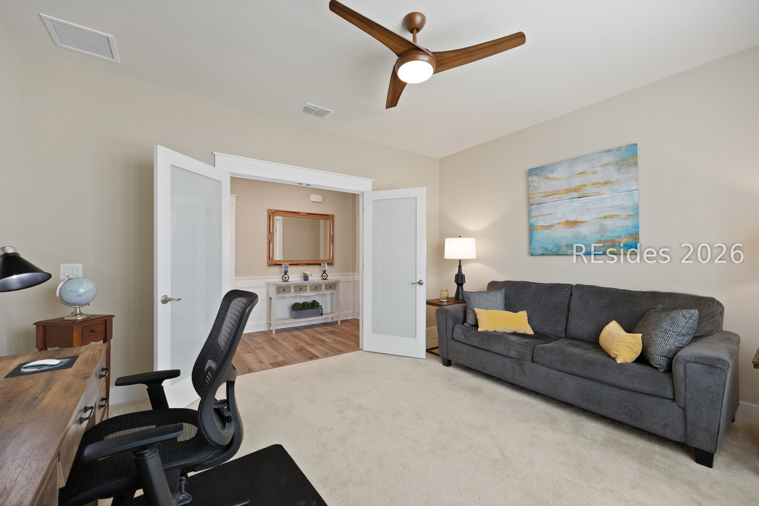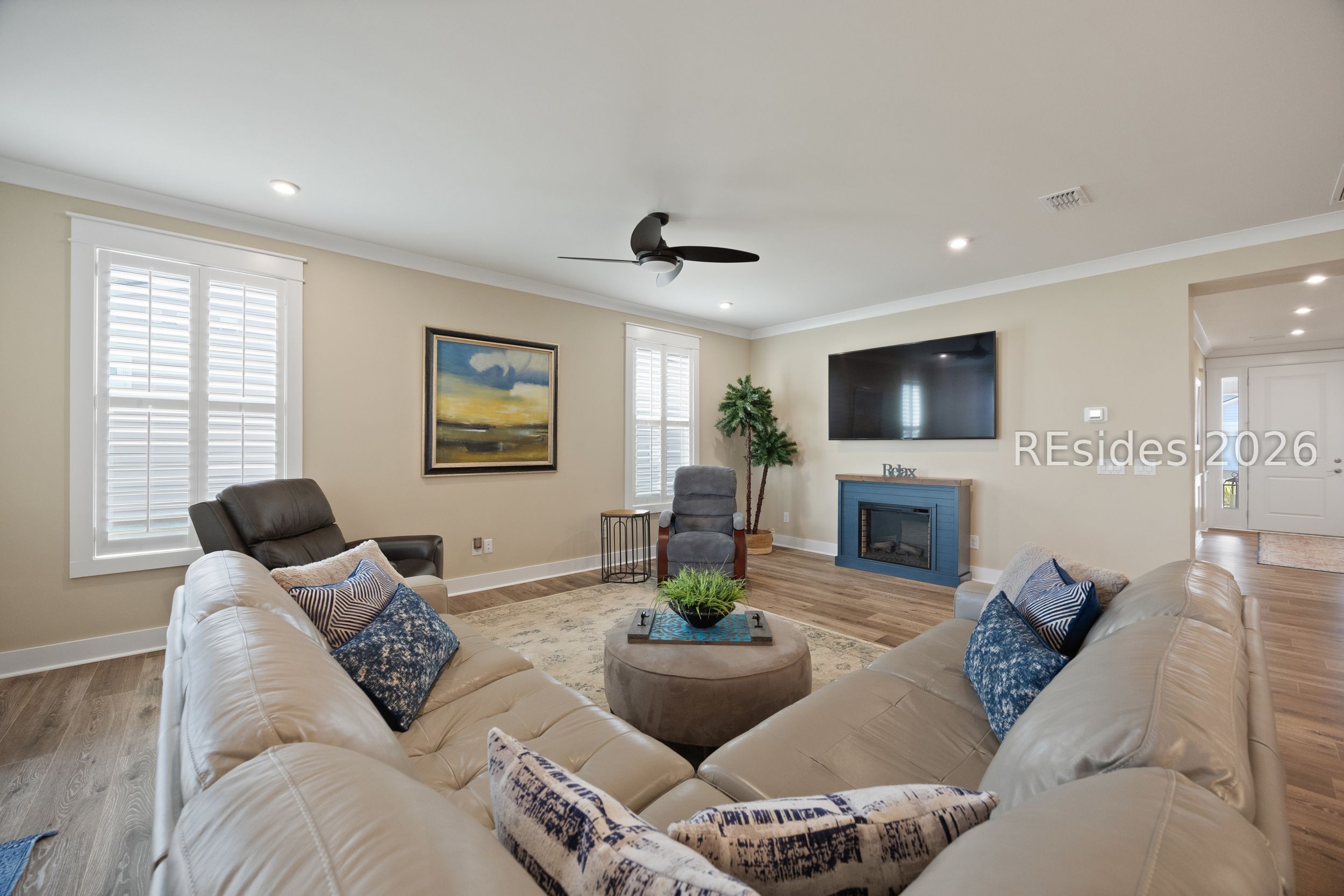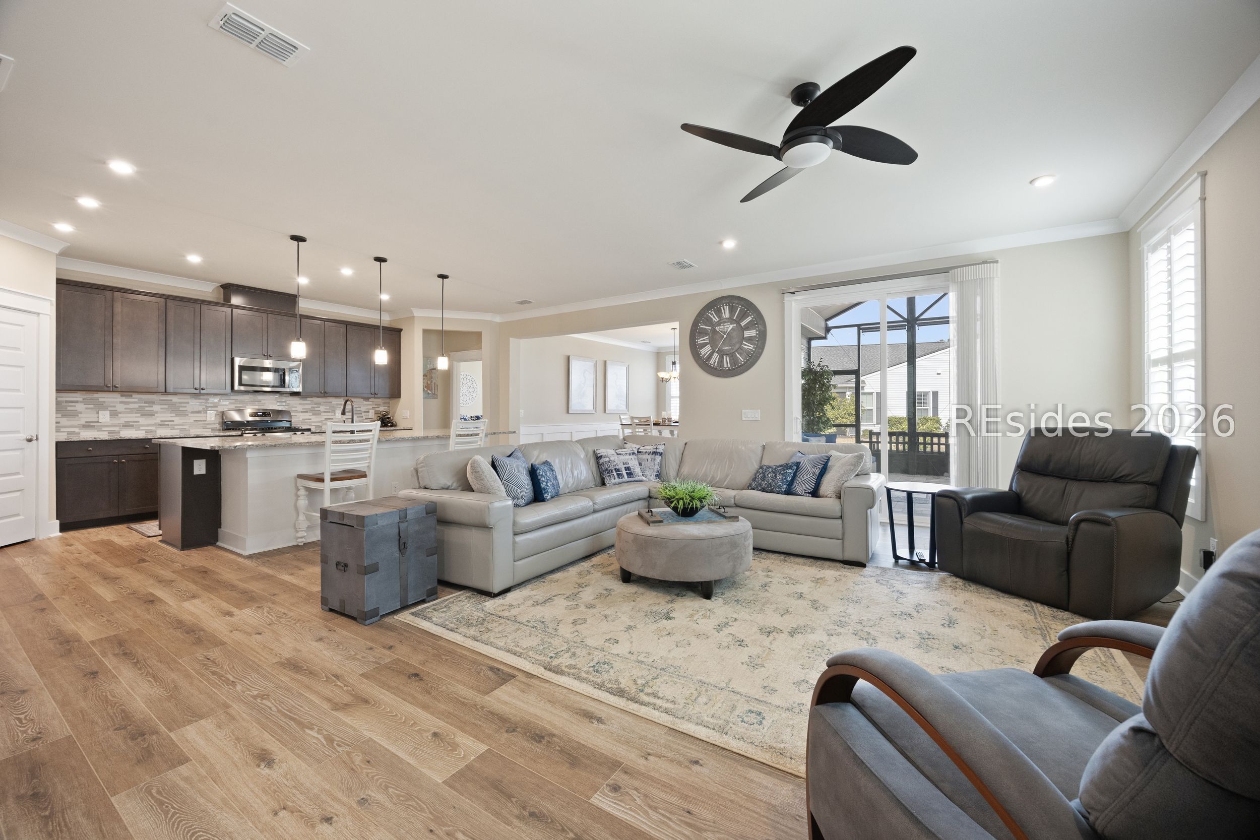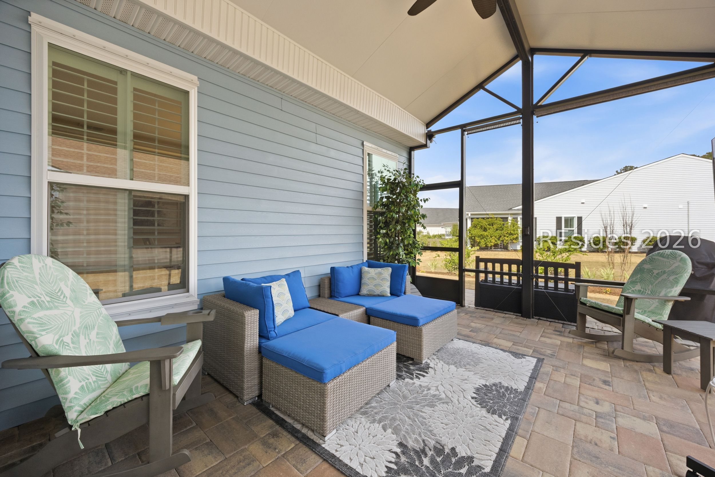 Why wait to build? This move-in ready Killarney model in Four Seasons at Carolina Oaks offers upgrades, convenience, and the Lowcountry lifestyle without the construction timeline. Surrounded by a new lush landscape package, this thoughtfully designed home features a flexible home office, a spacious open-concept great room, and an ultra-staggered gourmet kitchen with stainless steel appliances, abundant cabinetry, and a layout ideal for entertaining. A formal dining room is perfect for gatherings, while plantation shutters throughout add timeless style and privacy. The private owner's suite includes a spa-like bath with dual sinks and a generous walk-in closet. Enjoy outdoor living year-round from the screened patio, plus an attached 2-car garage with additional storage space. Located in one of Bluffton's premier active adult communities, residents enjoy resort-style amenities including a clubhouse, fitness center, resort pool, pickleball, tennis, walking trails, and a vibrant social calendar. Move right in and start enjoying the Four Seasons lifestyle today.