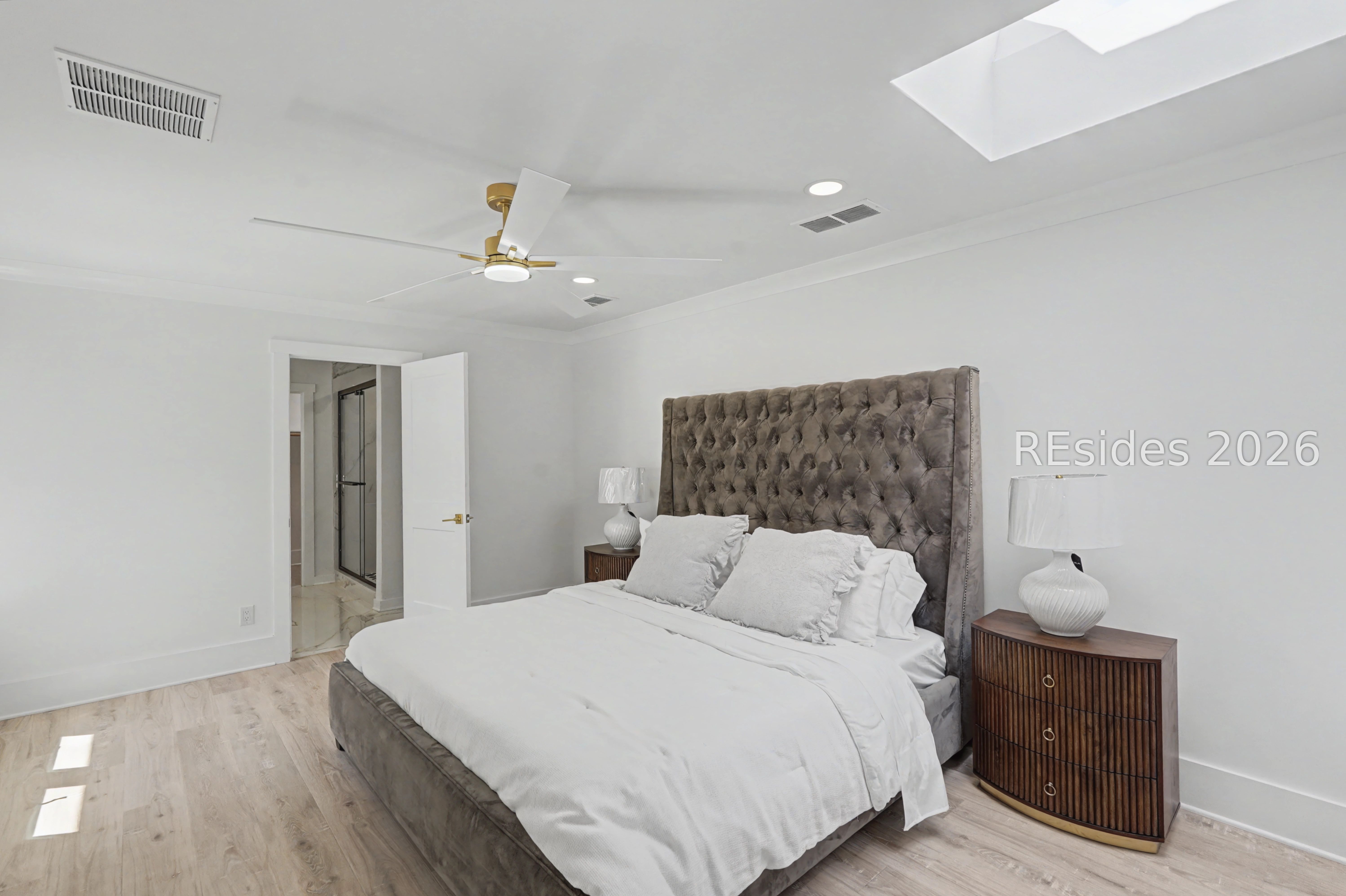 - Ceiling Fan(s), Cathedral Ceiling(s), High Ceilings, Main Level Primary, Multiple Primary Suites, Multiple Primary Bathrooms, New Paint, Pull Down Attic Stairs, Smooth Ceilings, Vaulted Ceiling(s)