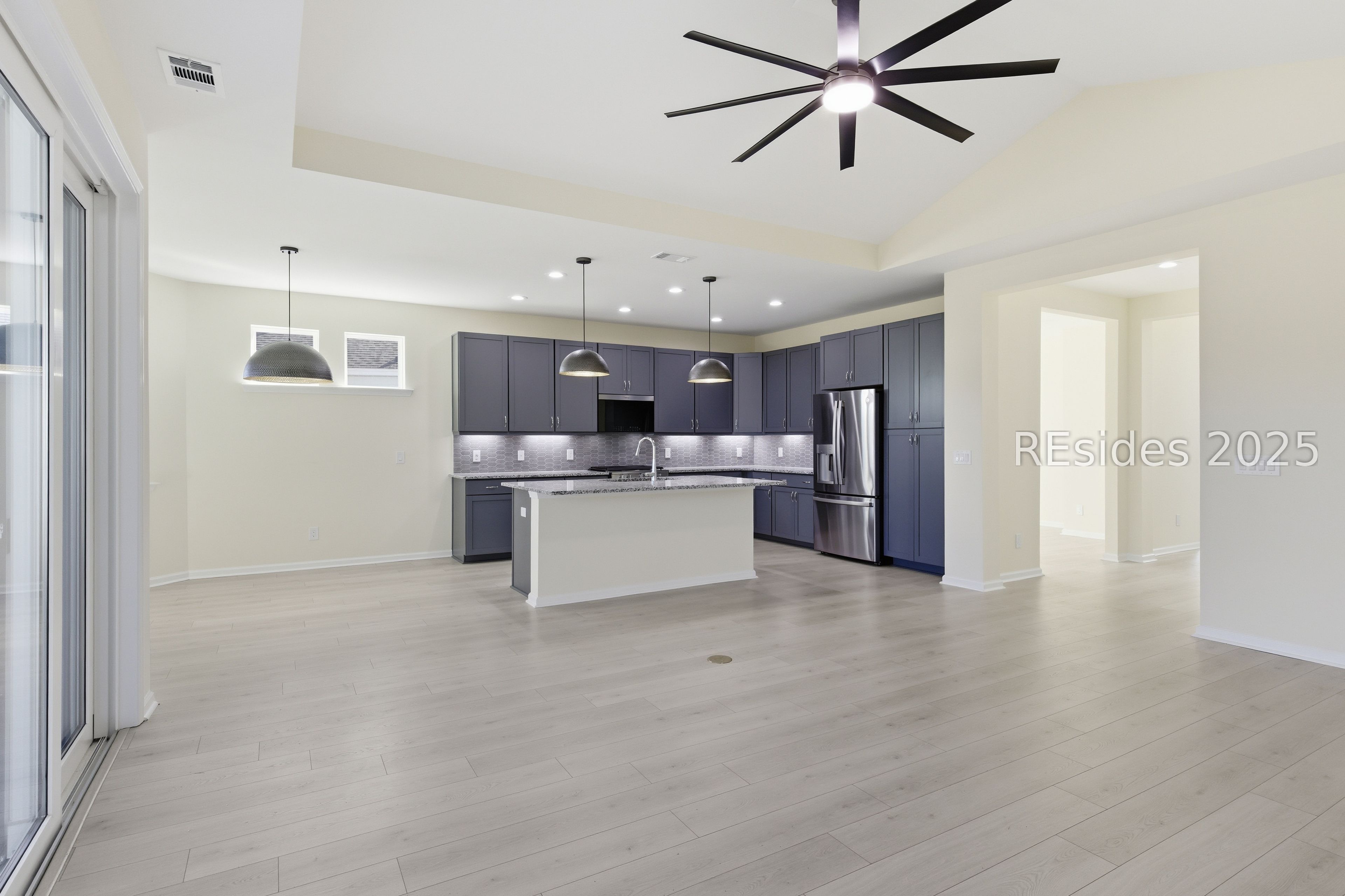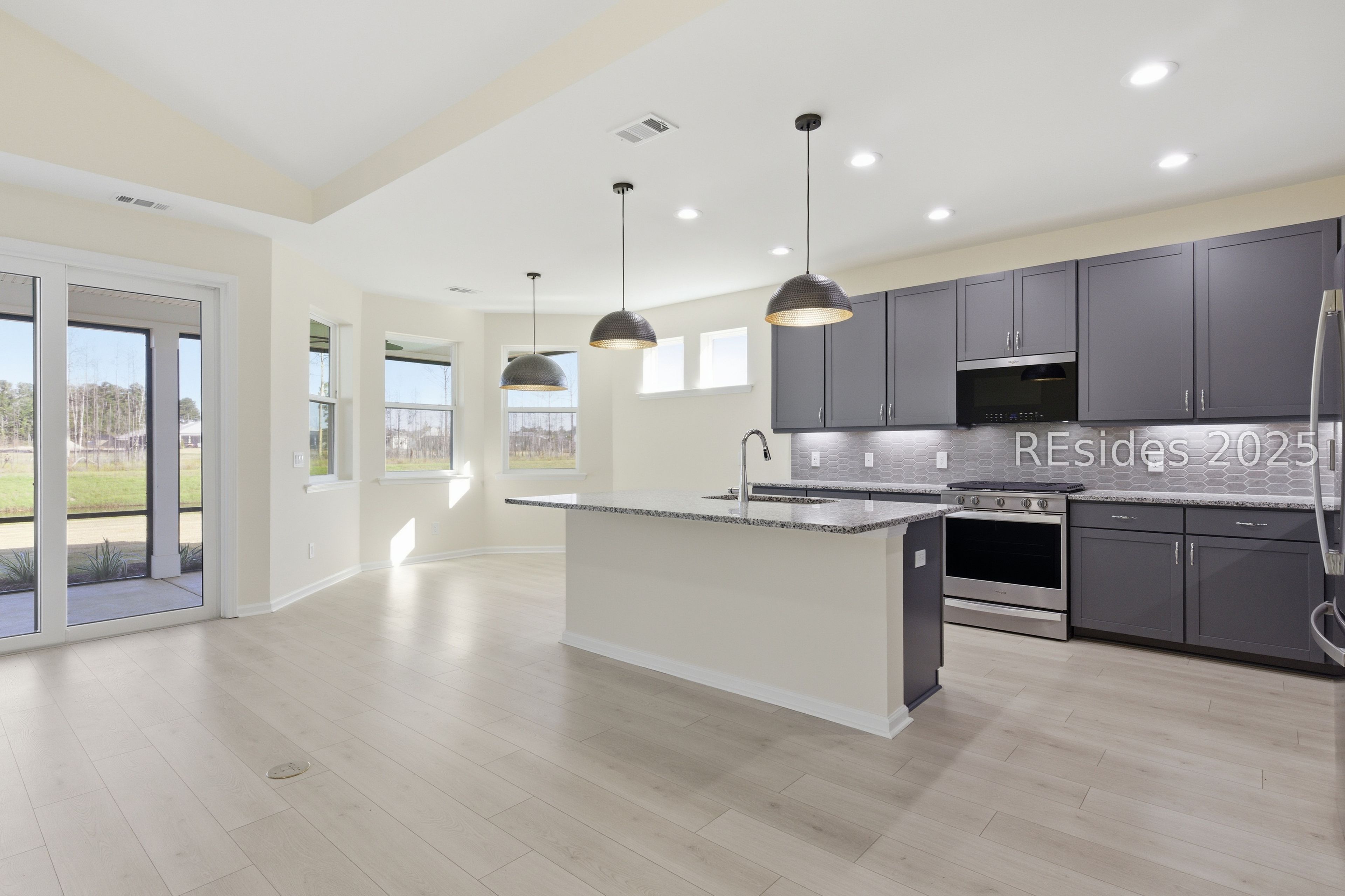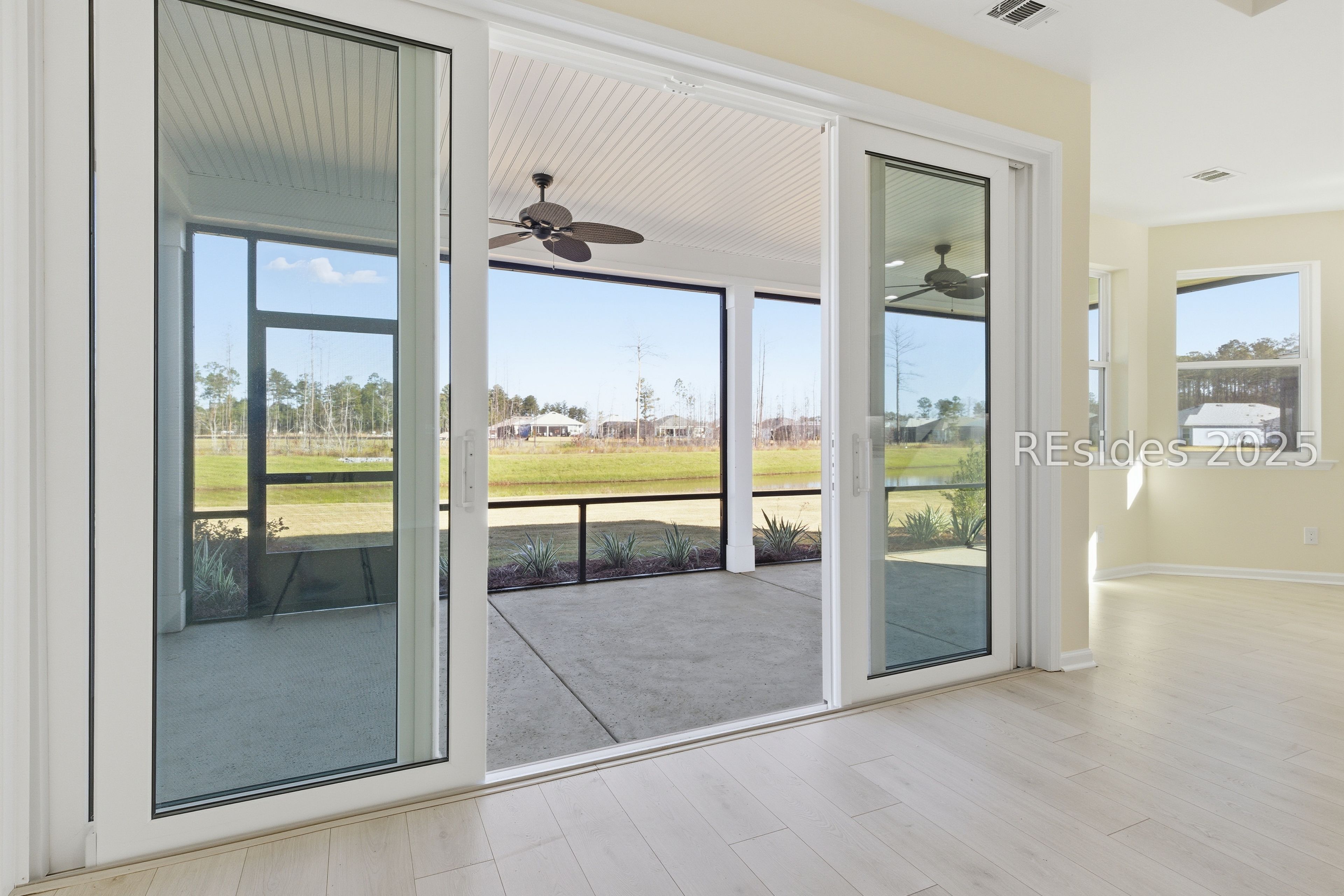 This Coconut model from the Beach Collection series is an exceptional value in Latitude Margaritaville, the 55+ vacation resort lifestyle! This nearly brand-new home, enjoys both Lagoon & preserve views, sits in a highly desirable, quiet 9 house street in phase 8.The open & airy split bedroom floor plan has many upgrades including 8-foot doors, upgraded 42-inch Shaker kitchen cabinets with soft close doors & dove tail joint drawers. Upgraded backsplash & custom granite kitchen, upgraded appliances with a 5-burner gas range & high-end microwave.The large great room features vaulted ceilings & 4 panel sliders opening to the Lani, offering serene views of the beautiful lagoon. Enjoy coffee or cocktails on the large screen Lani.The primary suite features a spa-like bathroom with a tiled, walk-in shower & double vanity with granite counters. The bedroom is generous in size with private lagoon views. The bath features tile floors, double vanity & an XL fully tiled shower! The generously sized 2nd bedroom is a perfect guest room. The secondary hall bath has granite counters, tiled floors & a tiled tub/shower combo. Plus there is a den that can serve as an office, media room, craft room or an overflow guest room.Luxury plank easy maintenance flooring is throughout the main living areas with tile in baths. Energy efficient & never run out of hot water again with the tankless hot water heater. Residents enjoy a multitude of activities right in their own backyard with an on-site activities coordinator. The resort-style amenities include 3 pools, 12 pickleball courts, 5 tennis courts, 5 bocce ball courts, fitness center, locker rooms with showers, indoor pool, hot tub, sauna, massage room, pottery studio, wood working shop, business center, meeting rooms. Lake front clubhouse with a large ballroom, meeting/activity rooms with a 2nd fitness center, commercial style serving kitchen, screen porch, covered deck overlooking the lake, firepit, a private beach, pickleball courts & finsball fields, an on-site Bar & Chill Restaurant & Barkaritaville dog park. Activities, events & live bands weekly provide a lot of fun & social connections. With numerous clubs & groups, you will find yourself having fun every day or just chilling out. Its like a cruise ship on dry land! Plus, the beaches & cultural attractions of Hilton Head are within a 30-minutes.Latitudes Margaritaville Hilton Head is a gated golf cart community. Enjoy Latitude Living at its best! Live your dream today!