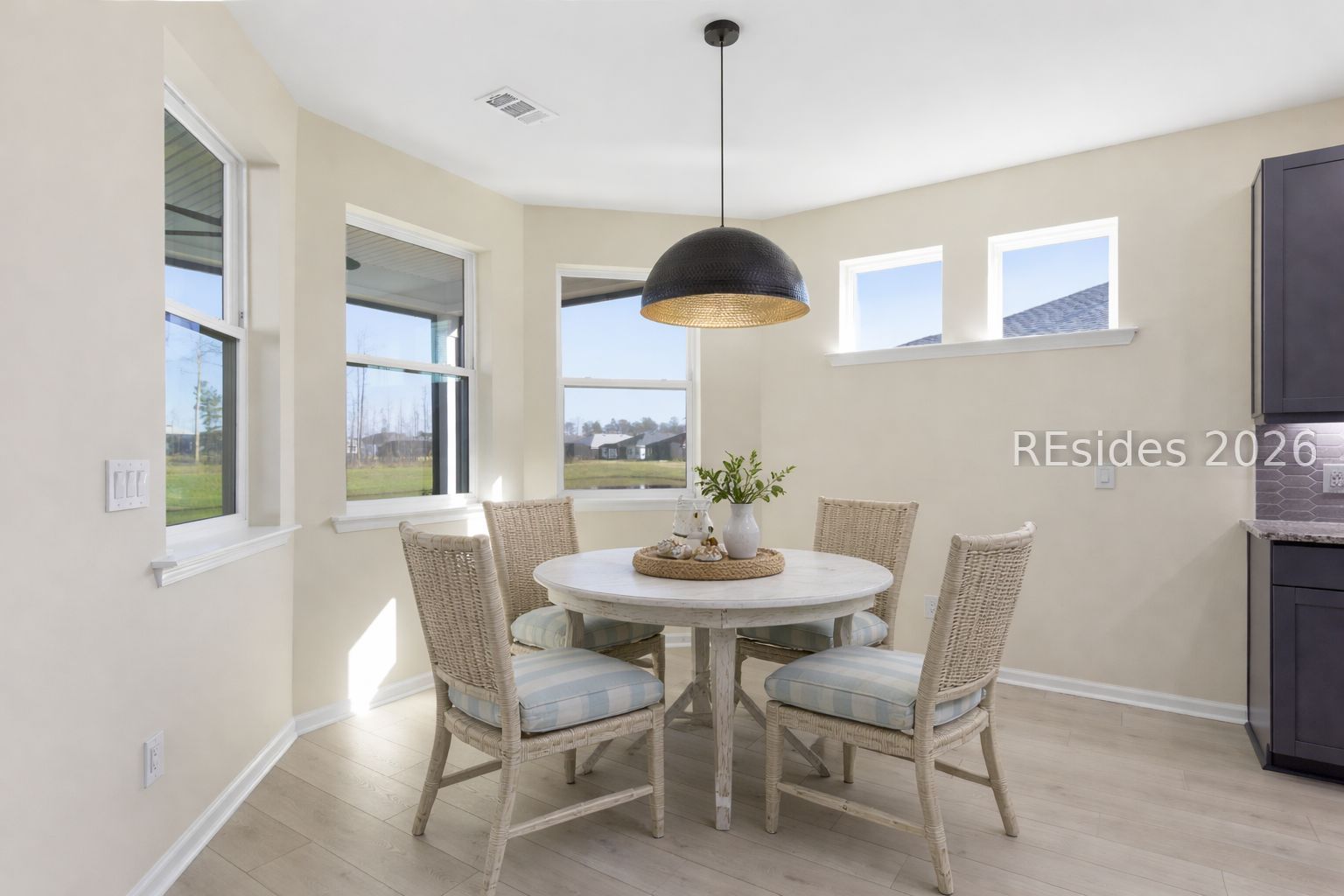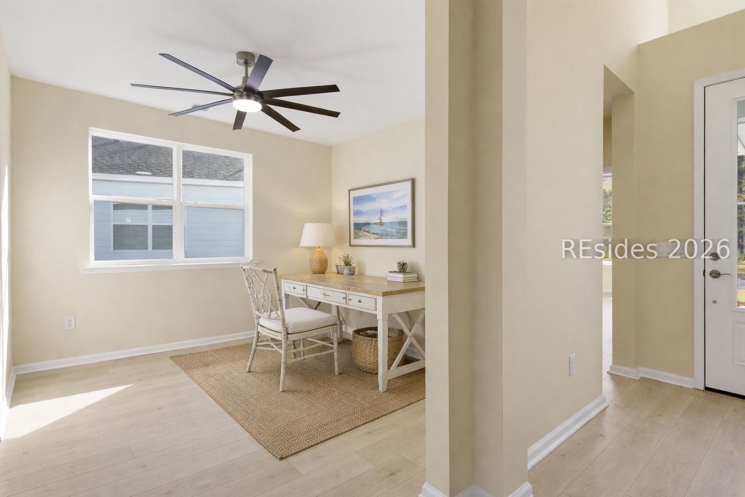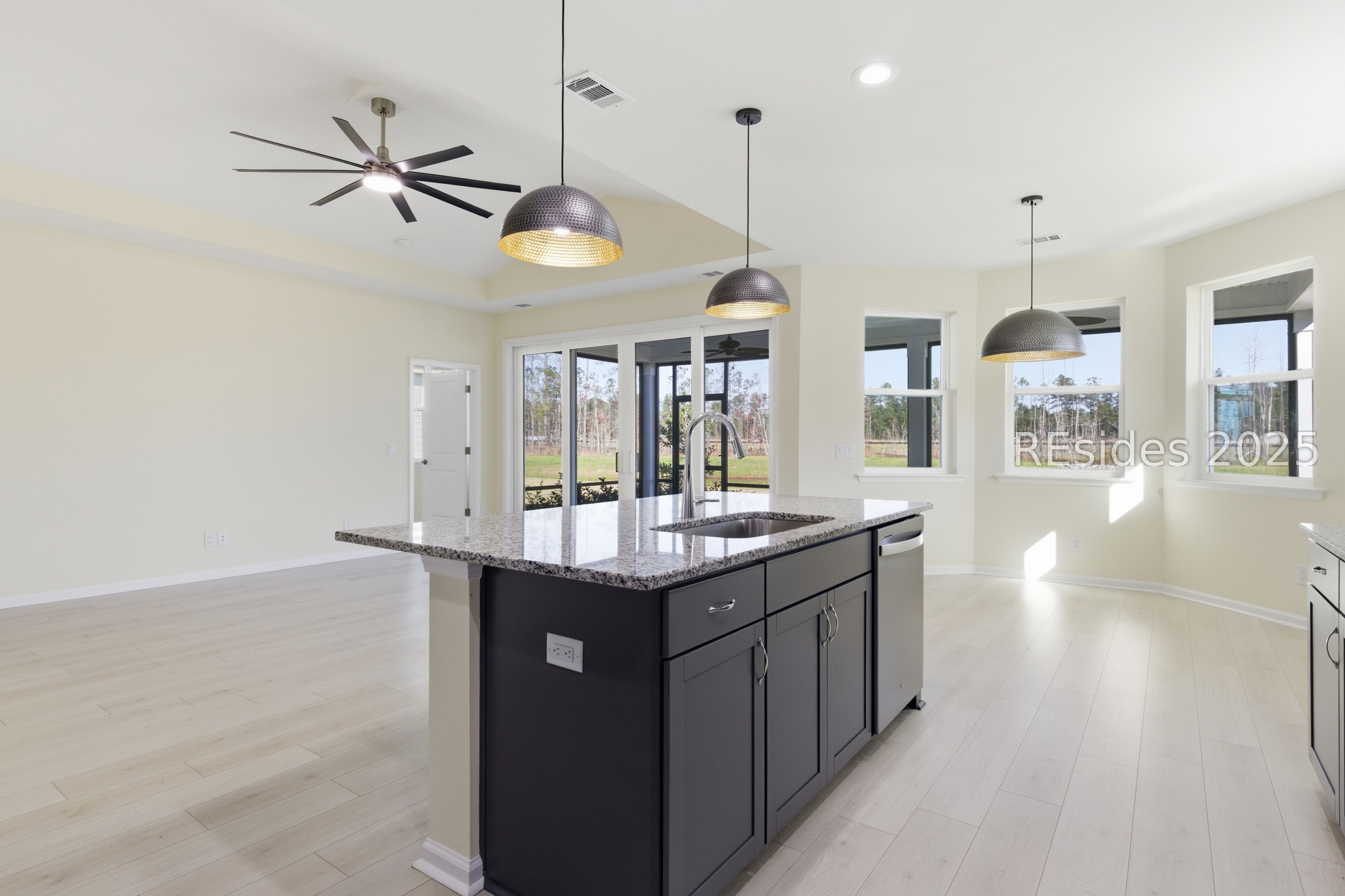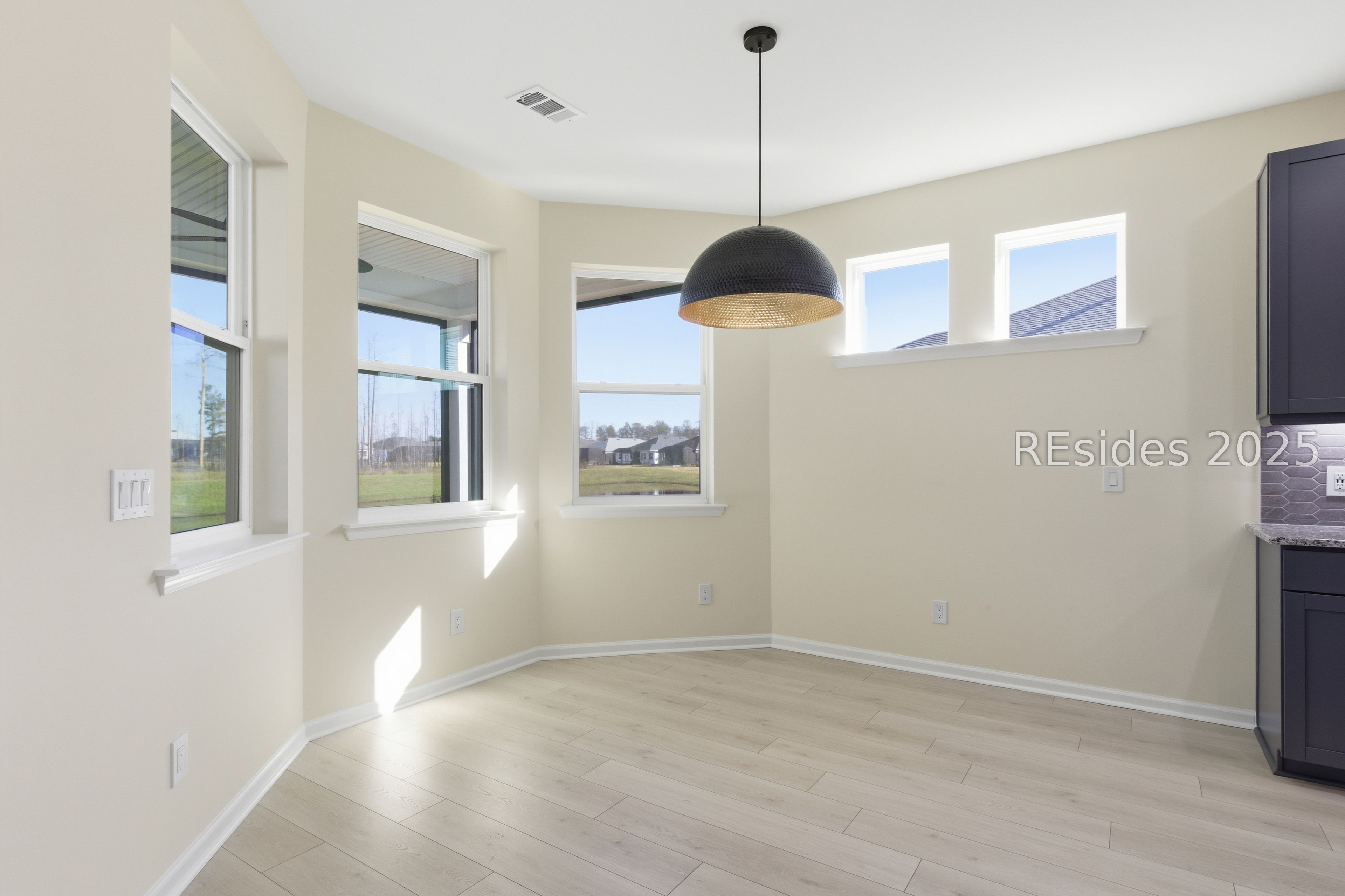 This Coconut model from the Beach Collection series is an exceptional value in Latitude Margaritaville, the 55+ vacation resort lifestyle! This nearly brand-new home, enjoys both Lagoon & preserve views, sits in a highly desirable, quiet 9 house street in phase 8.The open & airy split bedroom floor plan has many upgrades including 8-foot doors, upgraded 42-inch Shaker kitchen cabinets with soft close doors & dove tail joint drawers. Upgraded backsplash & custom granite kitchen, upgraded appliances with a 5-burner gas range & high-end microwave.The large great room features vaulted ceilings & 4 panel sliders opening to the Lani, offering serene views of the beautiful lagoon. Enjoy coffee or cocktails on the large screen Lani.The primary suite features a spa-like bathroom with a tiled, walk-in shower & double vanity with granite counters. The bedroom is generous in size with private lagoon views. The bath features tile floors, double vanity & an XL fully tiled shower! The generously sized 2nd bedroom is a perfect guest room. The secondary hall bath has granite counters, tiled floors & a tiled tub/shower combo. Plus there is a den that can serve as an office, media room, craft room or an overflow guest room.Luxury plank easy maintenance flooring is throughout the main living areas with tile in baths. Energy efficient & never run out of hot water again with the tankless hot water heater. Residents enjoy a multitude of activities right in their own backyard with an on-site activities coordinator. The resort-style amenities include 3 pools, 12 pickleball courts, 5 tennis courts, 5 bocce ball courts, fitness center, locker rooms with showers, indoor pool, hot tub, sauna, massage room, pottery studio, wood working shop, business center, meeting rooms. Lake front clubhouse with a large ballroom, meeting/activity rooms with a 2nd fitness center, commercial style serving kitchen, screen porch, covered deck overlooking the lake, firepit, a private beach, pickleball courts & finsball fields, an on-site Bar & Chill Restaurant & Barkaritaville dog park. Activities, events & live bands weekly provide a lot of fun & social connections. With numerous clubs & groups, you will find yourself having fun every day or just chilling out. Its like a cruise ship on dry land! Plus, the beaches & cultural attractions of Hilton Head are within a 30-minutes.Latitudes Margaritaville Hilton Head is a gated golf cart community. Enjoy Latitude Living at its best! Live your dream today!