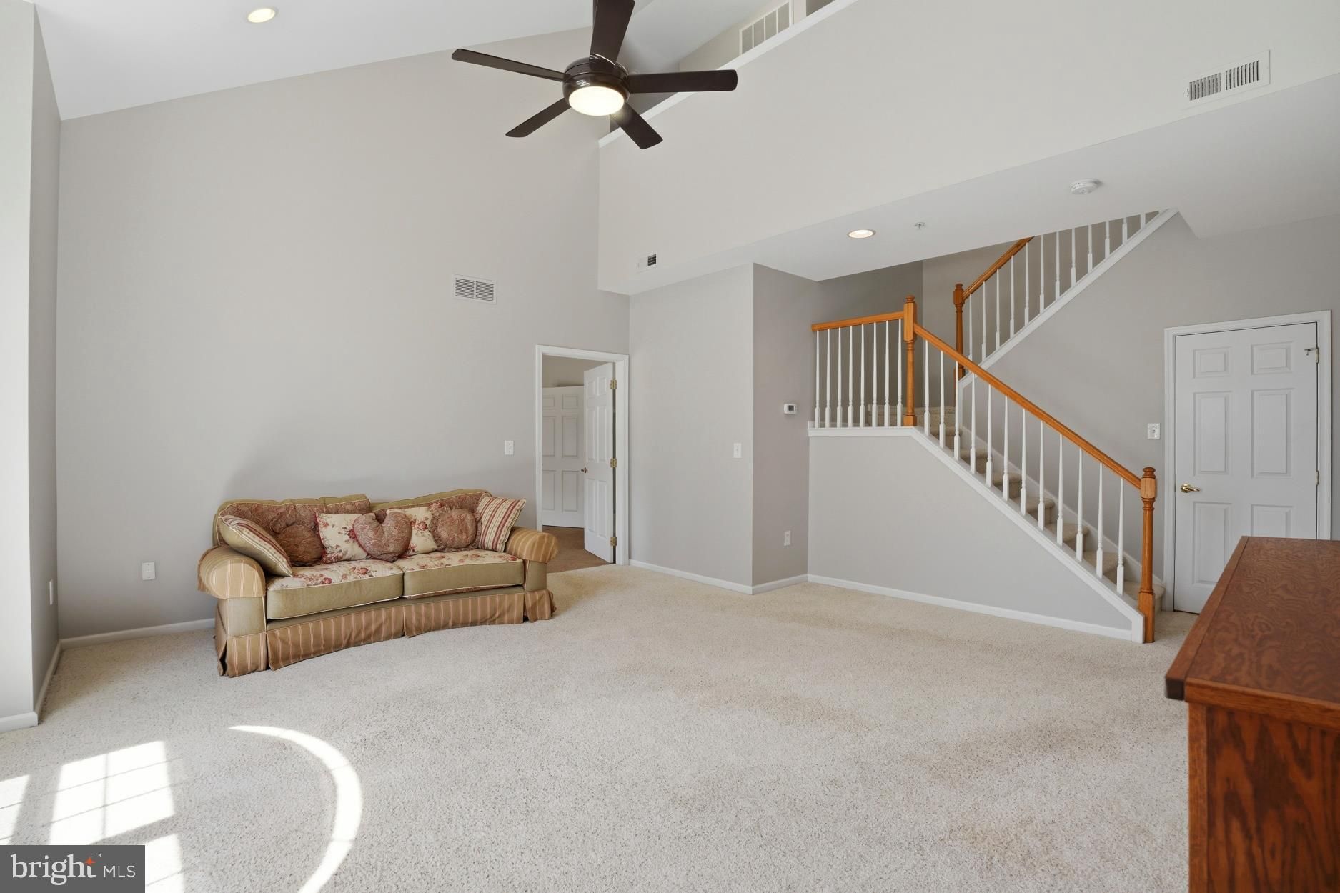 Premier location in Stuart's Keep, a 55+ Community. This spacious 2 bed, 2 1/2 bath 1 car garage townhouse also has a room on the upper level which could be used as an office, or a 3rd bedroom. The open main level has hardwood floors upon entering the home. There is a carpeted dining room off of the entrance. The spacious kitchen has an eat-in area. The laundry area is convieniently located in a closet off of the kitchen. The kitchen has ample cabinets, and a pantry closet. The large carpeted family room is a great location to unwind and relax with ceiling fan. The Main Level Primary en-suite is located in a convienent location off of the family room. There is a good sized walk-in closet in the Primary Bedroom. The primary bathroom has double sinks, and a practical walk-in shower. There is a also a tasteful half bath on the main level. The curved staircase will lead you to the upper level where you will find a 2nd bedoom with ceiling fan, and great closet space. There is a full bathroom on the upper level with enclosed tub shower and tasteful ceramic tile. The extra room on the upper level could be used as an office, a bedroom ,or a great playroom for the grandchildren. Front entry 1 car garage is great for when the weather does not cooperate. Nice sized front patio with covered front door. The community also offers a welcoming clubhouse perfect for socializing and activities. Convienient to transportation, dining and shopping. This home is in a must see location within the neighborhood. Set your appointment today.