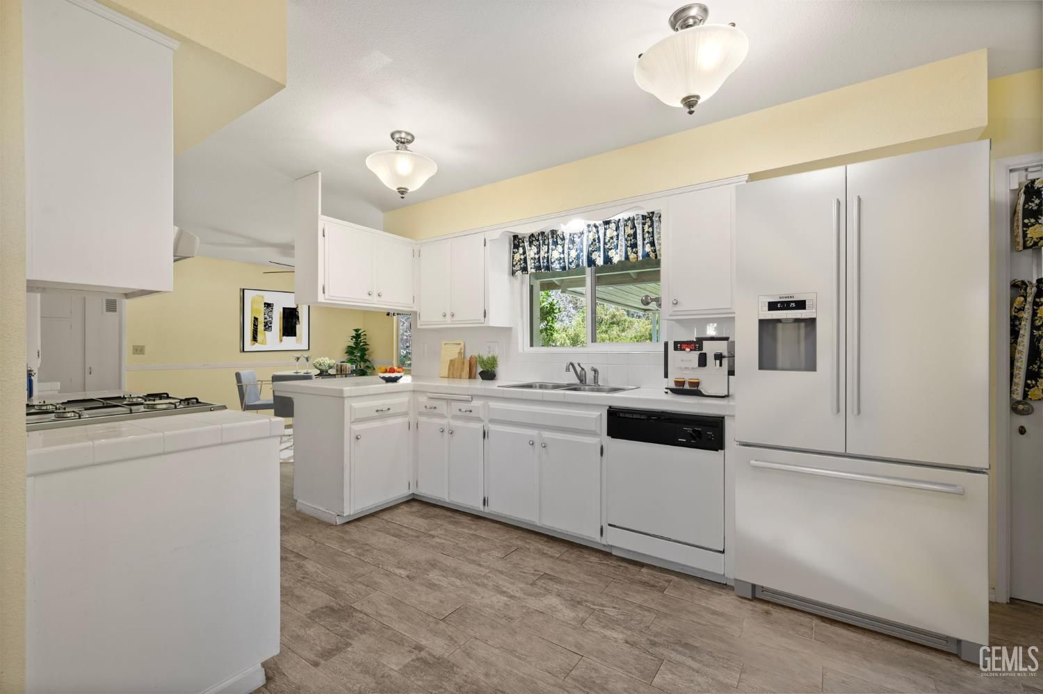 This refreshed 3-bed, 2-bath home offers 1,613 sq. ft. of easy, low-maintenance living in Kern City's highly sought-after 55+ community. Fresh interior paint and updated neutral-tone carpet create a clean, move-in-ready feel the moment you step inside. The light-filled kitchen blends vintage character with everyday function, showcasing glass-front display cabinets, a breakfast bar, and generous counter space for prep and hosting. The primary suite features dual closets for added storage and convenience. Step outside to a covered patio where you can sip morning coffee, watch golfers pass by, or enjoy golden-hour sunsets across the green. Just beyond your backyard, you'll find resident amenities including a sparkling pool, clubhouse, and an on-site restaurant with full bar the perfect place to unwind or meet friends. Live where relaxation, recreation, and community come together. Move in and start enjoying the lifestyle you've earned.