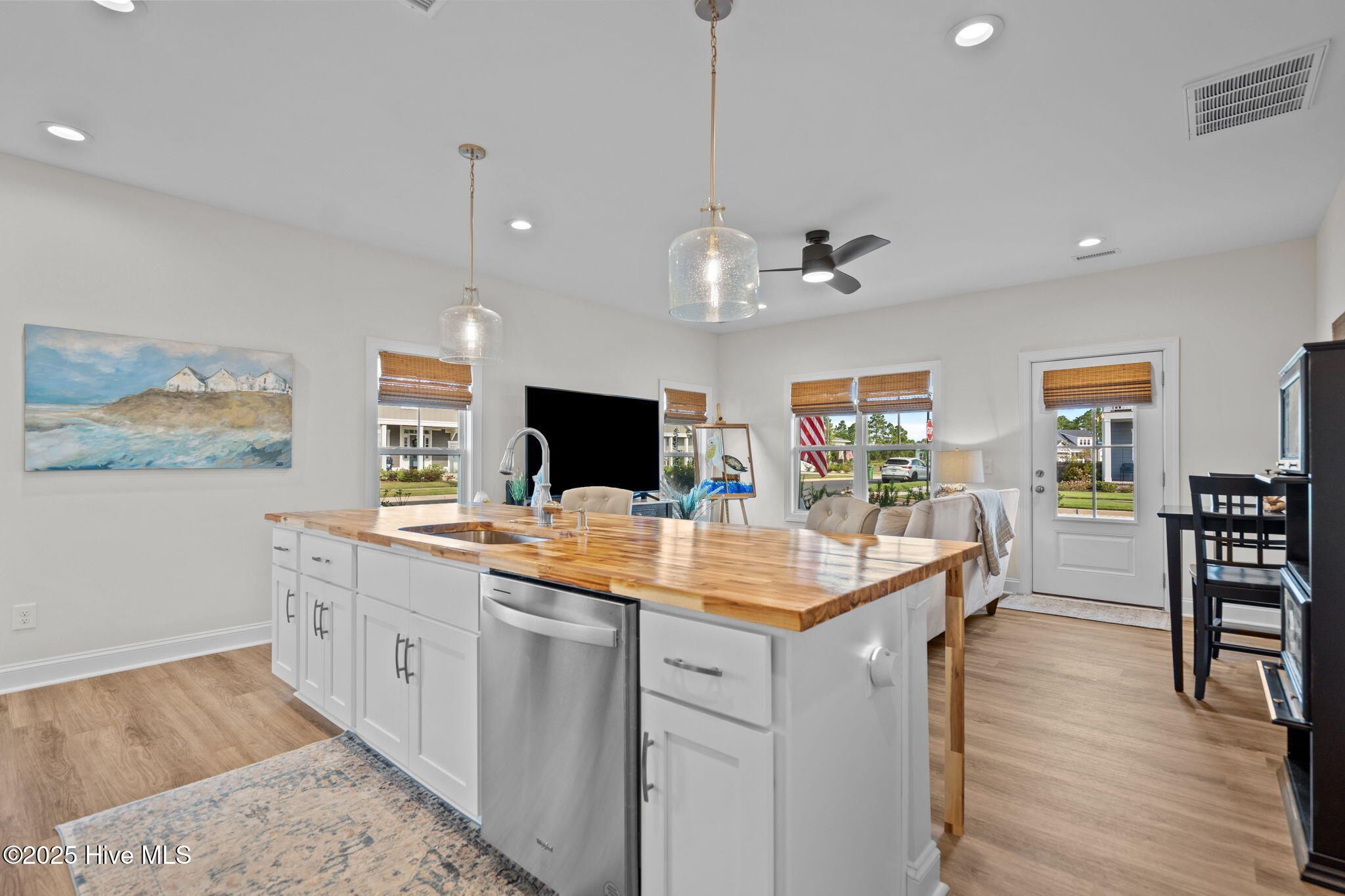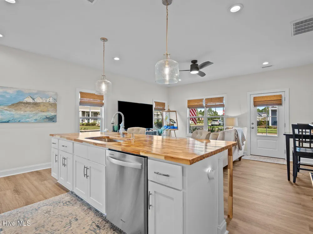 - Blinds/Shades, Kitchen Island, Ceiling Fan(s)