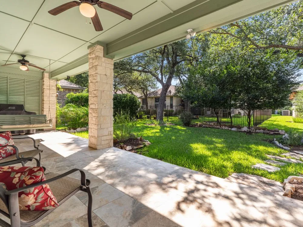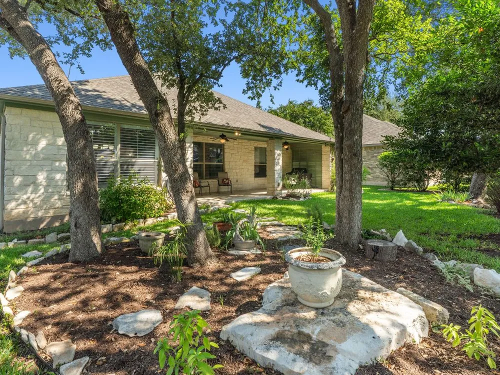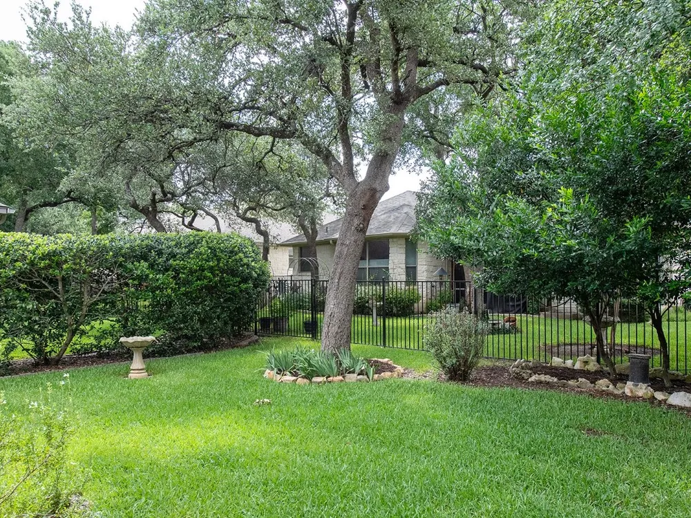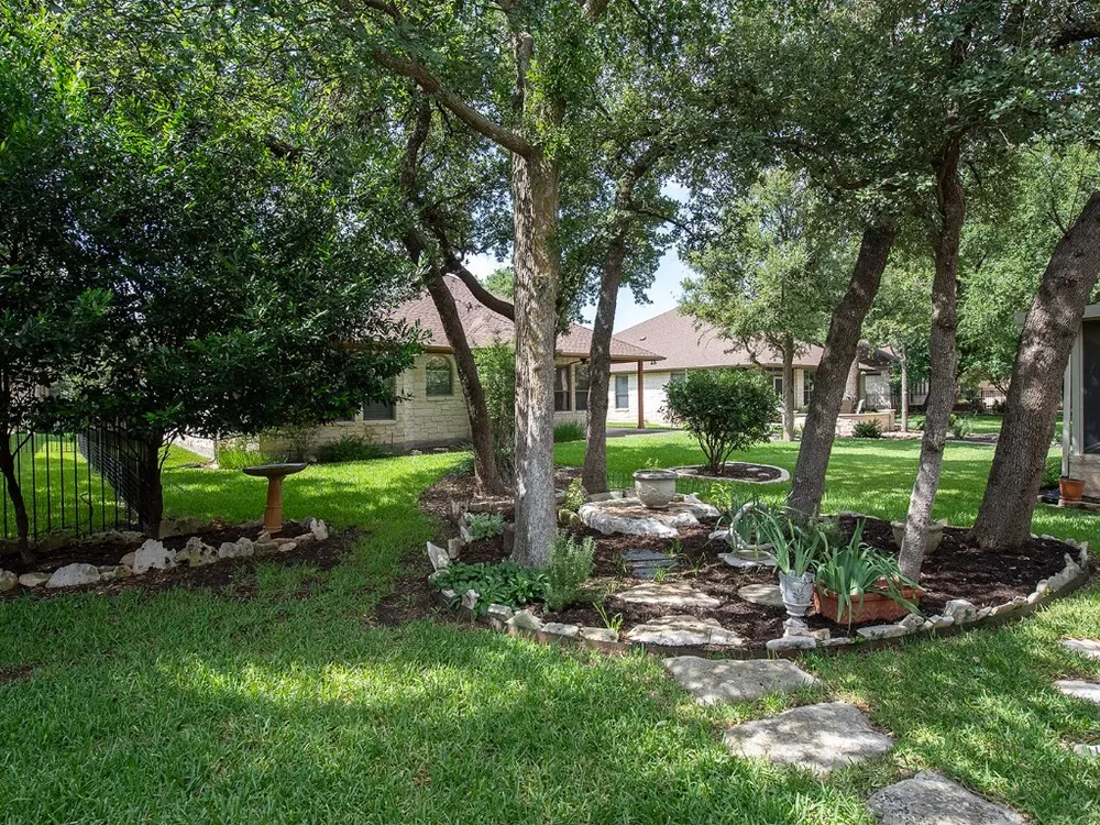 This single-owner home in the premier Jimmy Jacobs senior community of Heritage Oaks combines comfort, functionality and charm. The two bedroom 2 bath home comes with bonus room which was used as a dedicated office space by the previous owner. The owner has been the sole owner since the property was built and has original building plans. While the county taxes the property for 1612 square feet, the original builder specs indicate 1665 square feet. Freshly painted in neutral tones the house is move-in ready with a warm, inviting atmosphere. Its bright and open layout is perfectly designed for everyday living as well as for entertaining. The extended covered back patio with swing faces a beautiful garden shaded by mature trees. The oversize patio is a peaceful place to sip morning coffee as well as entertaining. There is a connected oversize gas grill prefect for personal or large group cooking. This house is less than a mile from HEB, Sprouts, Starbucks and more. The Heritage Oaks community offers resort style amenities including an elegant clubhouse ballroom with full commercial kitchen, fitness center, library, game room, billiards, darts and activities such as yoga, poker bingo, happy hours, dinner parties and more. There are tree-lined walking trails, a serene pond with waterfall and the historic Shell Ranch windmill.