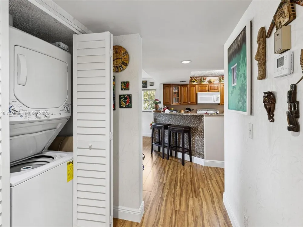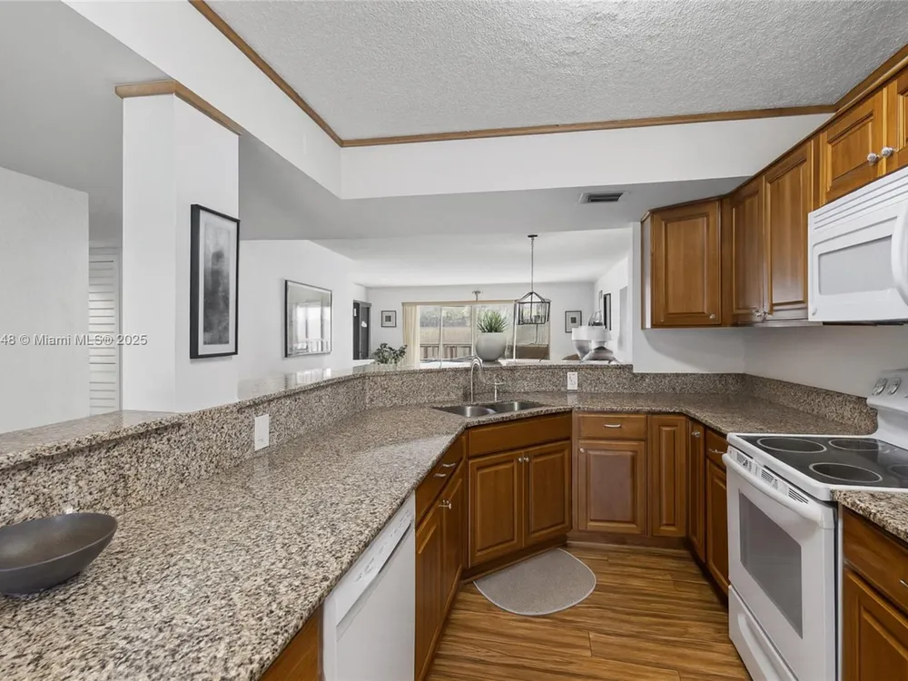 Welcome to this charming 2-bed, 2-bath unit overlooking the serene lakes and manicured green lawns of Flamingo Lakes Golf & Country Club at Century Village. Step inside to discover laminate wood floors throughout, creating a warm and cozy feel. The kitchen features granite countertops and wood cabinets; appliances covered under maintenance and replacement insurance. The impact windows and balcony doors offer peace of mind during storm season. This tranquil 55+ community offers low-maintenance living and an abundance of amenities; i.e. clubhouse, pools, tennis, pickle ball, golf, clubs, activities, and bus services. Maintenance fee includes water, trash, sewer, basic cable, wifi, amenities. Conveniently located close to Pembroke Lakes Mall, Whole Foods, Trader Joes & popular restaurants.