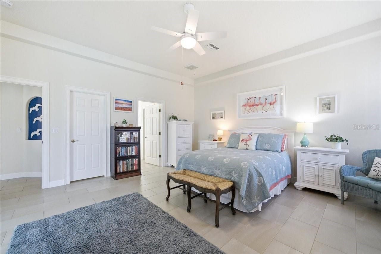 - Ceiling Fan(s), Crown Molding, Eat-in Kitchen, High Ceilings, Open Floorplan, Solid Surface Counters, Stone Counters, Walk-In Closet(s), Window Treatments