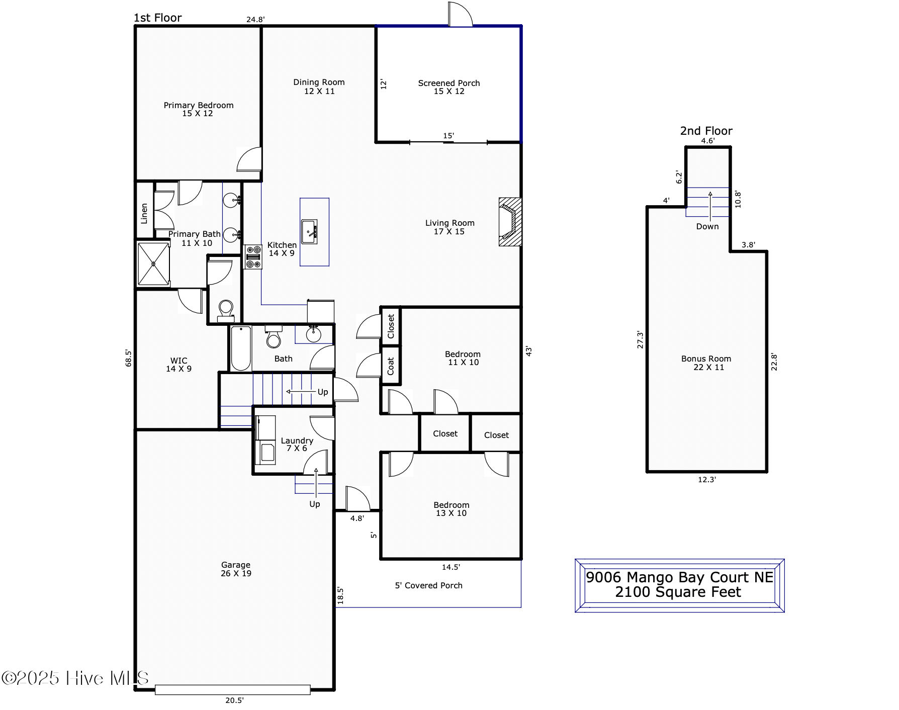 - 2,100 sq ft