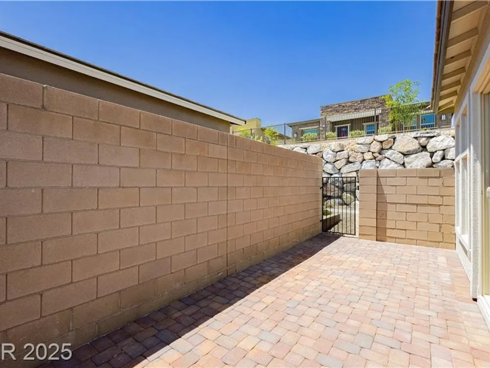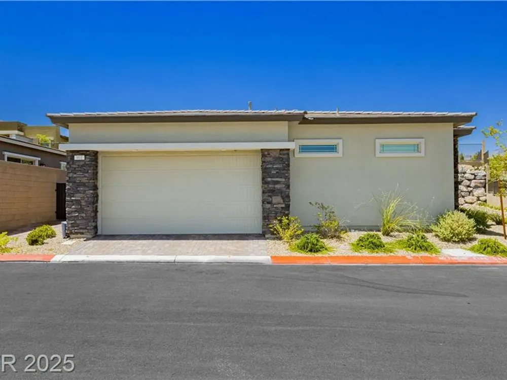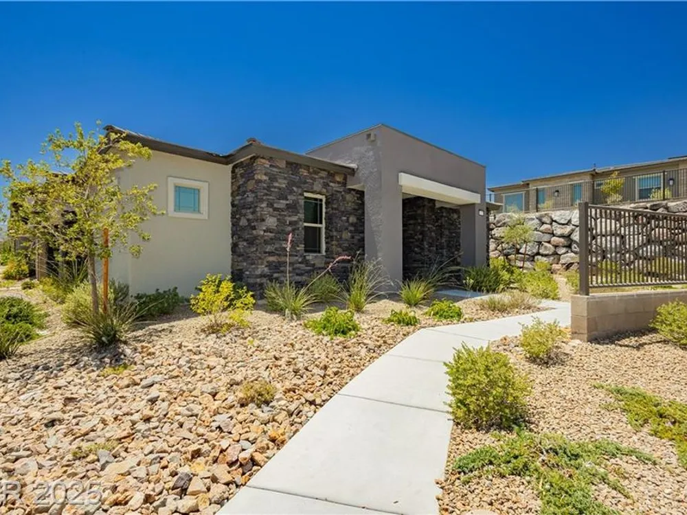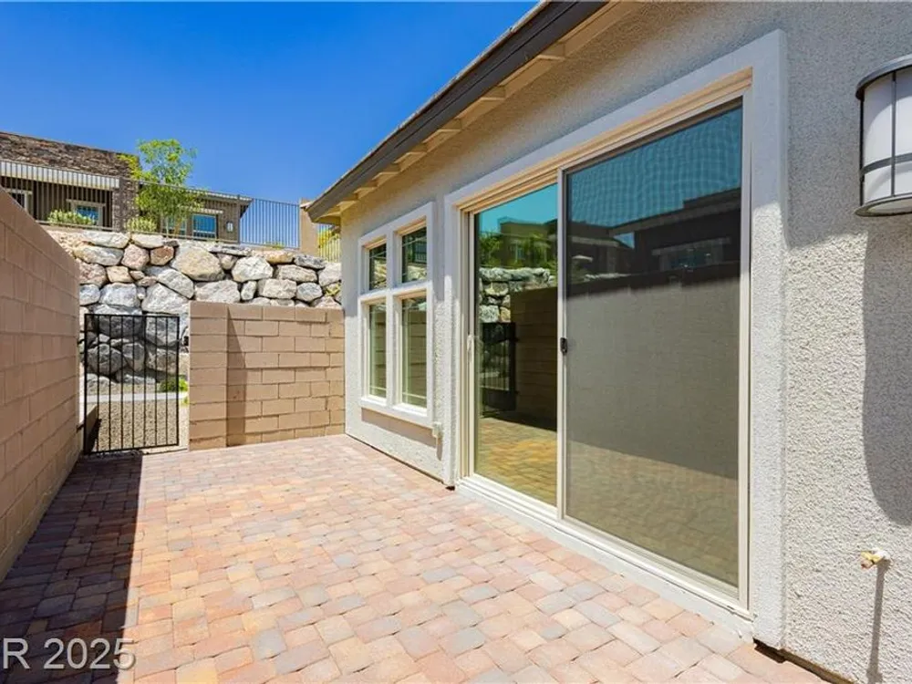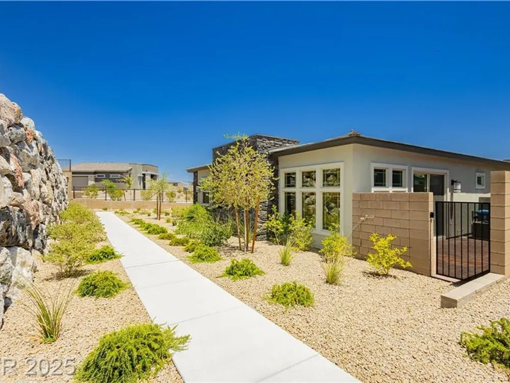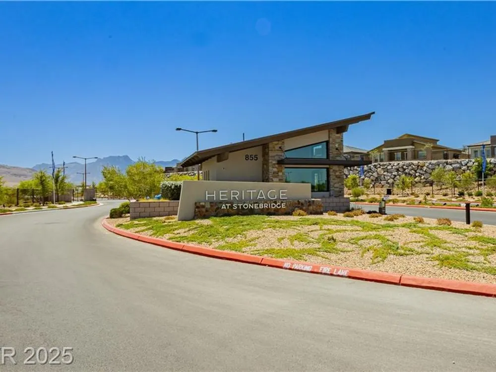 Beautiful upgraded home located on a corner lot in Heritage Heights, Summerlin's exclusive guard gated 55+ community. As you walk up to the home you notice the openness & the stunning curb appeal of the ONLY CORNER LOT currently available in this floorplan. Stone facia embellishes the front entrance of this modern designed home, 10 ft ceilings, luxury vinyl plank flooring, upgraded tile & carpet throughout, lots of natural light, Kitchen w/pendant & recessed lighting, quartz countertops, island, soft close cabinets, R/O system, upgraded built-in refrigerator, microwave, stove, & dishwasher, Living room w/custom stone wall, master bedroom w/custom farm sliding door that leads to master bathroom w/double sinks, walk-in shower, custom tile designed walls in all bathrooms & master walk-in closet, Spacious secondary bedroom, ceiling fans w/lights, window covering throughout, private paver patio w/BBQ stub, garage w/epoxy floors, designer tiled wall, water softener, auto opener, NO SID FEE!