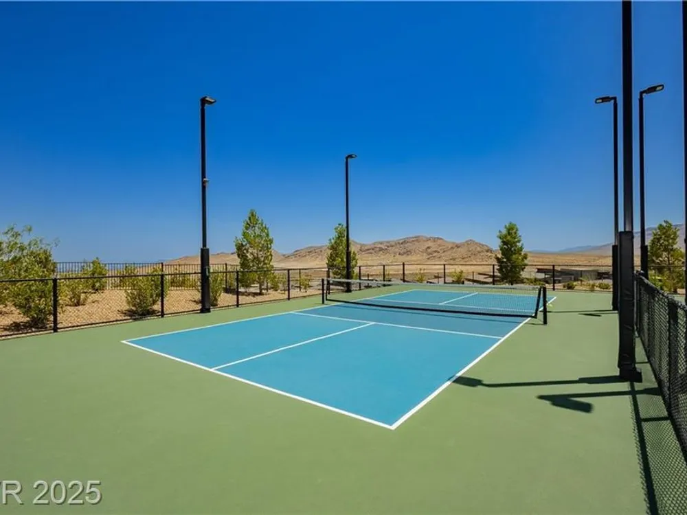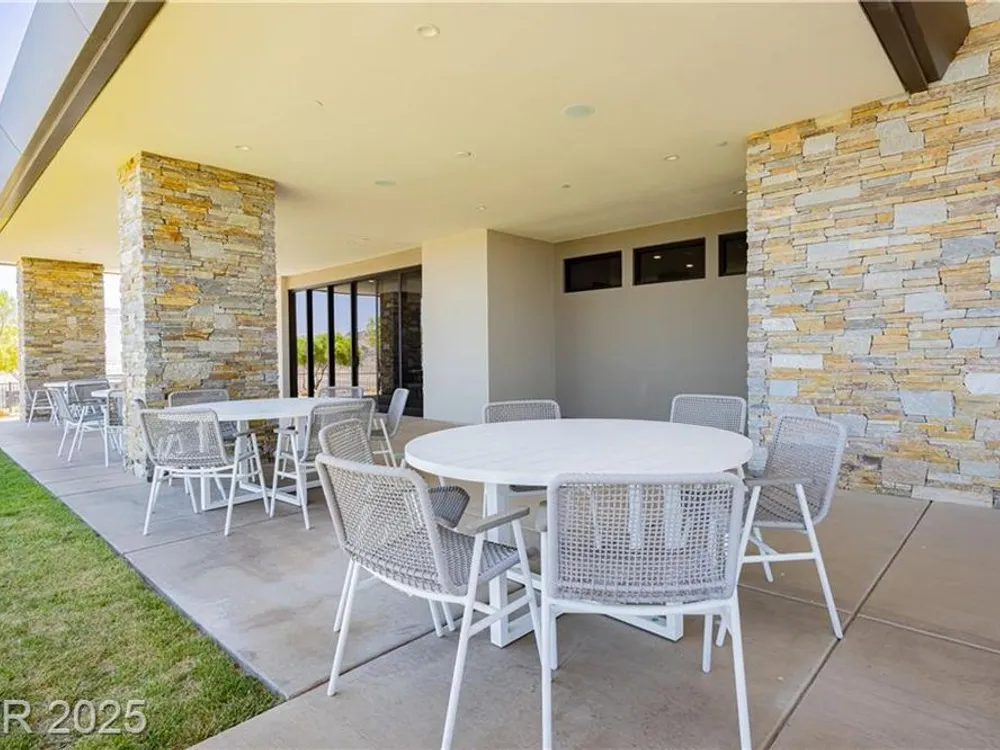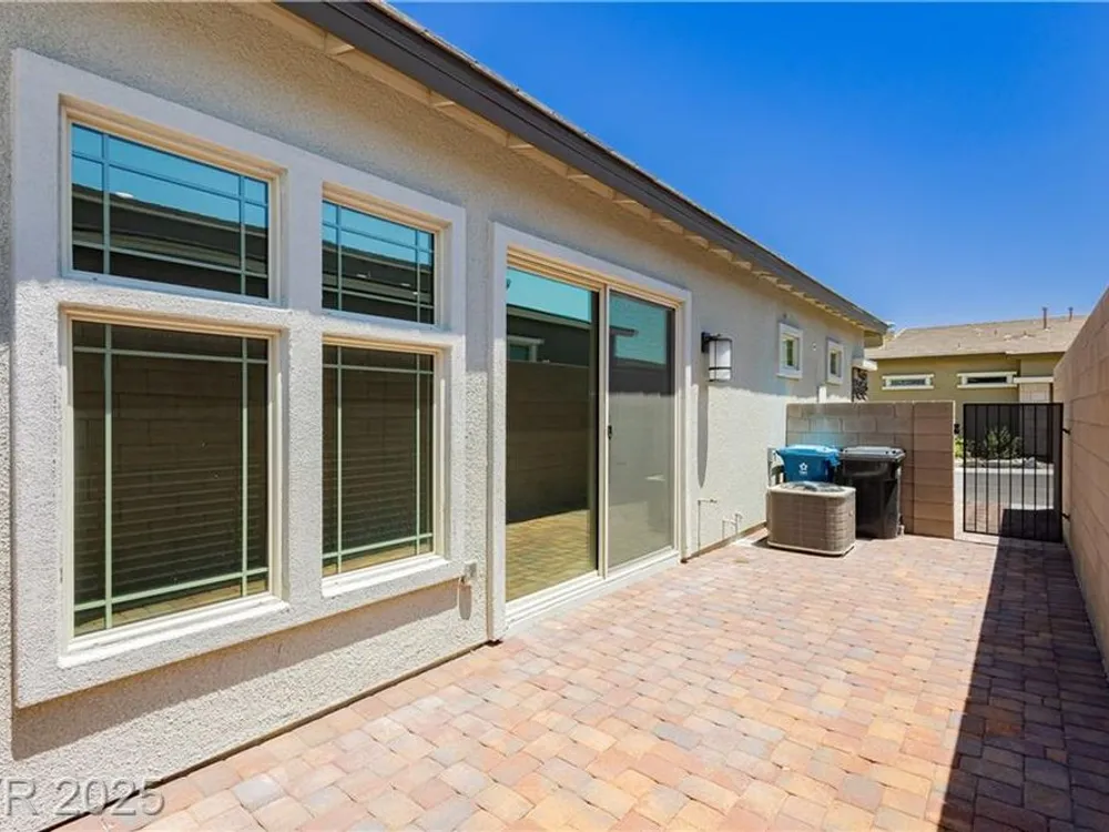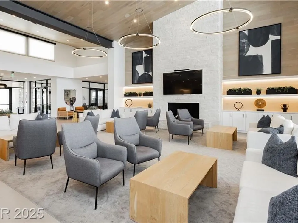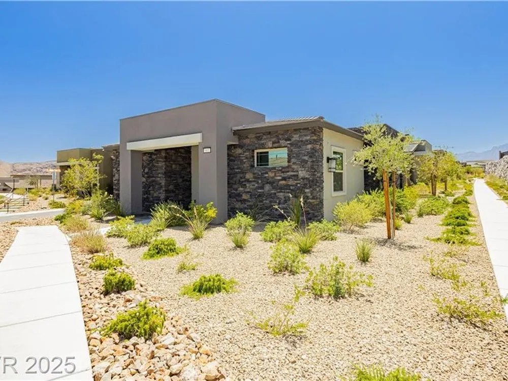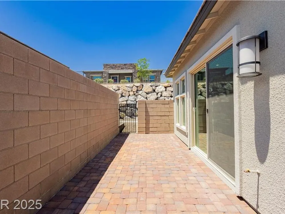 Beautiful upgraded home located on a corner lot in Heritage Heights, Summerlin's exclusive guard gated 55+ community. As you walk up to the home you notice the openness & the stunning curb appeal of the ONLY CORNER LOT currently available in this floorplan. Stone facia embellishes the front entrance of this modern designed home, 10 ft ceilings, luxury vinyl plank flooring, upgraded tile & carpet throughout, lots of natural light, Kitchen w/pendant & recessed lighting, quartz countertops, island, soft close cabinets, R/O system, upgraded built-in refrigerator, microwave, stove, & dishwasher, Living room w/custom stone wall, master bedroom w/custom farm sliding door that leads to master bathroom w/double sinks, walk-in shower, custom tile designed walls in all bathrooms & master walk-in closet, Spacious secondary bedroom, ceiling fans w/lights, window covering throughout, private paver patio w/BBQ stub, garage w/epoxy floors, designer tiled wall, water softener, auto opener, NO SID FEE!