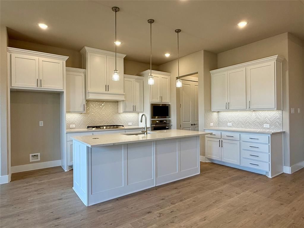 The Arabella is a beautiful open floor plan with plenty of room for your oversized furniture and allows you to easily & comfortably host friends and family. Stunning chef's dream kitchen featuring quartz island with breakfast bar, white cabinets, vent hood, upgraded white backsplash, pendant lighting, & butlers pantry & opens to the great room with tiered ceilings & gas log fire place & dining area. The primary suite is secluded for privacy with a spacious bath featuring large walk-in shower, his & her sinks & his & her closets. The second bedroom is the perfect guest room with ensuite bath. A den at the front of the home would make the perfect home office. Enjoy the convenience of an active adult lock & leave lifestyle. Ladera is located within minutes of Hwy. 360 & 287, convenient to Arlington's entertainment area. Premier Retirement Community for active 55 & above. Enjoy the activity center, pool, fitness center pavilion, pickle-ball court & walking trails. Amenities include pickleball, fitness center, a pool with grilling area, fire pit, walking trails, putting green & the HUB for social gatherings. THIS STUNNING HOME IS MOVE IN READY!
