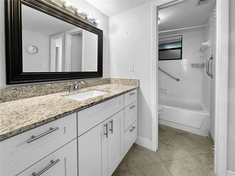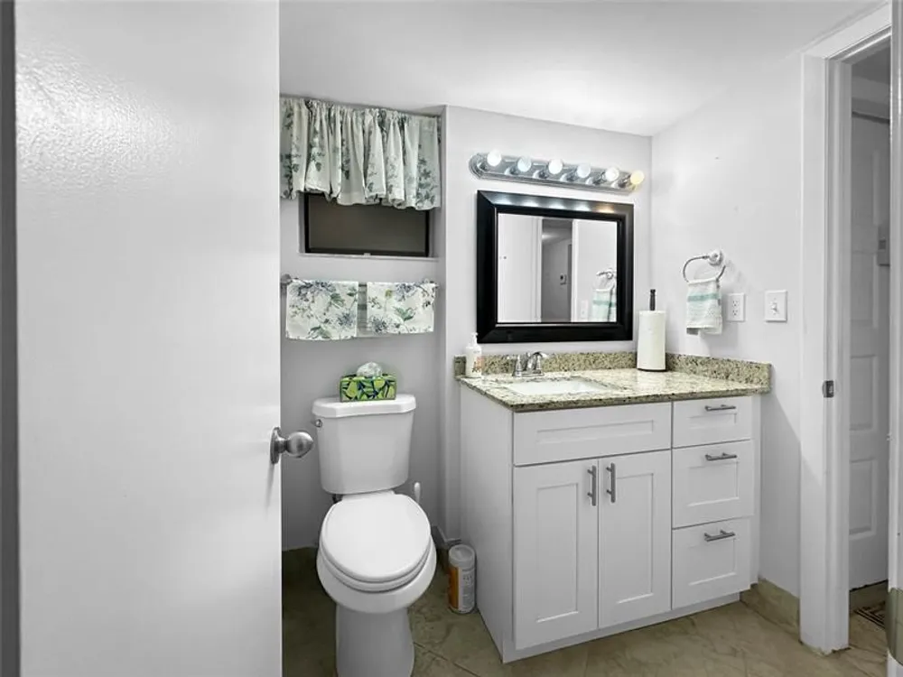 Beautifully maintained first-floor condo featuring granite countertops, new sink faucets in kitchen and baths, and in unit laundry. Enjoy a garden view front entrance and convenient access to parking via the sunroom. Private designated storage area included. Enjoy peace of mind with a 24-hour manned gatehouse and roving patrol. Colony Point has passed all inspections. Monthly maintenance covers water, sewer, cable with Showtime, and high-speed internet. Resort-style amenities include a pool with deck and tiki pavilions, lighted courts for tennis, pickleball, racquetball, and shuffleboard, 4 beach areas with BBQ grills, and a lighted path with fitness trail. Courtesy bus service available to local shopping. Experience the best of Florida living at Colony Point!