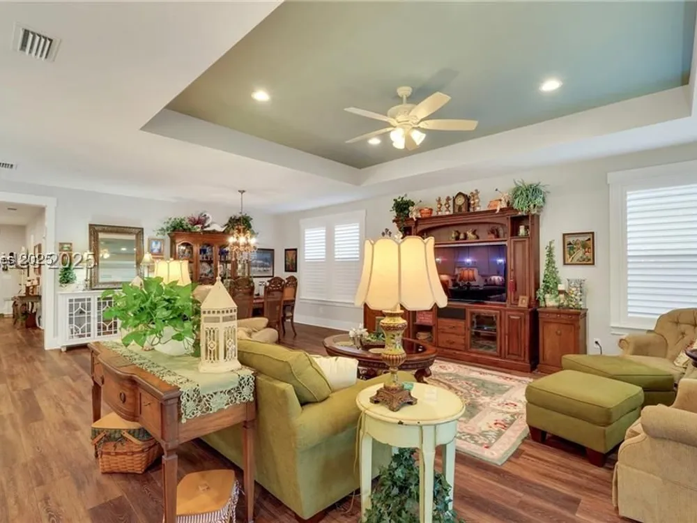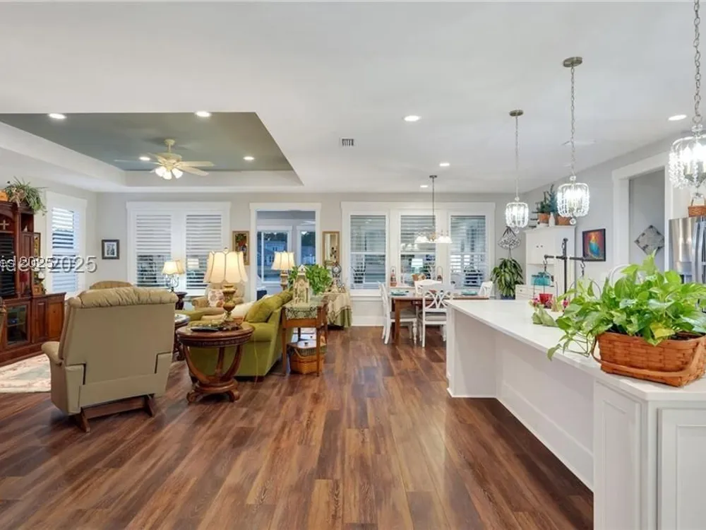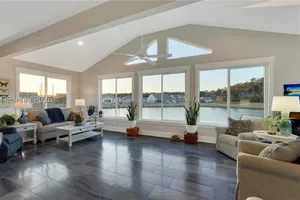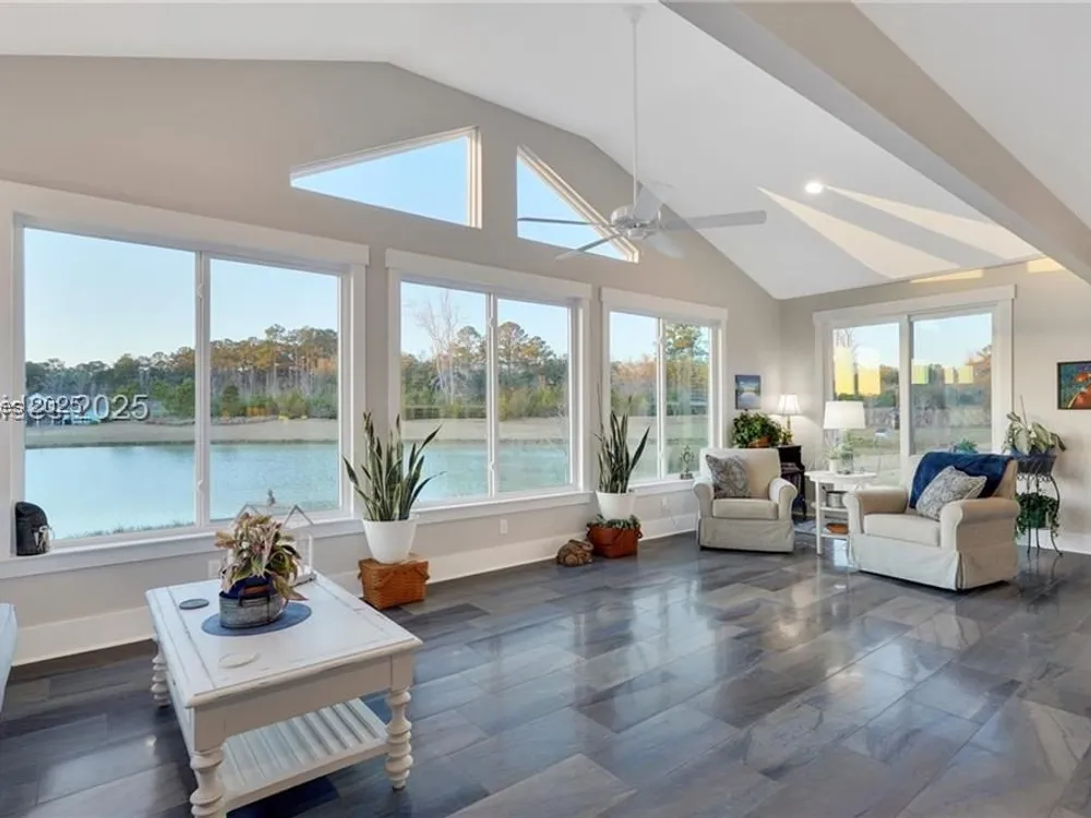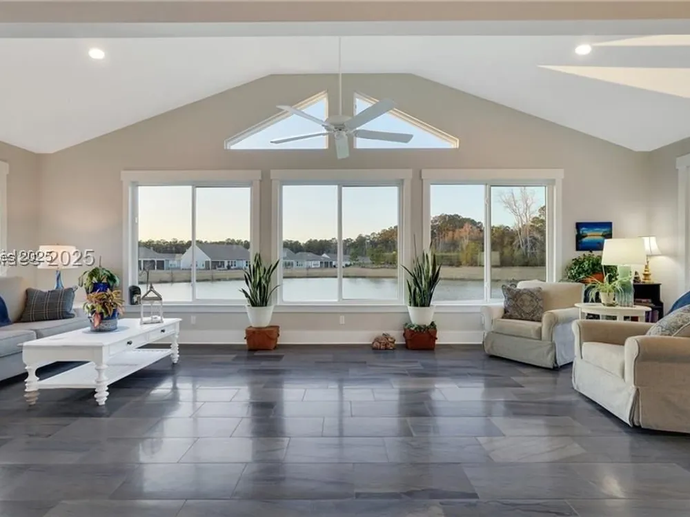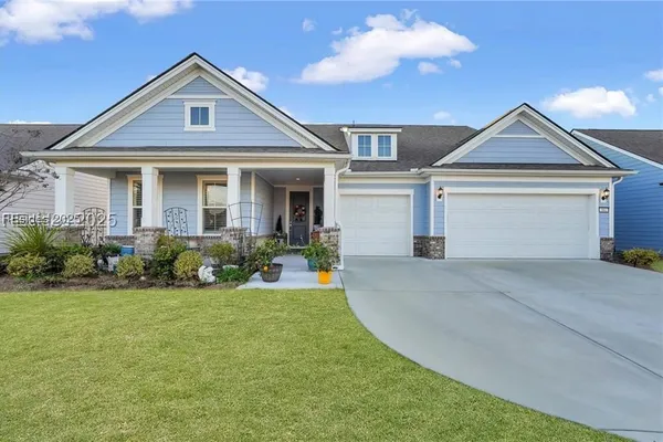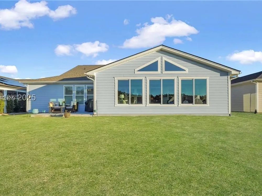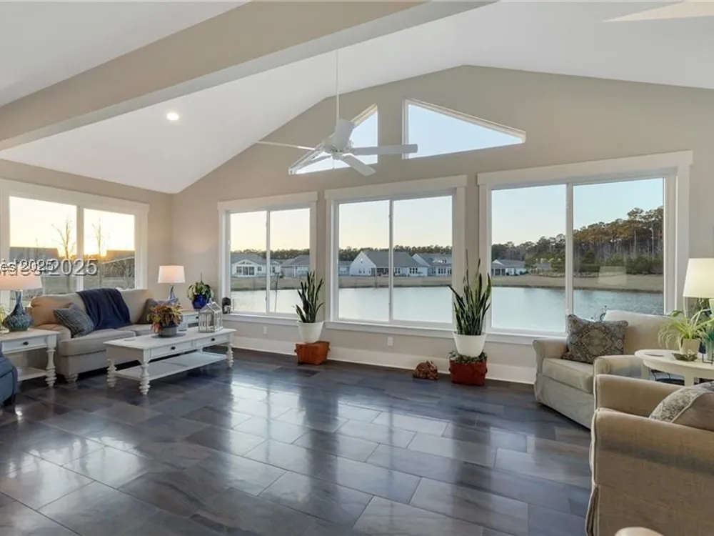 CHECK OUT THE 3D VIDEO YOUR! Exceptional Executive Home in Sun City"s Serenity Walk. Welcome to the largest home in Sun City, a sophisticated 4,408 sq ft Expanded Renown model, BETTER THAN NEW, built in 2022 and offering move-in ready luxury with Unparalleled upgrades! 4 Bedrooms 4.5 Bathrooms, A truly flexible layout featuring dual primary suites one on the main level and another upstairs plus a well-appointed inlaw/guest wing, perfect for extended stays. An open concept gourmet kitchen anchors the design, with high-end finishes and an Impressive Custom Carolina room addition. Vaulted ceilings and expansive picture windows bathe the interior in natural light and frame serene views of the Lagoon and woodland across the Lagoon. Italian Porcelain Flooring and luxury vinyl plank flow seamlessly throughout. Tray ceilings, plantation shutters, custom lighting, Professionally resanded / painted walls, and a custom pantry elevate both style and function. Additional Interior Highlights Featuring an inviting foyer, formal living and dining areas, a library/office, smooth ceilings throughout, and carbon monoxide detectors for peace of mind. A fully finished three-car garage offers easy entry and abundant storage. Interior includes a utility/mud room with tankless water heater and all major appliances are included. Beautifully Landscaped Outdoor Space Situated on a Manicured 0.18acre lot, the home features a charming front porch, rear patio for BBQ, etc, exterior irrigation/sprinkler system, and pristine rain gutters. Enjoy stunning lagoon and wooded views, ideal for relaxation and entertaining. Located in the 55+ designated Serenity Walk section of Sun City, the community offers top-tier amenities: bocce court, pickleball/tennis courts, golf course access, clubhouse, fitness center, pool, fire pit, dog park, restaurant, BBQ grilling area, and 24/7 guard security. Unbeatable Value Priced at $1,297,000, this home offers a Rare $294 per square foot value in Blufftons premier active adult community. Quick Highlights at a Glance Over: 4,400 sq ft with thoughtful floorplan designed for entertaining. Dual primary suites and adaptable guest/inlaw quarters Chefs kitchen with Beautiful Carolina room and high-end finishes. Lagoon and forest views through Expansive picture windows. EASY TO SHOW! Call or text for showing appt.