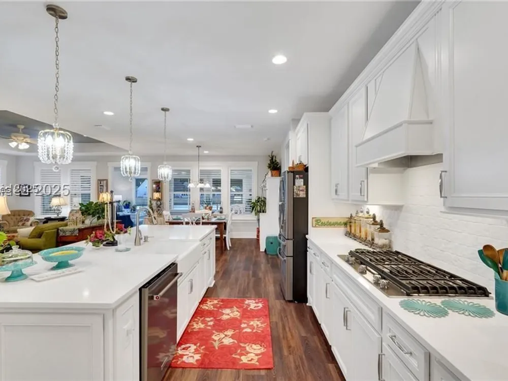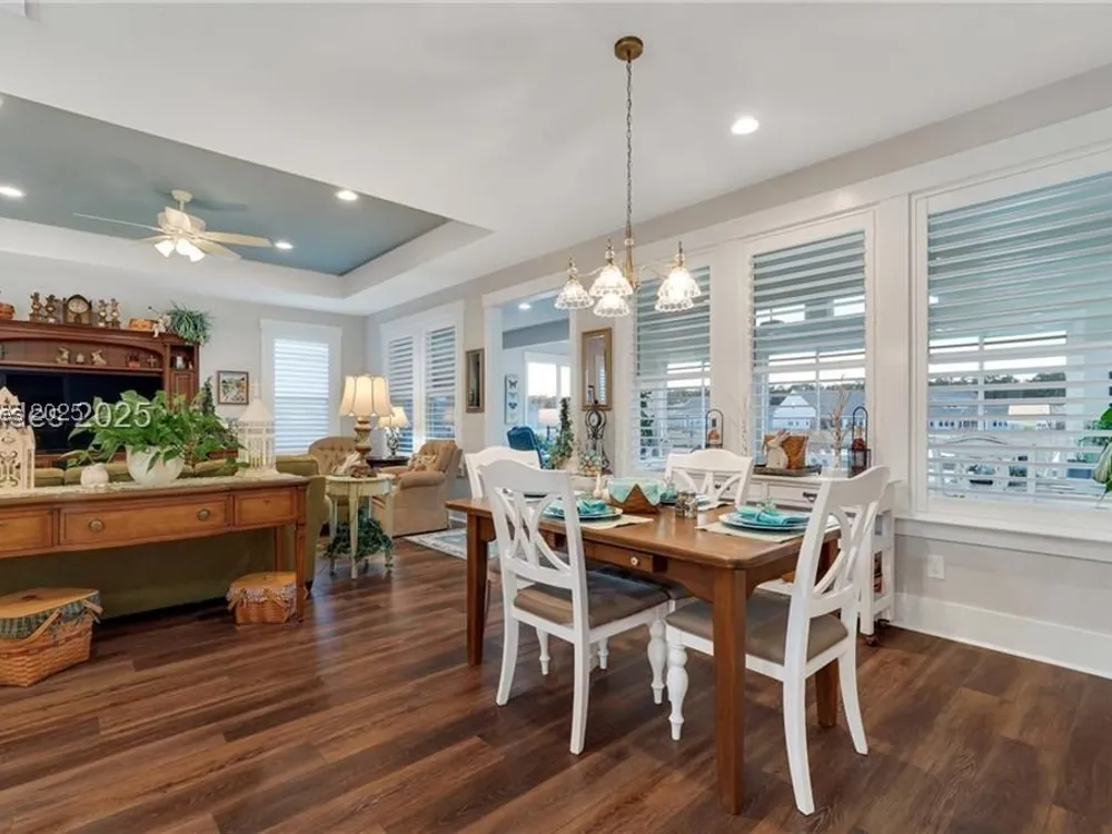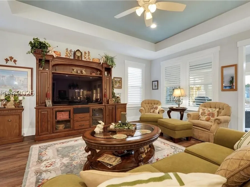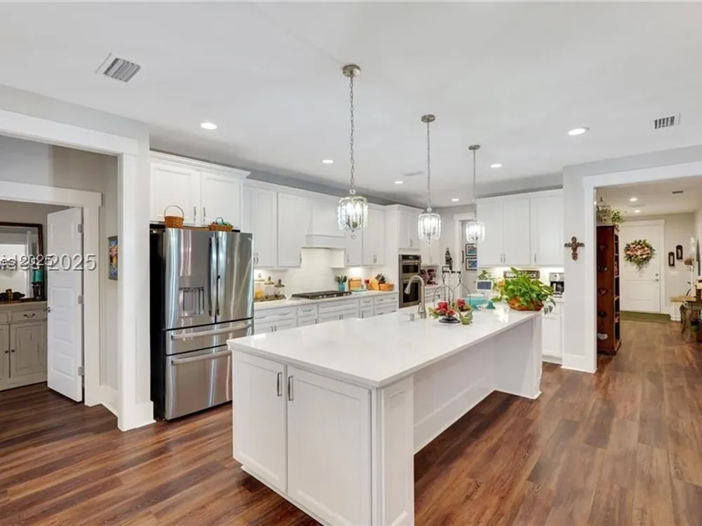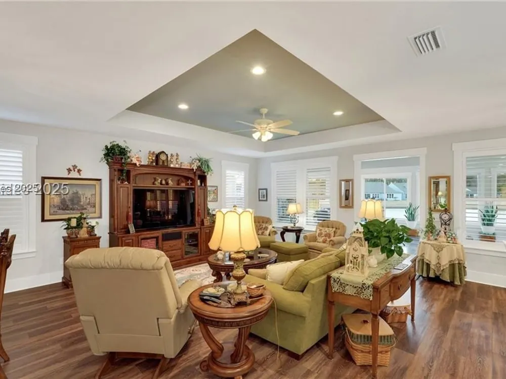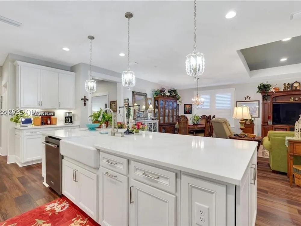 CHECK OUT THE 3D VIDEO YOUR! Exceptional Executive Home in Sun City"s Serenity Walk. Welcome to the largest home in Sun City, a sophisticated 4,408 sq ft Expanded Renown model, BETTER THAN NEW, built in 2022 and offering move-in ready luxury with Unparalleled upgrades! 4 Bedrooms 4.5 Bathrooms, A truly flexible layout featuring dual primary suites one on the main level and another upstairs plus a well-appointed inlaw/guest wing, perfect for extended stays. An open concept gourmet kitchen anchors the design, with high-end finishes and an Impressive Custom Carolina room addition. Vaulted ceilings and expansive picture windows bathe the interior in natural light and frame serene views of the Lagoon and woodland across the Lagoon. Italian Porcelain Flooring and luxury vinyl plank flow seamlessly throughout. Tray ceilings, plantation shutters, custom lighting, Professionally resanded / painted walls, and a custom pantry elevate both style and function. Additional Interior Highlights Featuring an inviting foyer, formal living and dining areas, a library/office, smooth ceilings throughout, and carbon monoxide detectors for peace of mind. A fully finished three-car garage offers easy entry and abundant storage. Interior includes a utility/mud room with tankless water heater and all major appliances are included. Beautifully Landscaped Outdoor Space Situated on a Manicured 0.18acre lot, the home features a charming front porch, rear patio for BBQ, etc, exterior irrigation/sprinkler system, and pristine rain gutters. Enjoy stunning lagoon and wooded views, ideal for relaxation and entertaining. Located in the 55+ designated Serenity Walk section of Sun City, the community offers top-tier amenities: bocce court, pickleball/tennis courts, golf course access, clubhouse, fitness center, pool, fire pit, dog park, restaurant, BBQ grilling area, and 24/7 guard security. Unbeatable Value Priced at $1,297,000, this home offers a Rare $294 per square foot value in Blufftons premier active adult community. Quick Highlights at a Glance Over: 4,400 sq ft with thoughtful floorplan designed for entertaining. Dual primary suites and adaptable guest/inlaw quarters Chefs kitchen with Beautiful Carolina room and high-end finishes. Lagoon and forest views through Expansive picture windows. EASY TO SHOW! Call or text for showing appt.