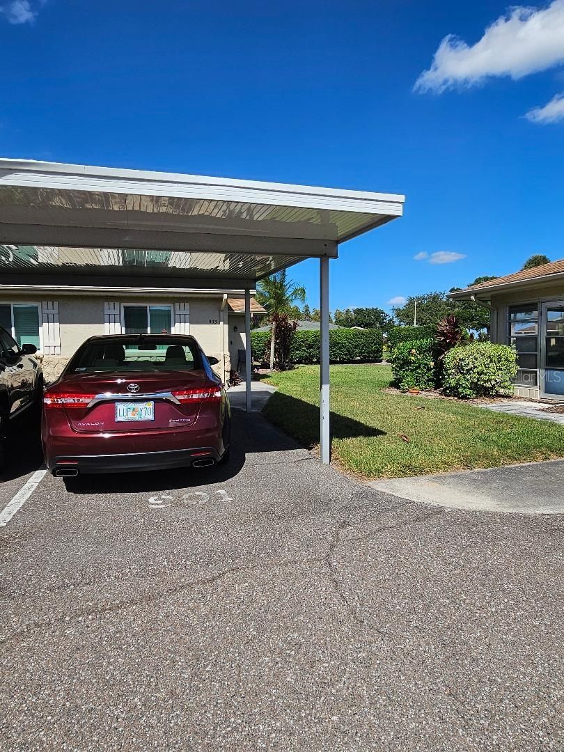 ENJOY LIFE AND THIS PROPERTY'S AMENTIES at one of the most desirable, active 55+ communities in the gated area of Sun City Center known as Kings Point. The Oxford floor plan features 2 bedrooms, 2 bathrooms, open kitchen with an island and stainless steel appliances, dining room, large living room, enclosed ( and under air) Florida Room, a large utility room , with covered parking and guest parking as well. Your inviting living room with plenty of space for guests has beautiful laminate floors and a lighted ceiling fan. The kitchen wall has been removed and opened up with an island , laminate flooring, pass through window, The dining room sits just outside the kitchen and fits a dining table with 4 chairs, laminate flooring. The enclosed Florida room is perfect for a den, wrap around windows with vertical blinds to let in the light, ceiling fan with lights and a side door to access the yard with its park-like setting. The laundry room has double doors to park your golf cart, houses a full size washer and dryer, pull down stairs to the attic ( for more storage), storage shelves and cabinets. Down the hallway the laminate floors flow and has an ample linen closet. The master bedroom is large enough to accommodate a king size bed, with a walk-in closet and extra storage chest, ceiling fan. large window with blinds and ensuite bathroom. The ensuite bathroom has a unique sink and vanity. The second bedroom is spacious enough for your guests with a built-in closet, large window with blinds and ceiling fan. The guest bathroom also has a unique sink and vanity, lights, mirrors, a tiled tub/shower, grab bars, and tile floor. Some of the interior of the home has been recently painted. All existing furniture is included. Kings Point boasts 2 clubhouses in this fabulous 55 and older community, each with an outdoor heated pool, indoor pool, exercise room, craft rooms, large screen TV, bar, food service, planned social activities and so much more. Maintenance includes building exterior, cable, internet, escrow reserves fund, ground maintenance, private road, recreational facilities, roof, security, water and sewer. It is centrally located to St Petersburg, Tampa, Sarasota and the beaches, and only a short hour drive to Orlando. Call today to see this beauty