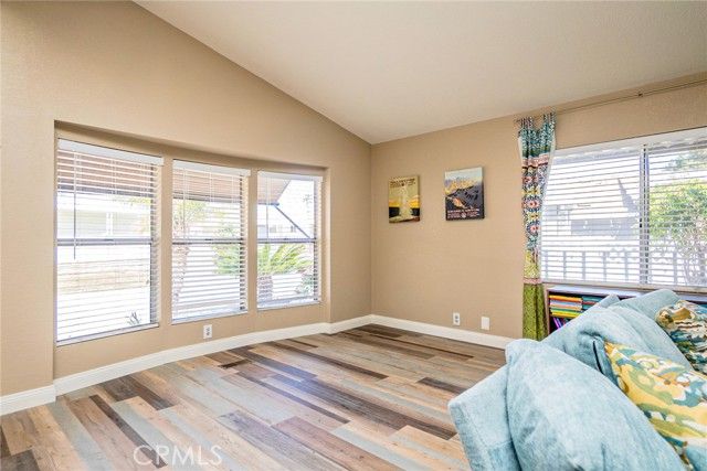 Welcome to Village Grove, one of Corona’s most sought-after senior communities! Nestled on a spacious corner lot, this property offers privacy, and energy efficiency with paid-off solar and thoughtful renovations throughout. This beautifully maintained 3-bedroom, 2-bathroom home offers 1,344 sq ft of comfortable living space on a generous 8,376 sq ft lot. Designed for active adults aged 55+, this residence combines privacy, convenience, and a vibrant community lifestyle. Step inside to find new laminate flooring throughout the open-concept layout. The updated kitchen boasts a new center island, modern cabinetry, and a seamless connection to the dining area—ideal for entertaining. The enclosed bonus room adds an additional 264 square feet of living space - perfect for an exercise room, craft room, or hobby room, and appreciate the peace of your enclosed backyard—perfect for relaxing or gardening. Additional highlights include a remodeled guest bathroom, new cabinets in the laundry room, newer HVAC 2022, a long driveway for ample parking, and the added benefit of land ownership—no space rent! Village Grove offers resort-style amenities including a pool, spa, gym, clubhouse, duck pond, scenic walking paths, and social events. Whether you’re downsizing, retiring, or simply looking for a low-maintenance, high-quality place to call home, this is the perfect blend of independence, tranquility, and community living.