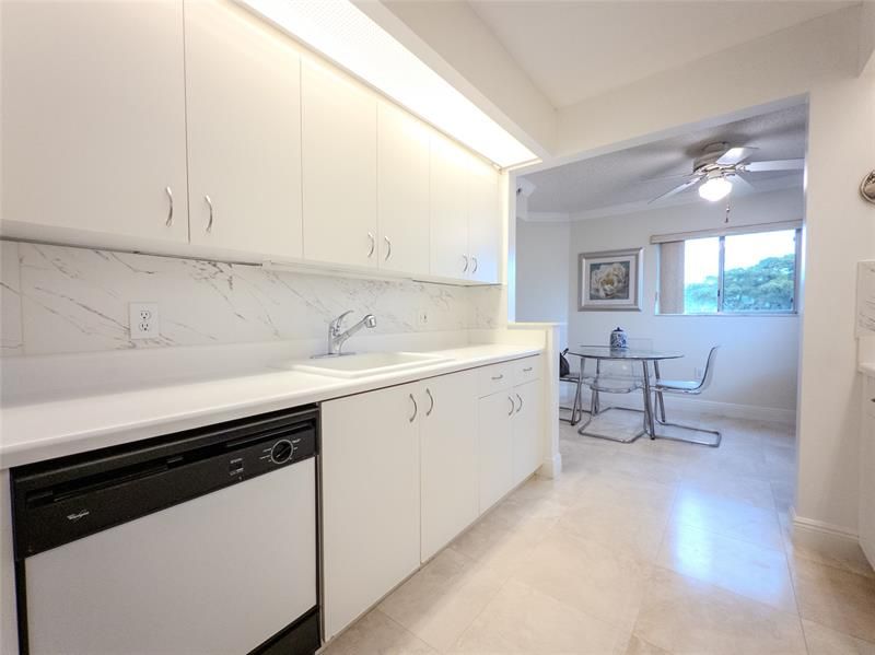 Spacious, sunlit 2-bed, 2-bath corner condo in the sought-after Suffolk II at Century Village! With over 1,500 sq ft, this lakefront unit features a split floorplan, in-unit washer & dryer. The enclosed balcony is perfect for relaxing with water views-stunning sunsets. Well equipped galley kitchen offers plenty of storage. Oversized primary suite with a large walk-in closet and shower. Enjoy maintenance-free living in a vibrant 55+ community with resort-style amenities—clubhouse, pools, golf inclued, tennis, theater, fitness center, restaurant, courtesy bus & more. Basic cable, sewer, water, reserves, roof, 24-hour security, exterior insurance included. No assessments. Prime location near shops, houses of worship, dining, medical offices! 650+ credit, No rentals 2 years. Furniture conveys