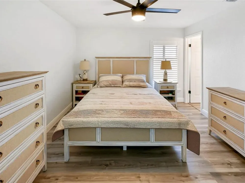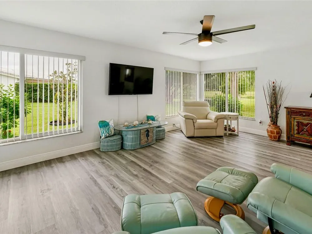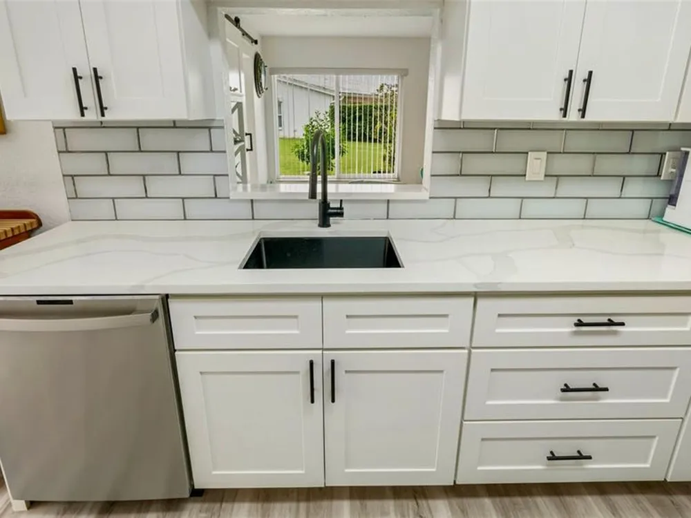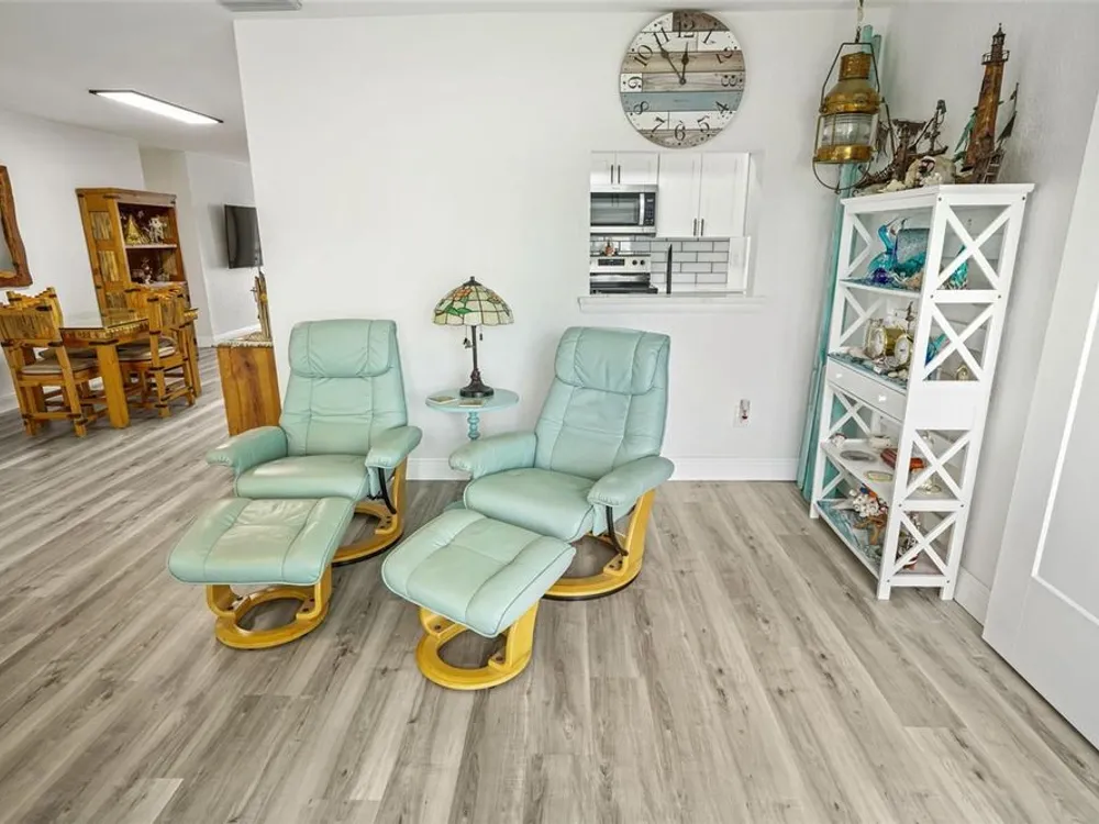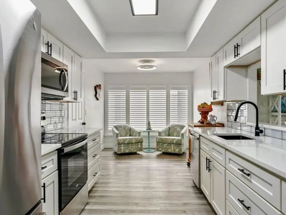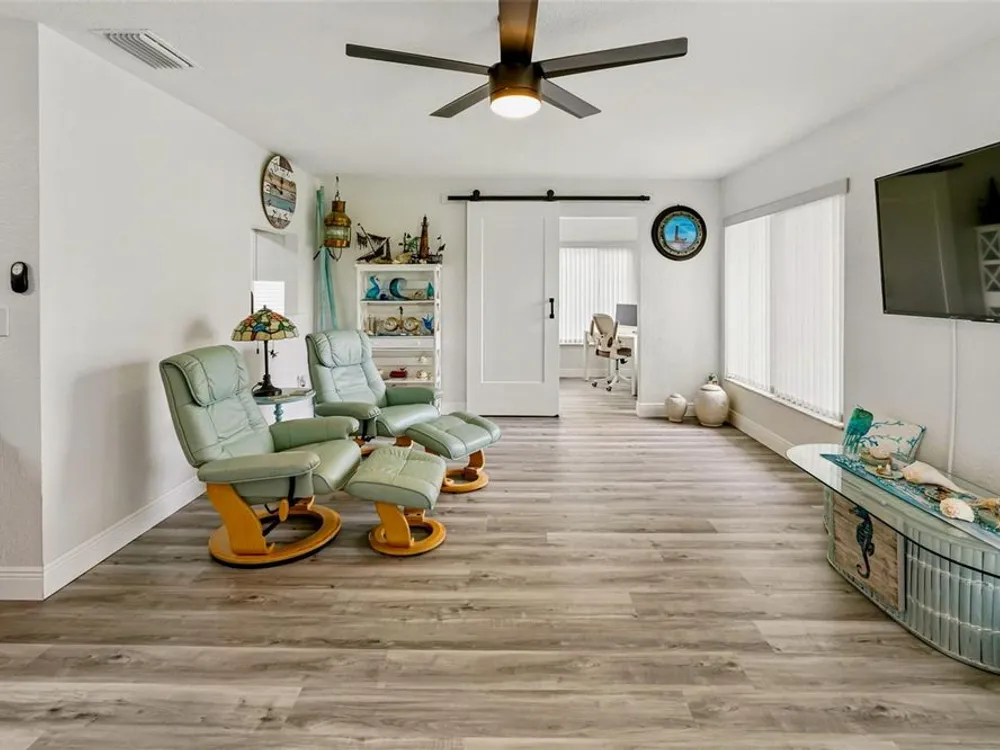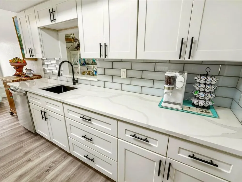 This is the one you have been looking for! A water view, beautifully, updated 2-bedroom, 2 bath, 1 car garage home with 1570 sq.ft. in the desirable 55+ community of Mainlands of Tamarac by the Gulf. As you walk up the stamped driveway and enter the covered, front porch, notice it is completely enclosed by a block fence with a new gate. The front door has a lovely oval glass inlay and complete with an outside storm door. The home has updated luxury, vinyl plank flooring, updated LED light fixtures, remote control fans, and double-pane windows. An open concept view from the living room continues through the dining room to the family room. New plantations shutters in the living room, kitchen and both bedrooms. The kitchen has been completely updated with white shaker, soft-close solid wood cabinets, stainless steel appliances, quartz counter-tops with a breakfast nook and a pass-through opening to the family room. The family room with new blinds, is a room with a view to the green space and pond. Off the family room is a barn-door with a step-down to the bonus room that can be used as an office, craft room, or extra guest room. No popcorn ceiling in this home, the ceiling and walls have been tastefully, texturized. The primary bedroom is on the backside of the home with a view of the pond and has its own, updated, private en-suite with a step-in shower. The guest bedroom is in the front of the home, near the updated, guest bathroom that has a tub/shower combo. The laundry area with a full-size washer and dryer is off the kitchen located in the over-sized 1 car garage, complete with a utility sink, epoxy flooring and a remote garage door opener. Mainlands Unit 5 residents enjoy access to a clubhouse with a heated pool, a variety of social activities such as dances, pancake breakfast, card games, and shuffleboard. Mainlands is a golf-cart community and is conveniently located just minutes from the Mainlands Public Golf Course, Mayor Park, Tampa International Airport, and downtown St. Petersburg. Don’t miss out on this gorgeous piece of paradise. Call now to schedule your private showing!