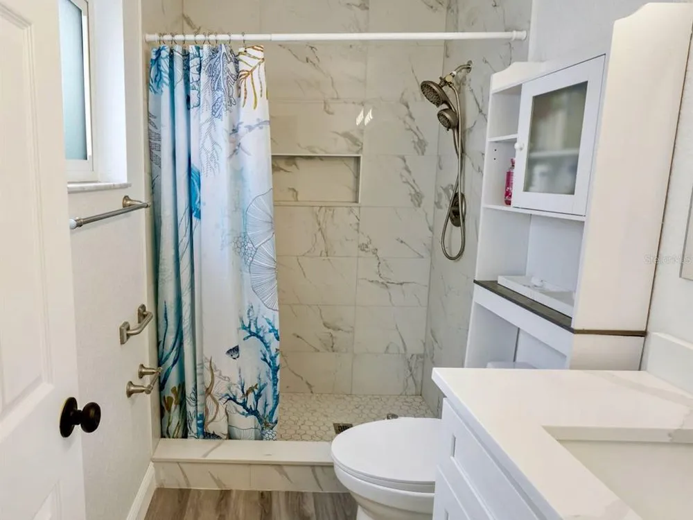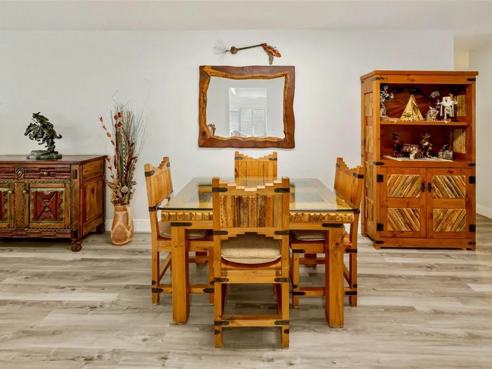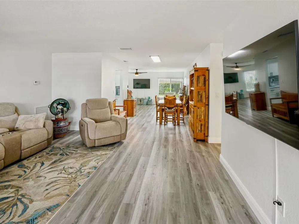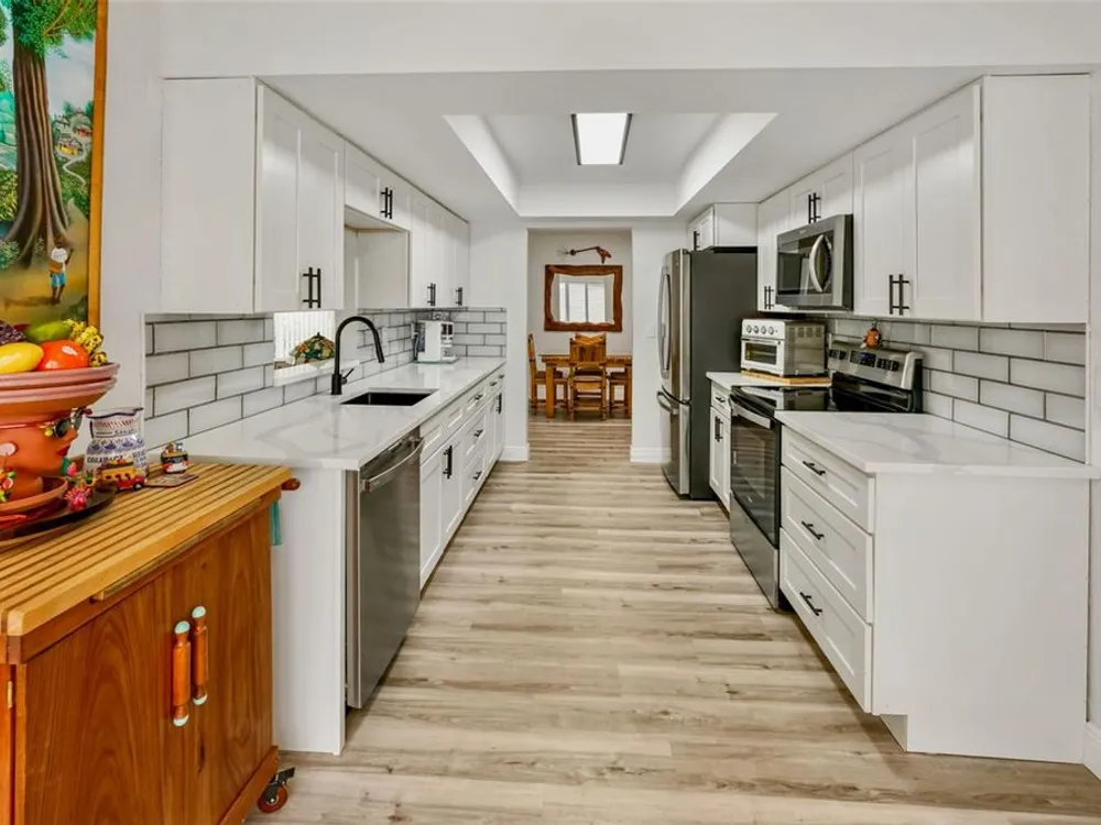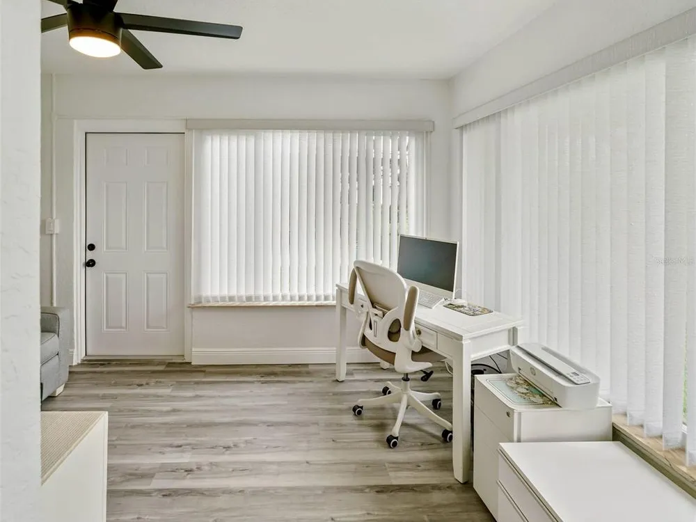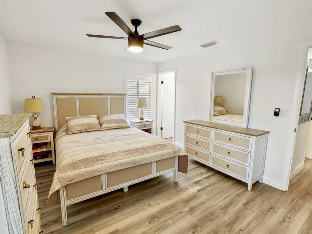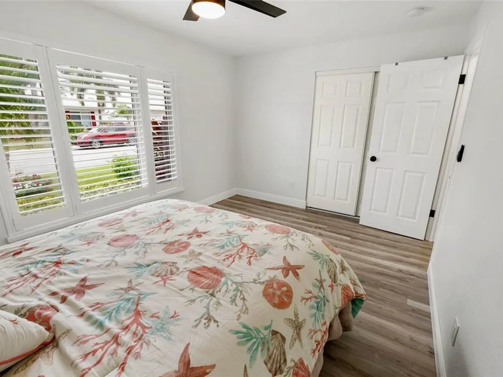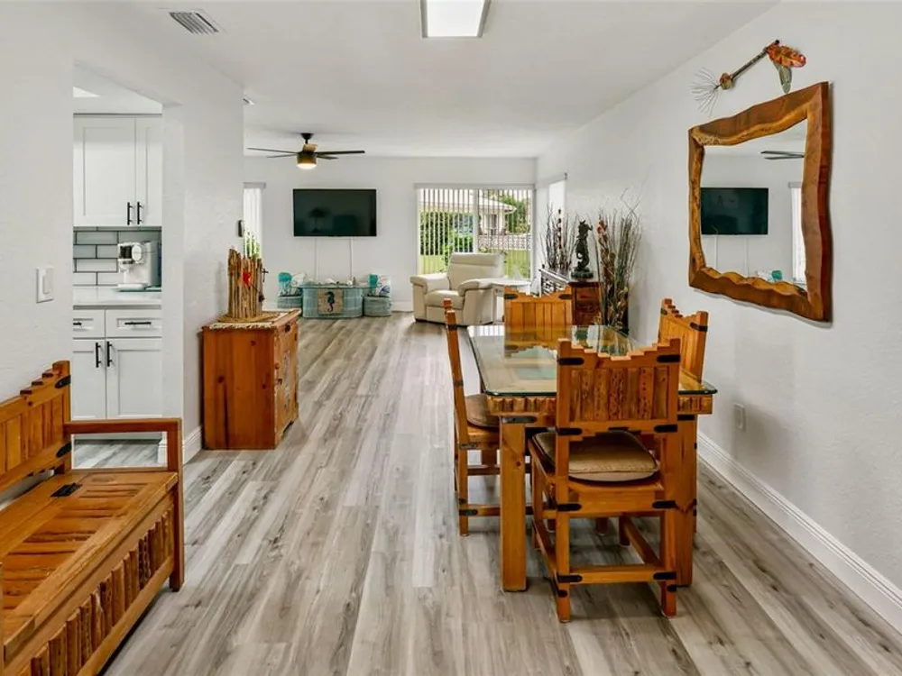 This is the one you have been looking for! A water view, beautifully, updated 2-bedroom, 2 bath, 1 car garage home with 1570 sq.ft. in the desirable 55+ community of Mainlands of Tamarac by the Gulf. As you walk up the stamped driveway and enter the covered, front porch, notice it is completely enclosed by a block fence with a new gate. The front door has a lovely oval glass inlay and complete with an outside storm door. The home has updated luxury, vinyl plank flooring, updated LED light fixtures, remote control fans, and double-pane windows. An open concept view from the living room continues through the dining room to the family room. New plantations shutters in the living room, kitchen and both bedrooms. The kitchen has been completely updated with white shaker, soft-close solid wood cabinets, stainless steel appliances, quartz counter-tops with a breakfast nook and a pass-through opening to the family room. The family room with new blinds, is a room with a view to the green space and pond. Off the family room is a barn-door with a step-down to the bonus room that can be used as an office, craft room, or extra guest room. No popcorn ceiling in this home, the ceiling and walls have been tastefully, texturized. The primary bedroom is on the backside of the home with a view of the pond and has its own, updated, private en-suite with a step-in shower. The guest bedroom is in the front of the home, near the updated, guest bathroom that has a tub/shower combo. The laundry area with a full-size washer and dryer is off the kitchen located in the over-sized 1 car garage, complete with a utility sink, epoxy flooring and a remote garage door opener. Mainlands Unit 5 residents enjoy access to a clubhouse with a heated pool, a variety of social activities such as dances, pancake breakfast, card games, and shuffleboard. Mainlands is a golf-cart community and is conveniently located just minutes from the Mainlands Public Golf Course, Mayor Park, Tampa International Airport, and downtown St. Petersburg. Don’t miss out on this gorgeous piece of paradise. Call now to schedule your private showing!