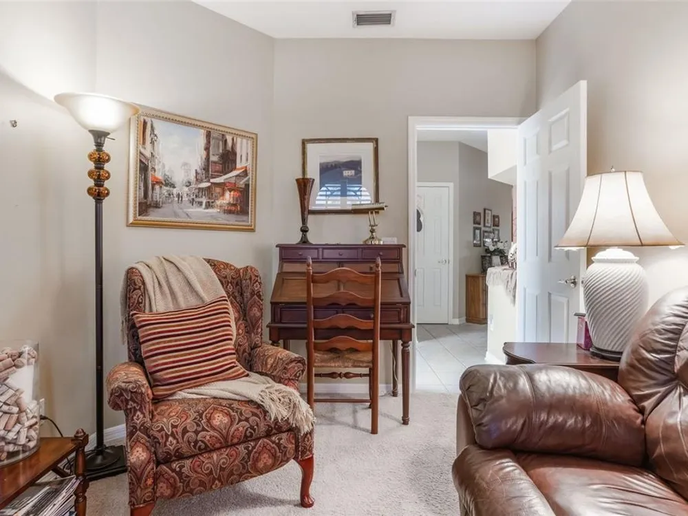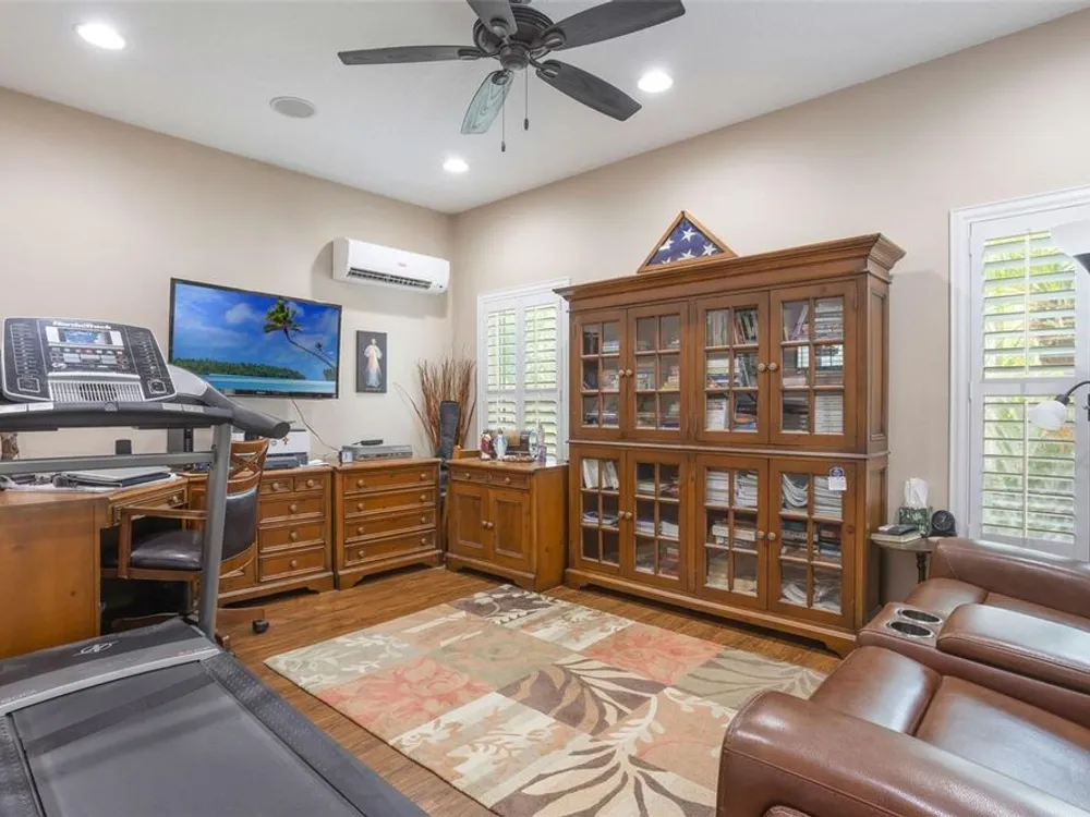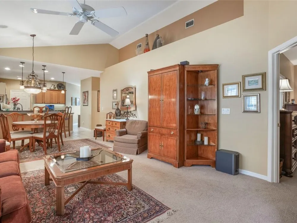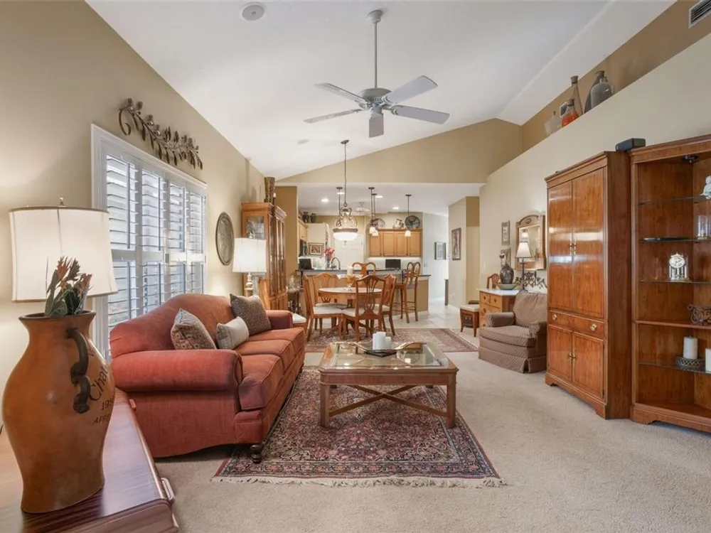 Beautiful Home in the Saint Andrews Area of the Country Club of Mount Dora. Pride of ownership is evident throughout this well-maintained home, located in the highly sought-after Saint Andrews neighborhood of the Country Club of Mount Dora. Offering nearly 1,900 square feet under heat and air, this residence boasts excellent curb appeal with an upgraded driveway, walkway, and a private courtyard entry. Inside, you'll find a spacious and open floor plan that seamlessly connects the kitchen, dining area, and living room—perfect for entertaining or relaxed Florida living. High ceilings, plantation shutters, elegant light fixtures, ceiling fans, and a built-in surround sound system enhance the home's style and comfort. A versatile 12x20 bonus room currently functions as a home office and gym. There is an additional Florida room. The primary suite features a large walk-in closet, dual sinks, a shower, and a luxurious jacuzzi tub. Step into the enclosed back porch for year-round enjoyment, conveniently located off both the bonus room and living room. Recent updates and upgrades include: • Hurricane screens (2024) for peace of mind • A/C system replaced in 2022 • Refrigerator (2021) and hot water heater (2014) • Newer garage door opener, reinforced garage doors, privacy fence, and gutters. Enjoy a low-maintenance lifestyle with lawn care included in the monthly HOA fee. Community amenities exclusive to Saint Andrews/St. Ives residents include a pool, fitness equipment, and private clubhouse. This is Florida living at its finest—come and see for yourself what makes this home so special!