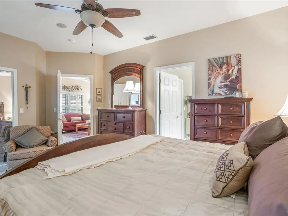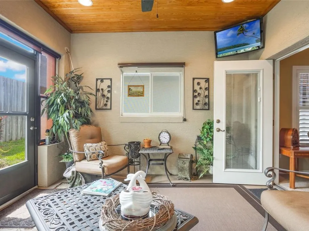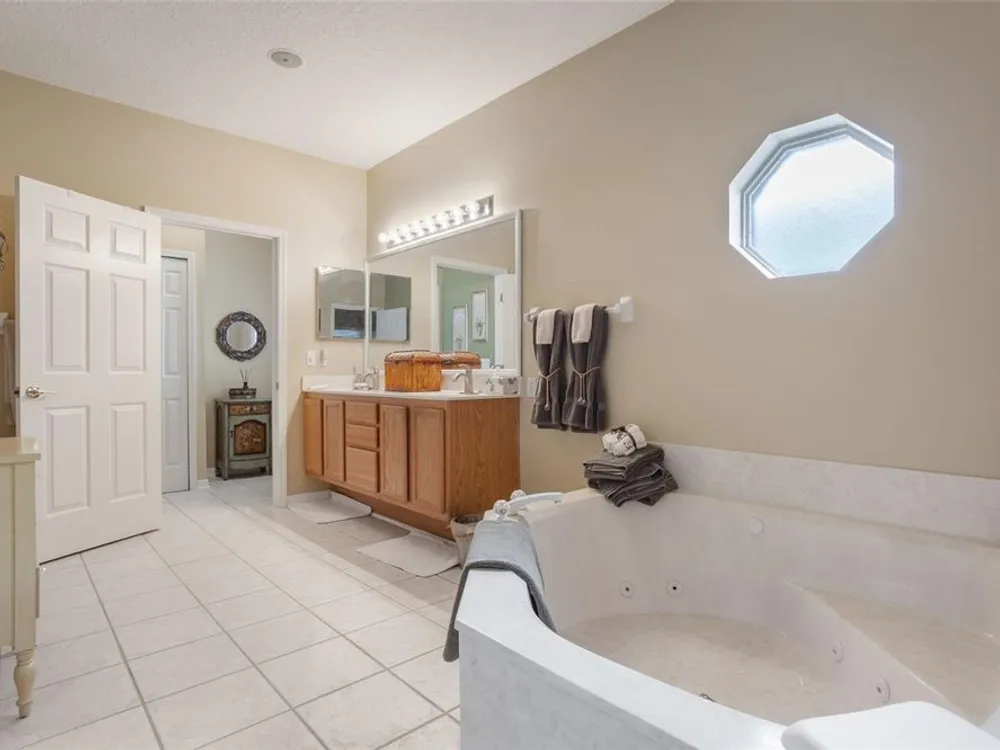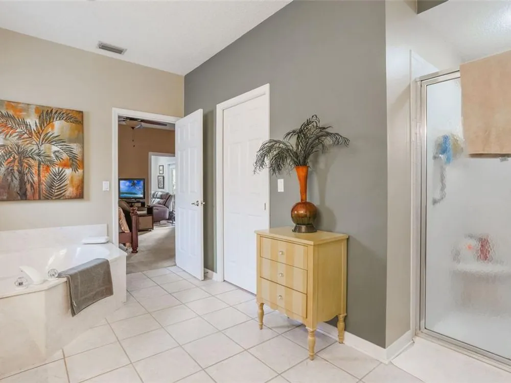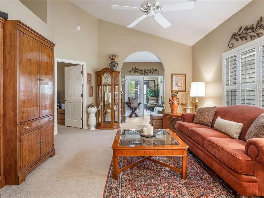 Beautiful Home in the Saint Andrews Area of the Country Club of Mount Dora. Pride of ownership is evident throughout this well-maintained home, located in the highly sought-after Saint Andrews neighborhood of the Country Club of Mount Dora. Offering nearly 1,900 square feet under heat and air, this residence boasts excellent curb appeal with an upgraded driveway, walkway, and a private courtyard entry. Inside, you'll find a spacious and open floor plan that seamlessly connects the kitchen, dining area, and living room—perfect for entertaining or relaxed Florida living. High ceilings, plantation shutters, elegant light fixtures, ceiling fans, and a built-in surround sound system enhance the home's style and comfort. A versatile 12x20 bonus room currently functions as a home office and gym. There is an additional Florida room. The primary suite features a large walk-in closet, dual sinks, a shower, and a luxurious jacuzzi tub. Step into the enclosed back porch for year-round enjoyment, conveniently located off both the bonus room and living room. Recent updates and upgrades include: • Hurricane screens (2024) for peace of mind • A/C system replaced in 2022 • Refrigerator (2021) and hot water heater (2014) • Newer garage door opener, reinforced garage doors, privacy fence, and gutters. Enjoy a low-maintenance lifestyle with lawn care included in the monthly HOA fee. Community amenities exclusive to Saint Andrews/St. Ives residents include a pool, fitness equipment, and private clubhouse. This is Florida living at its finest—come and see for yourself what makes this home so special!