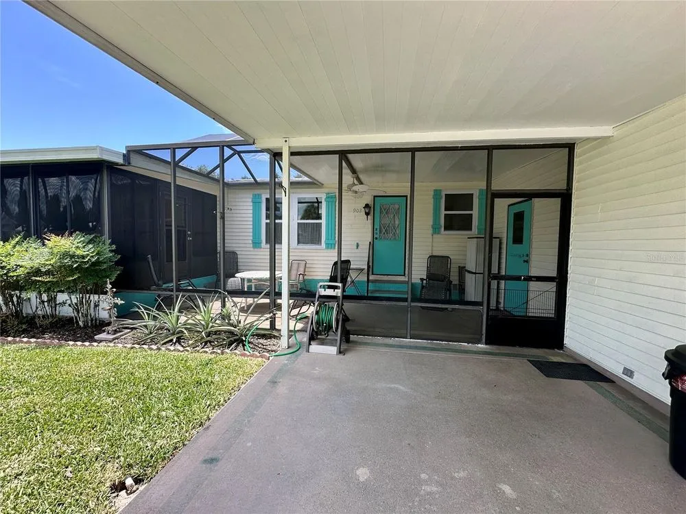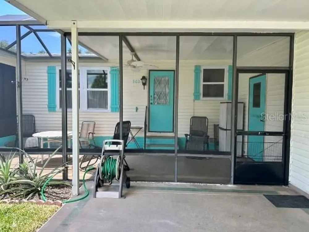 Welcome home to this charming furnished/turnkey 1098sq/ft 2-bedroom 1.5 bath home on a desirable corner lot in The Villages Historic District. This home has just the right amount of room for easy living and entertaining, while remaining low-maintenance and affordable. The exterior of the home is equipped with a golf cart garage, laundry room and oversized outdoor screened porch/patio. Upon entering the home, you will be greeted by a bright and inviting open floor plan that connects the living, dining, and kitchen areas, creating a spacious and functional layout. The kitchen comes complete with everything needed and plenty of cabinet space for both kitchen amenities and food storage. Both bedrooms have ample space and storage, with the guest room features a convenient half-bath and large closet. The full bathroom is thoughtfully designed for daily use and equipped with dual access from the main room and master bedroom. Outside, the corner lot features added outdoor space, perfect for gardening, relaxing, or enjoying the beautiful Florida weather. The front screened porch has ample room to enjoy the bug-free quiet cooler evenings with more than enough room for entertaining neighbors, friends, and family. The property’s location provides easy access Spanish Springs Town Square and the many amenities The Villages has, including golf courses, shopping, dining, recreational opportunities, and Dr offices. This delightful home is an affordable and low cost opportunity to live in The Villages while enjoying added privacy and charm with its corner lot. Make this beautiful home yours today!