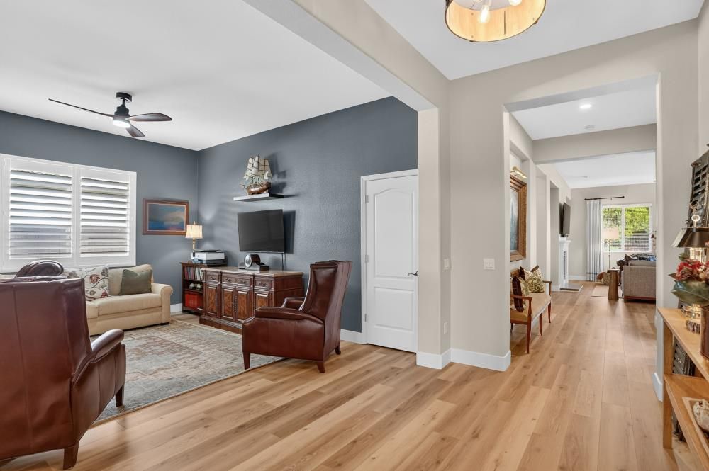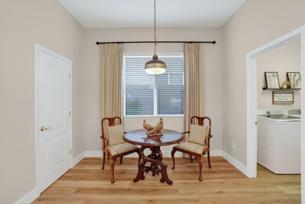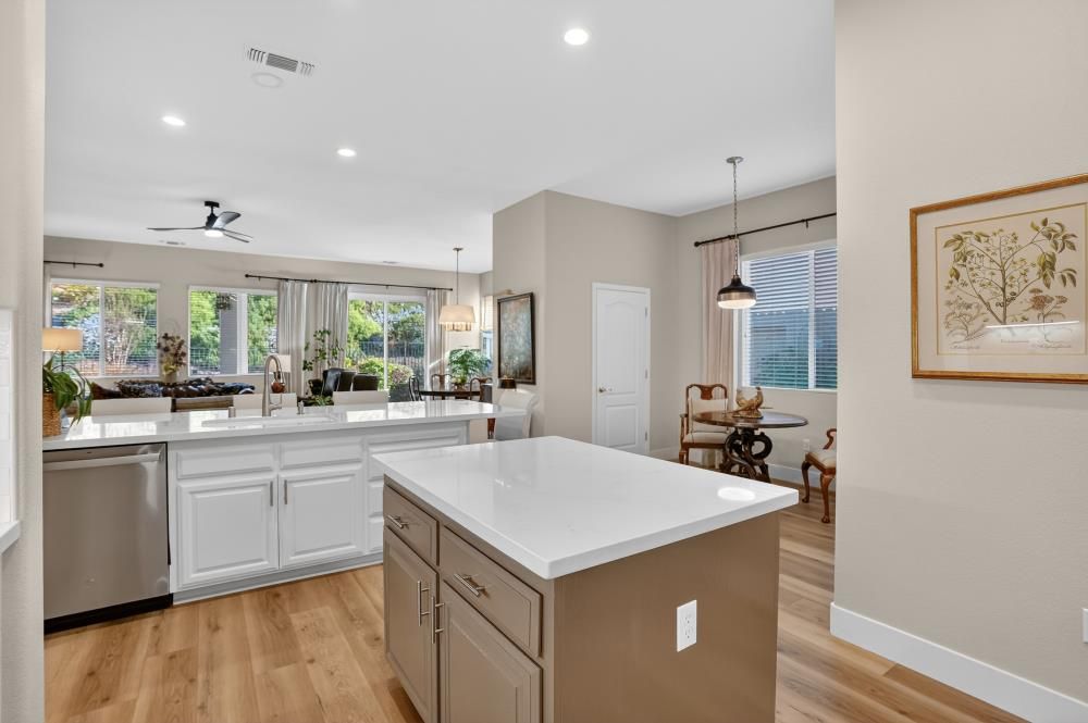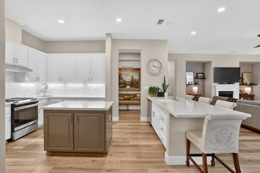 Welcome to this beautifully upgraded home Lake Tahoe model located in the desirable 55+ Four Seasons community. Thoughtfully updated with both style and functionality in mind, this residence offers a move-in-ready opportunity for comfortable, modern living with low maintenance landscaping. The kitchen has been completely refreshed with new quartz countertops and a reconfigured raised counter that now features an open center islandperfect for entertaining and everyday use. New kitchen appliances, pull-out drawers, and built-in knife storage add convenience and efficiency to the space. Updated light fixtures throughout the home enhance its bright, welcoming atmosphere. The living and dining areas are accented by custom wall coverings, creating an elegant and refined ambiance. The interior and exterior have been freshly painted, providing a clean, cohesive look throughout. New laminate flooring, chosen for its superior water protection and durability, extends through the main living areas, while the bedrooms feature plush new carpet for added comfort. Four Seasons at El Dorado Hills is a vibrant, resort-style community with a grand clubhouse, pool, fitness center, tennis, pickle ball and bocce courts, walking trails, community garden + vineyard, and an active social calendar, truly an engaging, entertaining place to enjoy life.