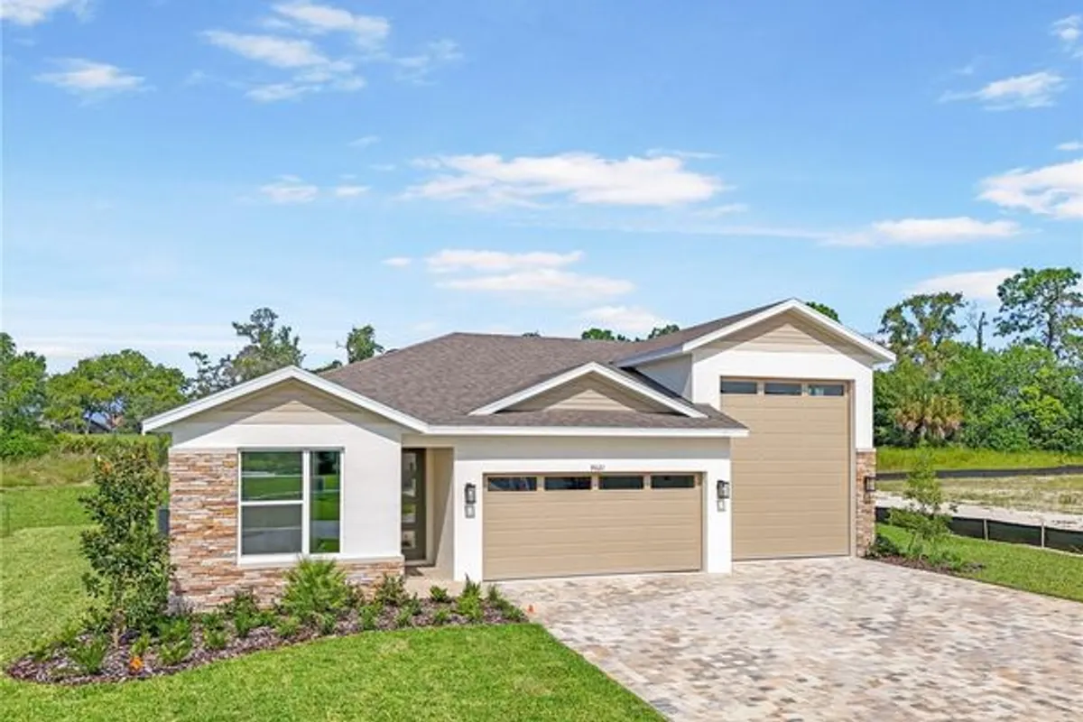 Welcome to 9021 Players Drive, This Bronze model offers approximately 1,730 square feet of living space with 3 bedrooms and 2 bathrooms. located in the gated community of Glen Lakes in Brooksville, just outside Tampa. The home features an expanded 2-car garage along with a 46 ft Long RV Ultra Garage, ideal for storing recreational vehicles, boats, or additional vehicles. Open floor plan, wood-look tile, soft-close cabinets, quartz countertops, 8 ft tall doors !!, and a large center island. Plus much more!!! Come see us at our models to pick out your new home. Located in one of Florida’s premier communities, Glen Lakes offers resort-style amenities including golf, clubhouse, fitness center, pool, dining, tennis, and pickleball and more. There is NO CDD and the HOA is $300/month but includes a Spectrum internet package. Virtually Staged Photos.