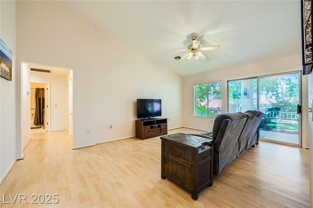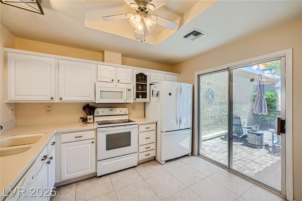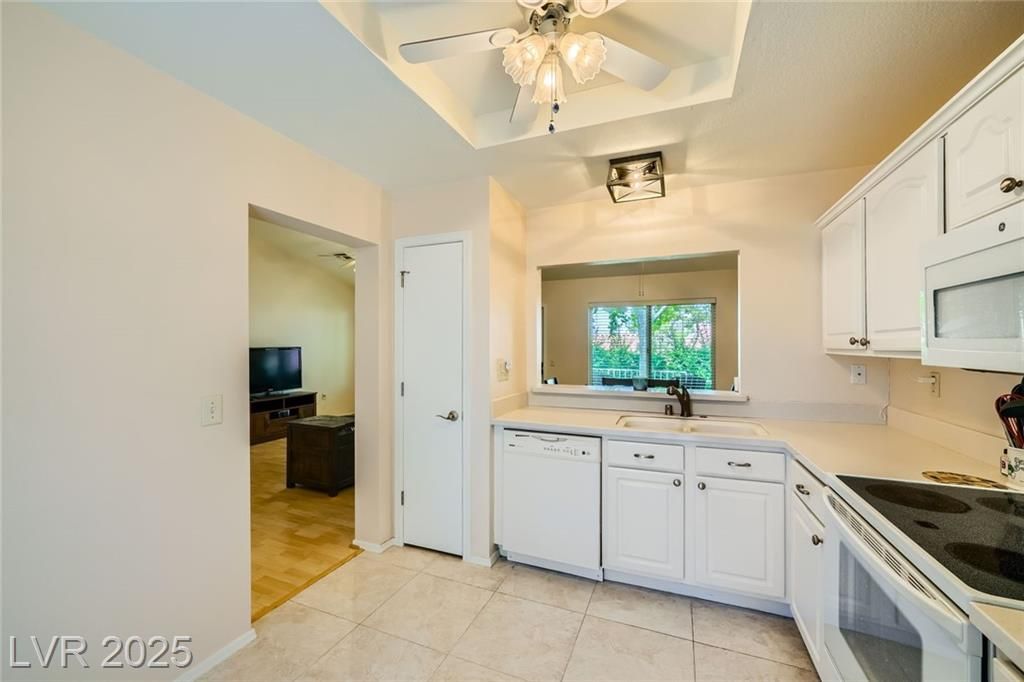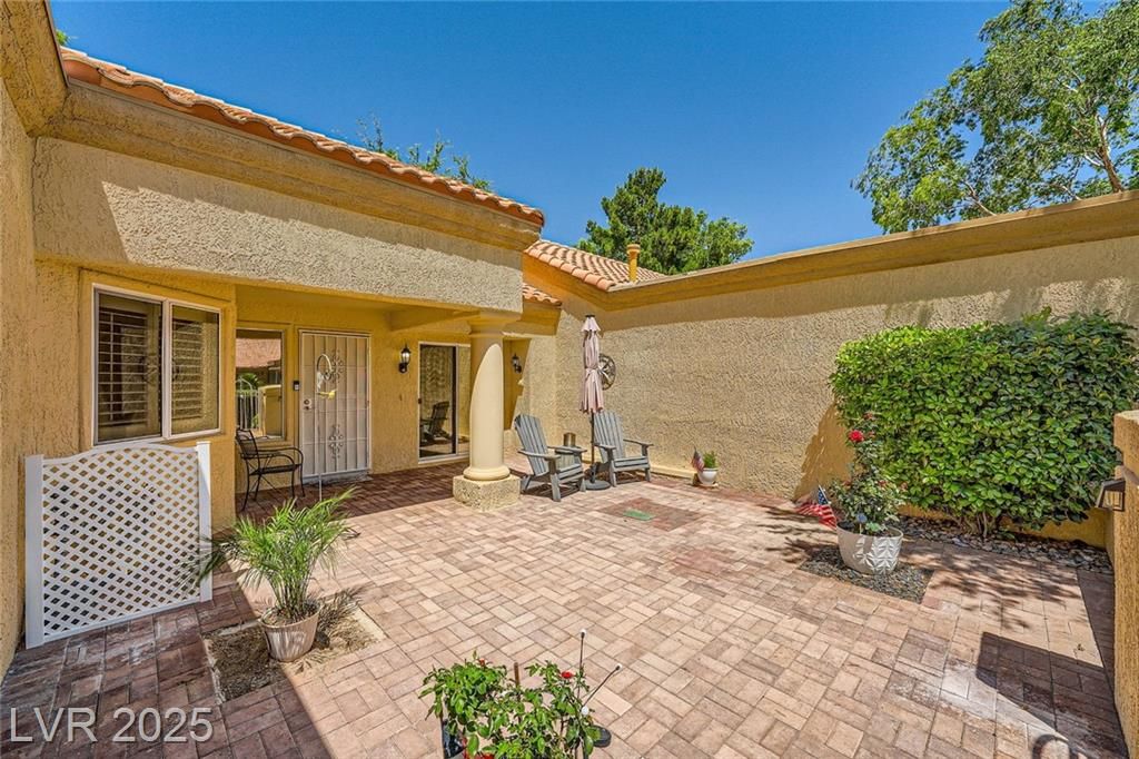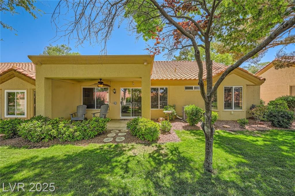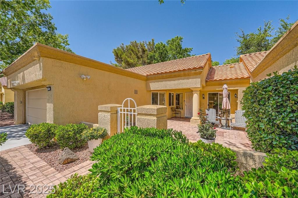 SUN CITY SUMMERLIN 55+ COMMUNITY TOWNHOME 1 STORY 2 BEDROOMS, 2 BATHROOMS, NEW INTERIOR PAINT, SHUTTERS, AND BLINDS (1.5 YEARS OLD), TRANQUIL COURTYARD, FORMAL LIVING ROOM, OPEN CONCEPT WITH VAULTED CEILINGS, GOURMET KITCHEN WITH BUILT-IN MICROWAVE AND BREAKFAST BAR/COUNTER, SECOND BEDROOM DOWNSTAIRS NEXT TO A FULL BATH – PERFECT FOR GUESTS OR MULTI-GENERATIONAL LIVING, SPACIOUS PRIMARY SUITE WITH ¾ BATH AND MAKE-UP TABLE, CEILING FANS IN ALL ROOMS, PRIVATE BACKYARD WITH COVERED PATIO AND ARTIFICIAL TURF, TINTED WINDOWS, TILE FLOORS THROUGHOUT – NO CARPET, LOW MAINTENANCE, 2-CAR GARAGE WITH BUILT-IN CABINETS AND WATER SOFTENER LOOP, COMMUNITY FEATURES POOL, SPA, PICKLEBALL, TENNIS, COUNTRY CLUB CLUBHOUSE WITH GOLF, MINI-GOLF, AND GYM, CONVENIENTLY LOCATED NEAR SHOPPING, DINING, ENTERTAINMENT, AND FREEWAY ACCESS.