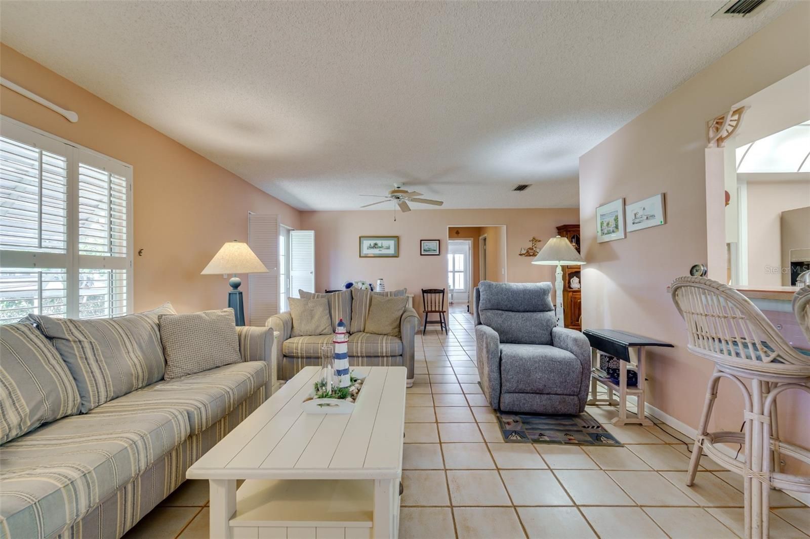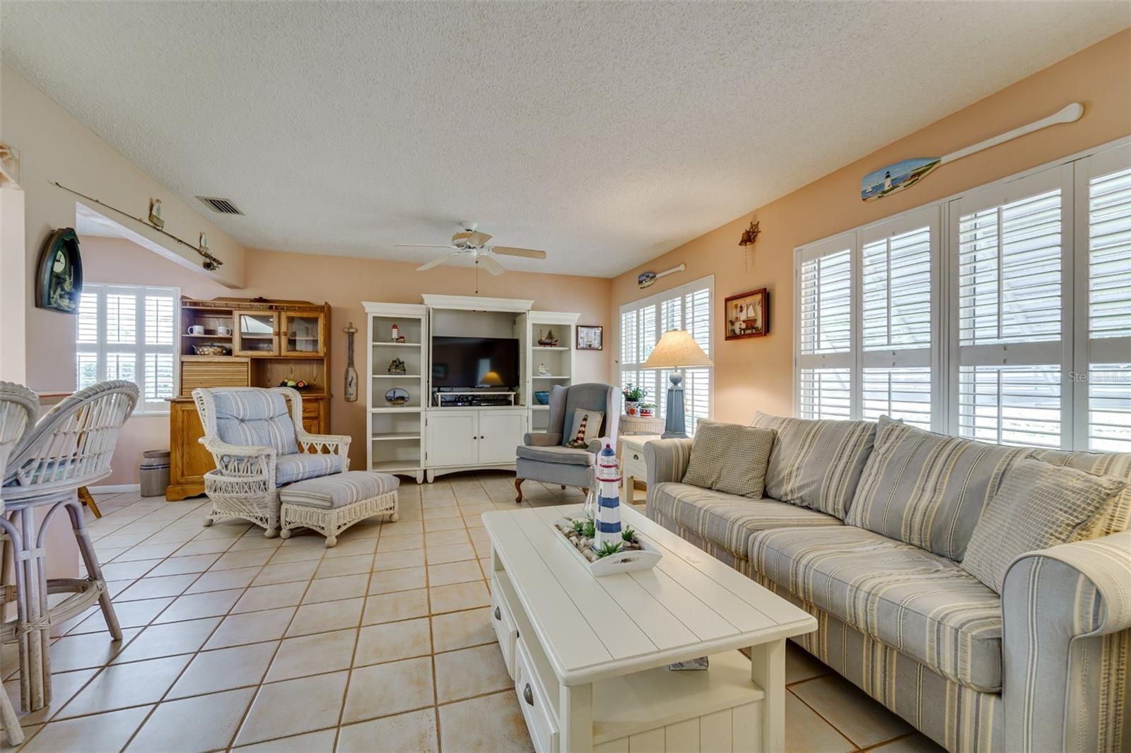 Enjoy relaxed Florida living in this 1794 Sq Ft home in the desirable 55+ Mainlands community. This split floor plan offers open concept living ideal for entertaining, with a welcoming front porch for beautiful sunrises and a covered back patio to enjoy evening sunsets. The eat-in kitchen features stainless steel appliances and opens to a spacious cozy family room. Recent updates include a brand new roof and electrical panel. The oversized 2 car garage provides abundant storage, cabinetry and workbench, plus a separate office space for added flexibility. The spacious primary bedroom includes an en-suite and walk-in closet. Plantation shutters adorn all windows. Enjoy a private backyard setting with no rear neighbors. The low maintenance fee of only $415.00 a month includes cable, internet, lawn care, irrigation system, painting of the home, water, sewer and trash. Centrally located near beaches, airports, interstates, shopping and sports venues.