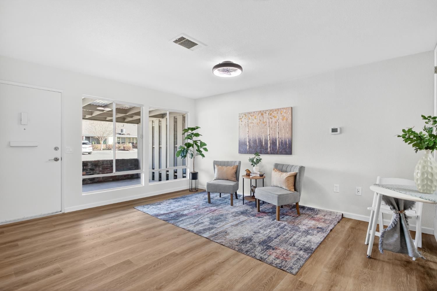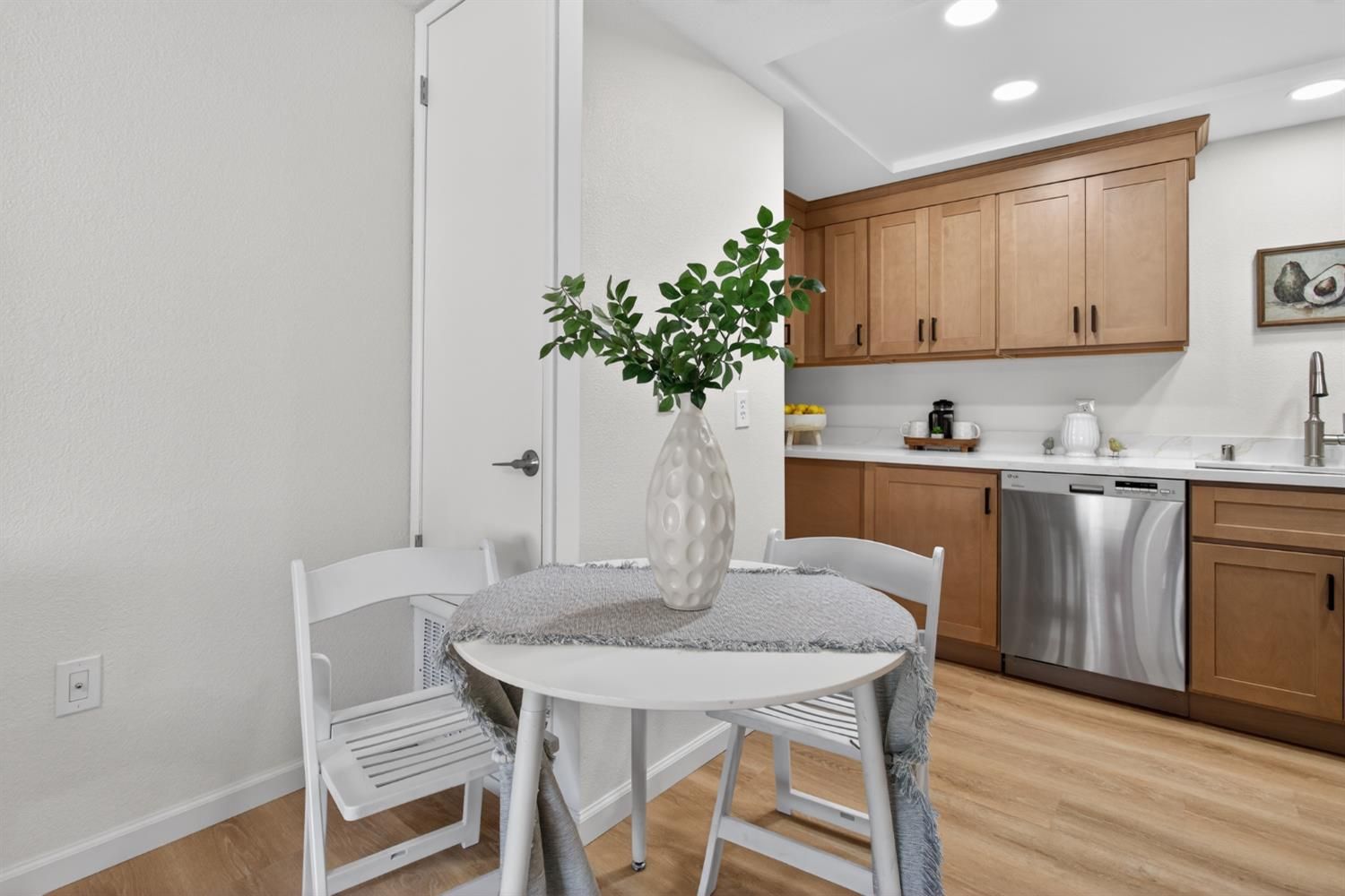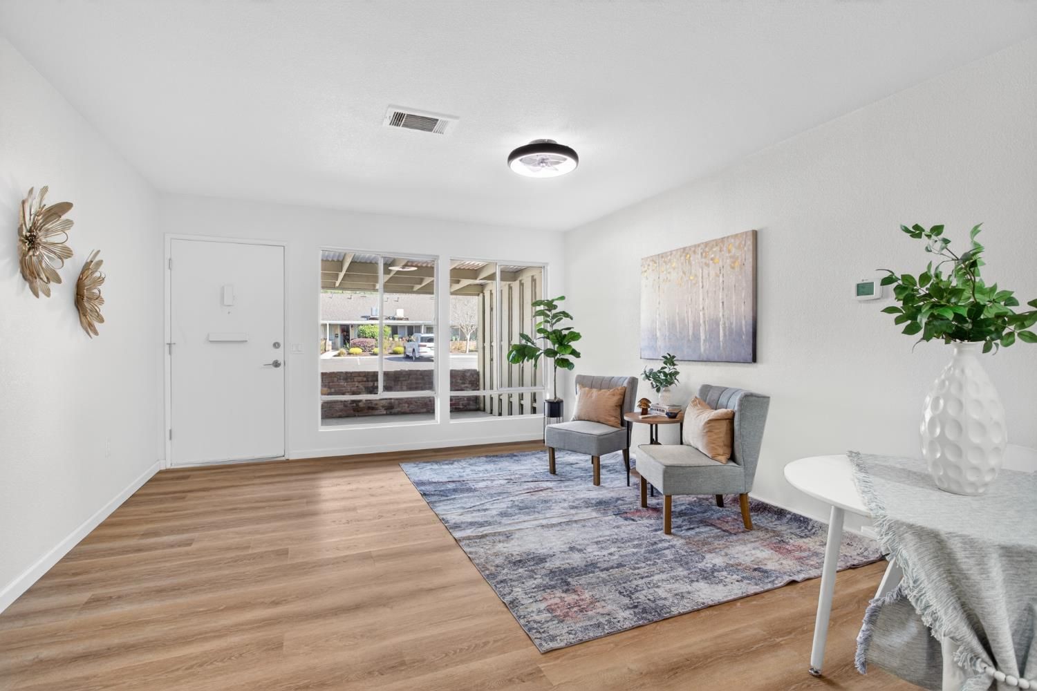 NEW, NEW, NEW.darling remodeled single story townhome waiting for its next owner. Beautiful NEW kitchen with extra storage & pantry, New range and range hood, recessed lighting. Gorgeous warm cabinets with quartz countertops in kitchen and bathroom. Spacious bathroom with extra storage. New shower/tub tile surround. The warm vinyl floors flow throughout. NEW paint and texture. Covered patio with storage room. Lots of parking for guest. This is a 55+ community with clubhouse, pool and gym. Great location with beautiful views!