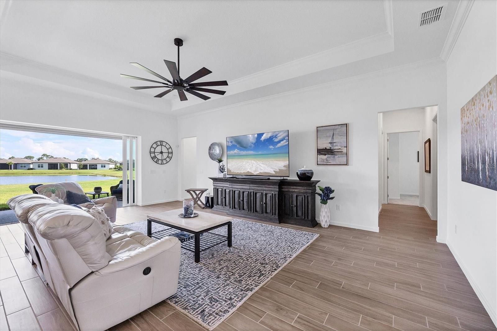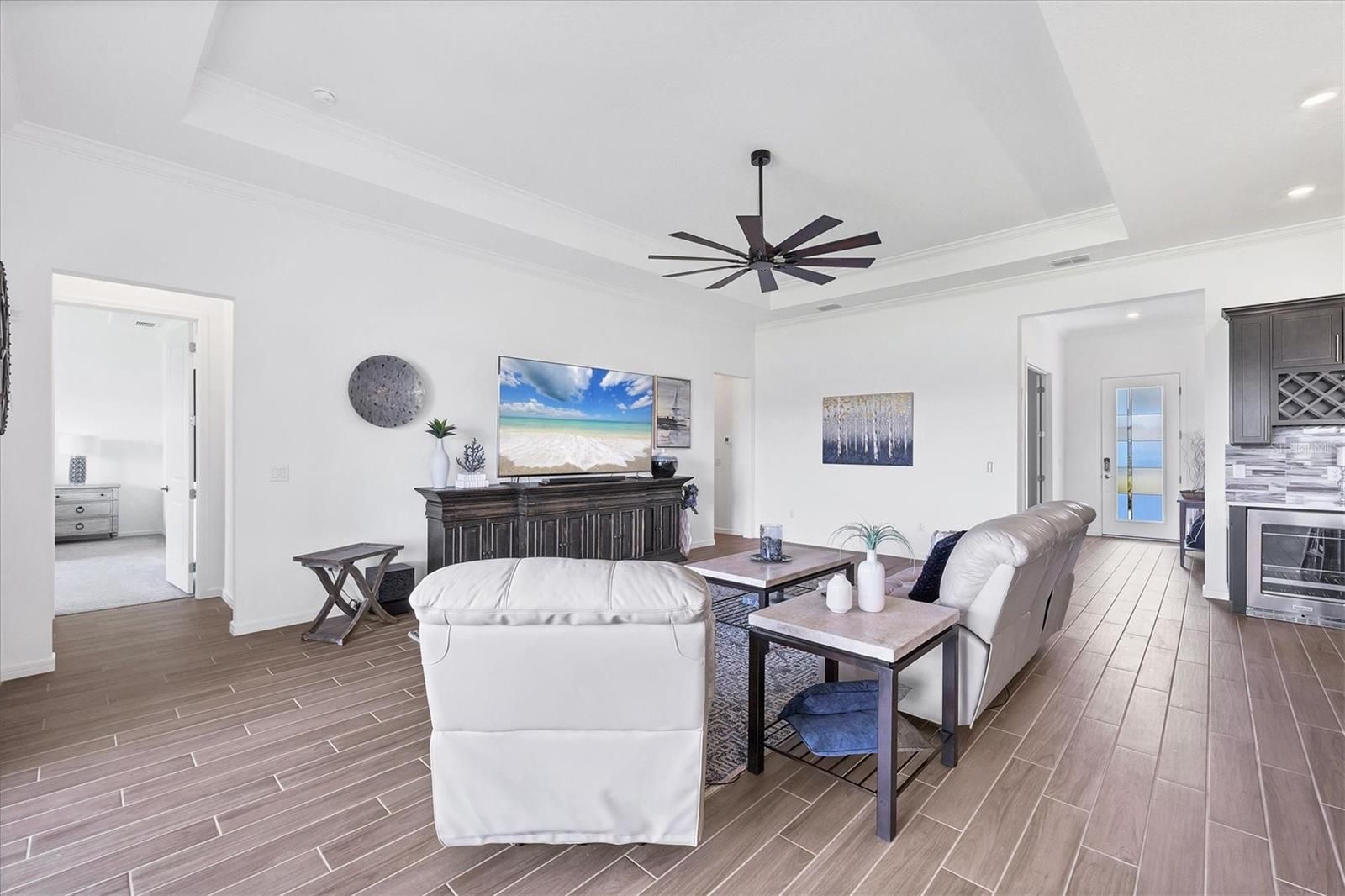 Stunning waterfront home in the highly sought-after Sunray Cove neighborhood of Del Webb Bay View. This fully furnished residence offers luxury living with premium finishes, spacious design, and enhanced safety features. Interior Features: - 3 bedrooms | 3 full bathrooms - Large den/office - Open-concept layout with gathering room and café - Chef’s kitchen with KitchenAid gas appliances and wine cooler - Impact-rated glass windows and doors - Ceiling fans and remote-controlled window treatments throughout - Primary suite with oversized walk-in closet and super shower (dual heads + rain shower) Exterior Features: - Zero-corner sliders open to lanai - Lanai pre-plumbed for outdoor kitchen - Remote-controlled wind/solar screen - Breathtaking water views Community & Location: - Located in the 55+ Del Webb Bay View community - Resort-style amenities available - 1.5 miles from I-75 and I-275 for easy commuting - Secure, gated neighborhood Additional Information: - Home used for only 5 months – like new condition - High-end furnishings and warranties included - Seller will cover all closing costs with acceptable contract