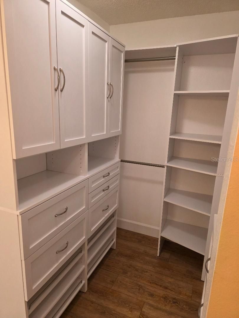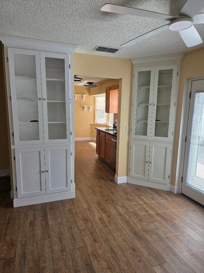 - Built-in Features, Ceiling Fan(s), Crown Molding, Eat-in Kitchen, Living/Dining Room, Solid Surface Counters, Solid-Wood Cabinets, Stone Counters, Thermostat, Walk-In Closet(s), Window Treatments
