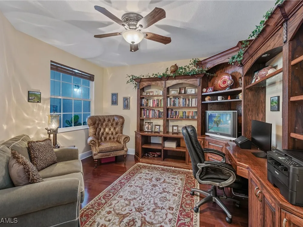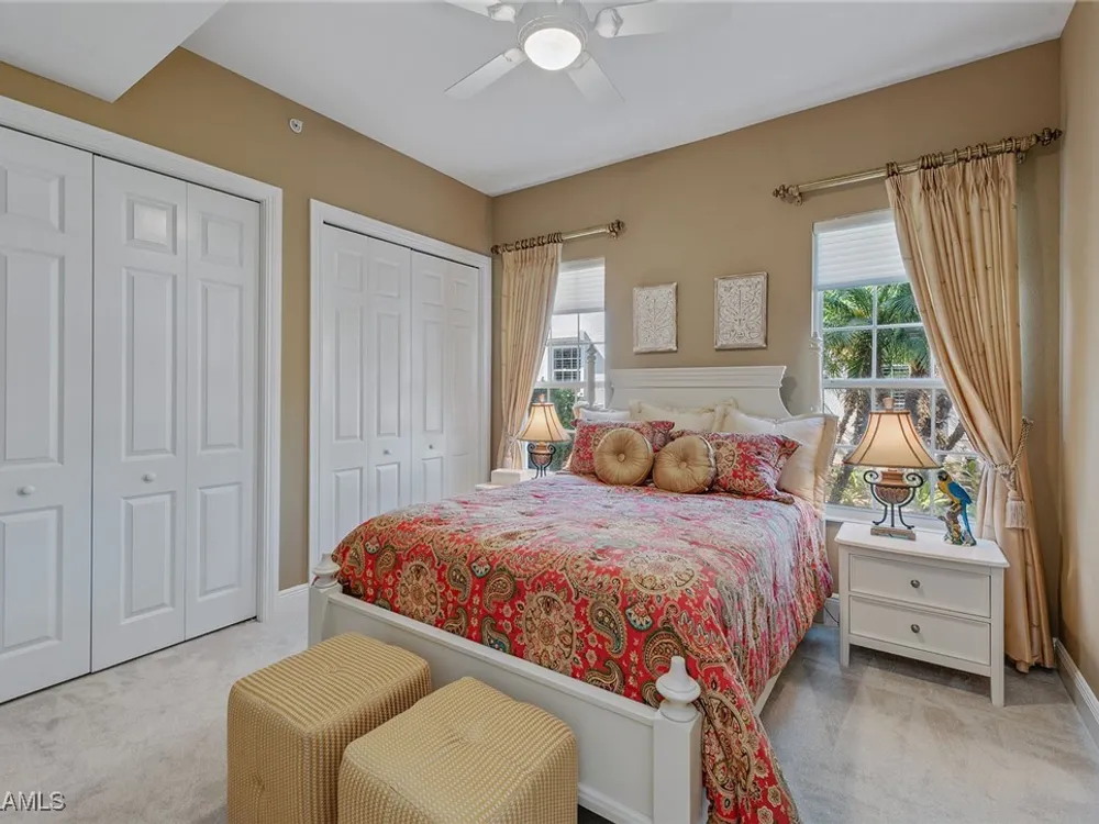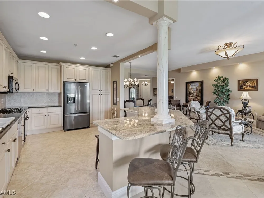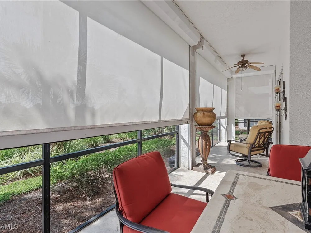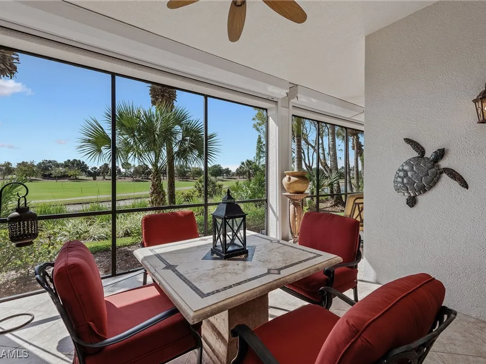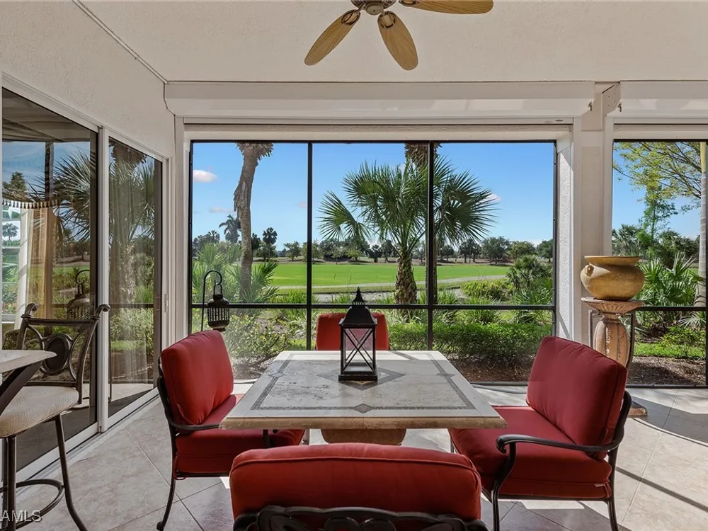 Introducing a beautifully maintained three-bedroom plus study, two full-bath coach home with two-car garage in the sought-after double-gated Cascada neighborhood of Fiddler’s Creek. Ideally on the first floor, this end-unit offers tranquil southeastern golf course views, an inviting courtyard entry, and a functional layout designed for comfort and elegance. Tile flooring runs throughout the main living areas, creating a seamless flow between expansive living room, family room and kitchen. Offered furnished, this condominium is filled with abundant natural light, enhanced by large windows and sliding doors that frame picturesque views of the golf course from multiple vantage points, including the main living areas, lanai and primary suite. The kitchen is a central gathering space, featuring a large island ideal for casual dining or entertaining, complemented by a stylish tile backsplash, natural gas cooking and generous cabinet space. Whether you're preparing a quiet meal or hosting guests, the open-concept design connects the kitchen with the surrounding living and dining areas, offering functionality and flow. A newer HVAC system (2020) and a tankless water heater add modern efficiency and value. The primary suite is a private retreat with double door entry, two walk-in closets, featuring a primary bath with dual vanities, and a separate tub and shower. A set of double doors leads into the versatile den, ideal for a home office, media room or additional guest space. Go out to the screened lanai with electric hurricane screens and enjoy the serenity of the surrounding greenery and golf course views, an ideal spot for morning coffee or evening relaxation. The thoughtful design of this home allows for natural breezes and plenty of sunshine to fill the space throughout the day, creating a bright and airy atmosphere. Additional highlights of Cascada are the newer exterior paint, newer roof, lush landscaping, convenient village pool and a gated cul-de-sac street with no drive-through traffic. Enjoy access to world-class amenities including the award-winning Club & Spa, offering fine and casual indoor/outdoor poolside dining, fitness center with trainers and classes, resort-style pools, hot tub, spa services, sauna, steam room, bocce, an active tennis and pickleball program, and an extensive event calendar. Optional beach and marina memberships are available, and you also have the option to join the equity Creek Golf Course with new clubhouse and newly renovated golf course. Outstanding location with Publix, nail salon, hair salon, urgent care and a health food café/store coming soon, just outside the gate. Convenient to executive airport, parks, museums, kayaking, paddleboarding, beach yoga, restaurants, boutiques, art galleries and all Naples and Marco Island popular activities.